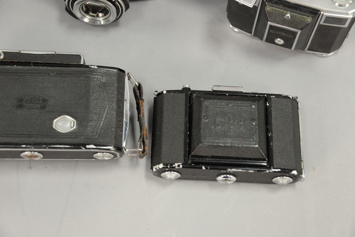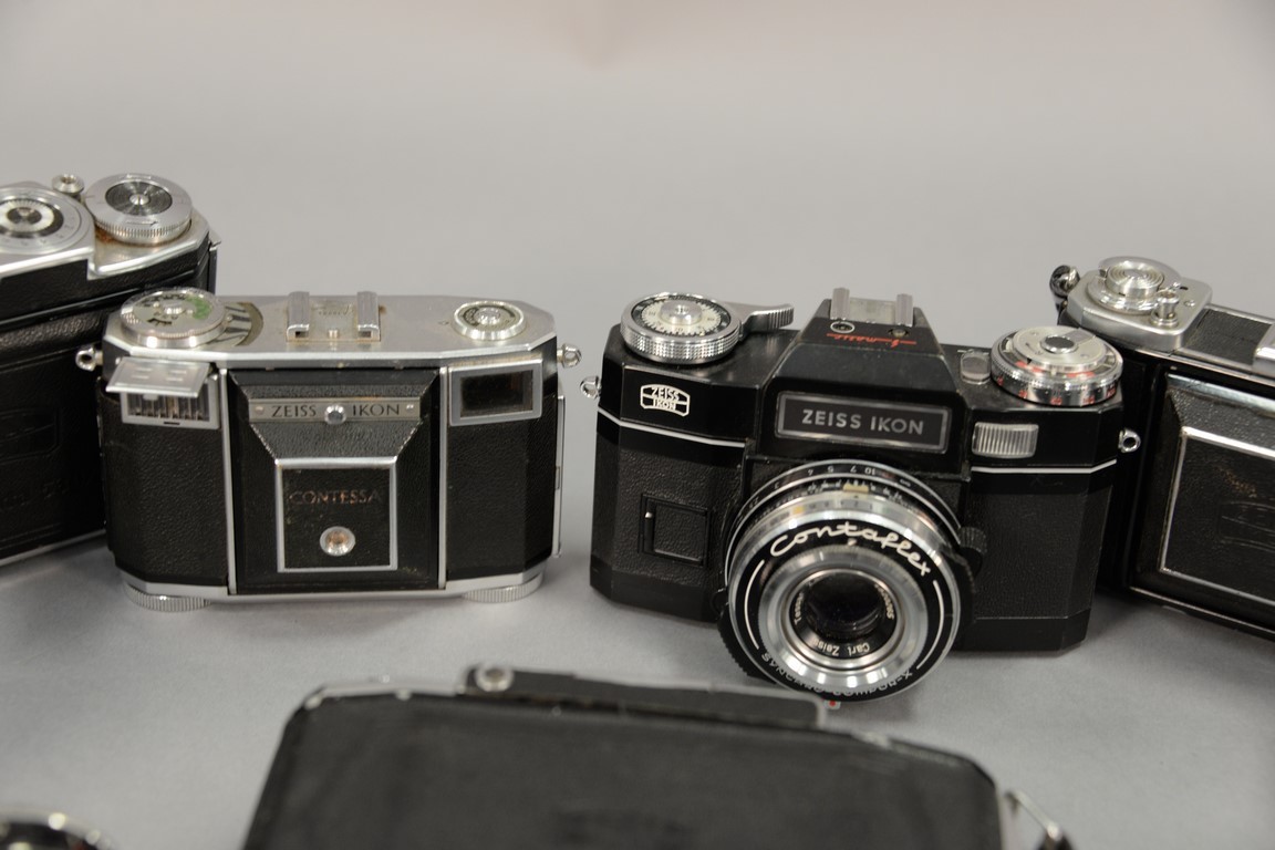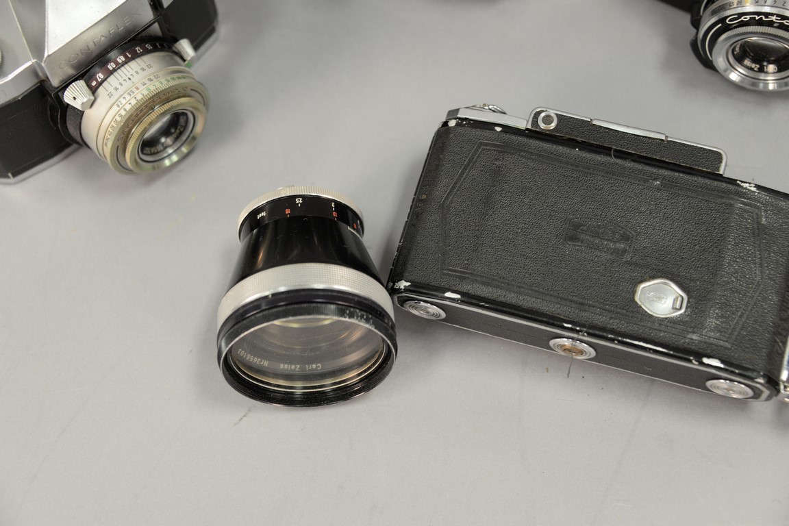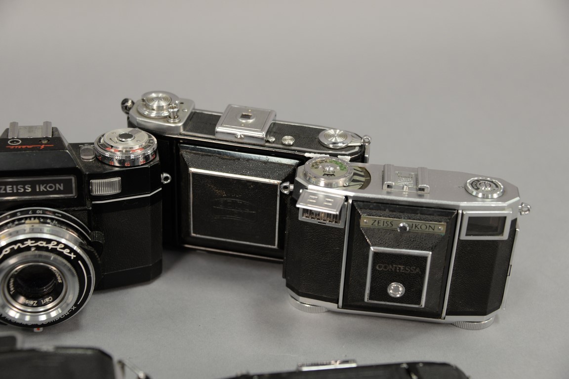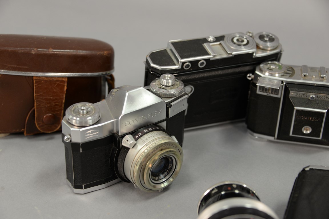 Lot 394: One box lot: Zeiss camera lot including Contessa 533/24, Super Ikonta 530/16, Nettar 515/16, Ikonta 521/16, Contaflex IV, Contaflex…