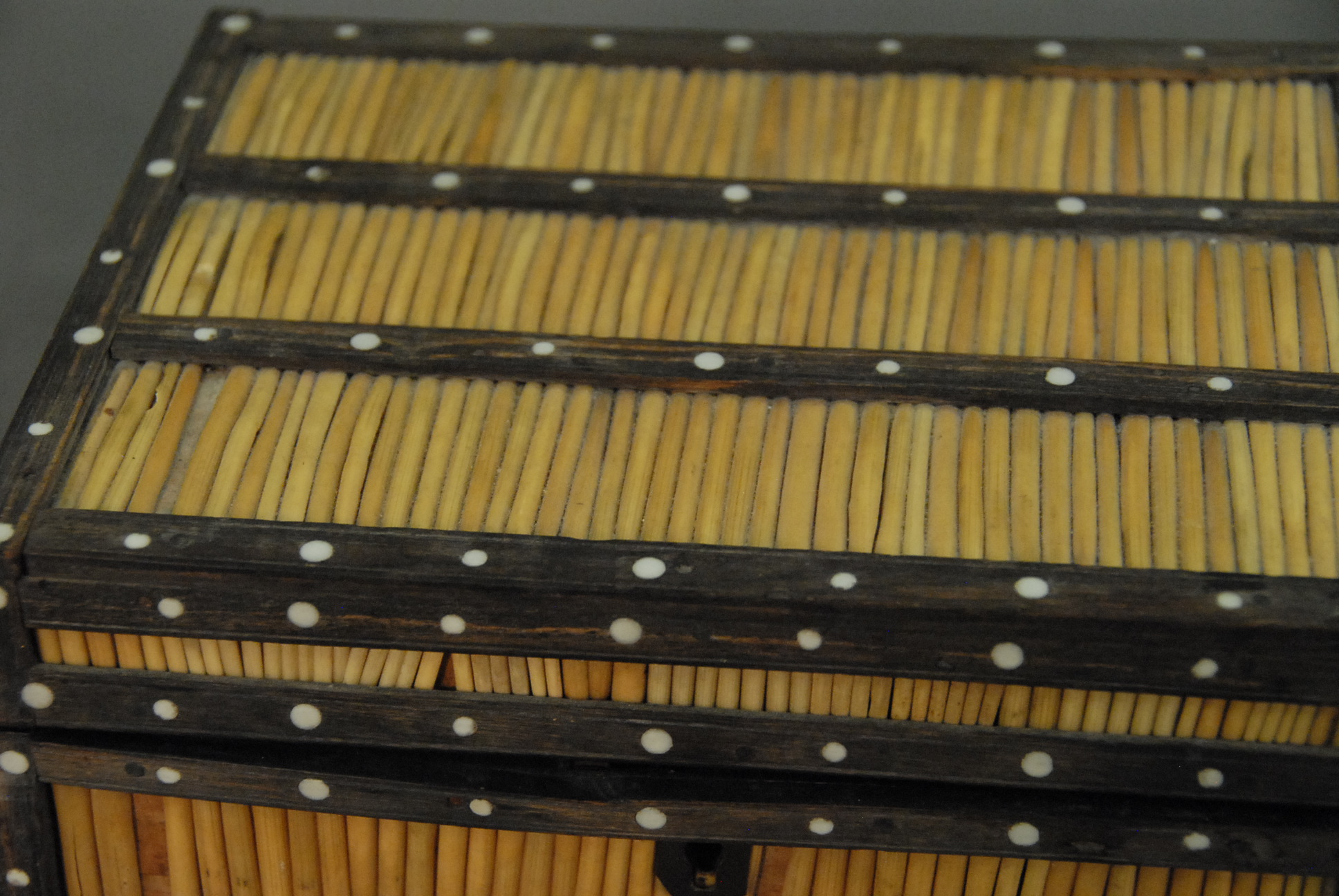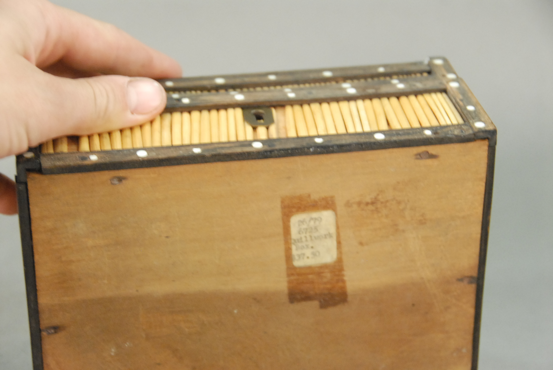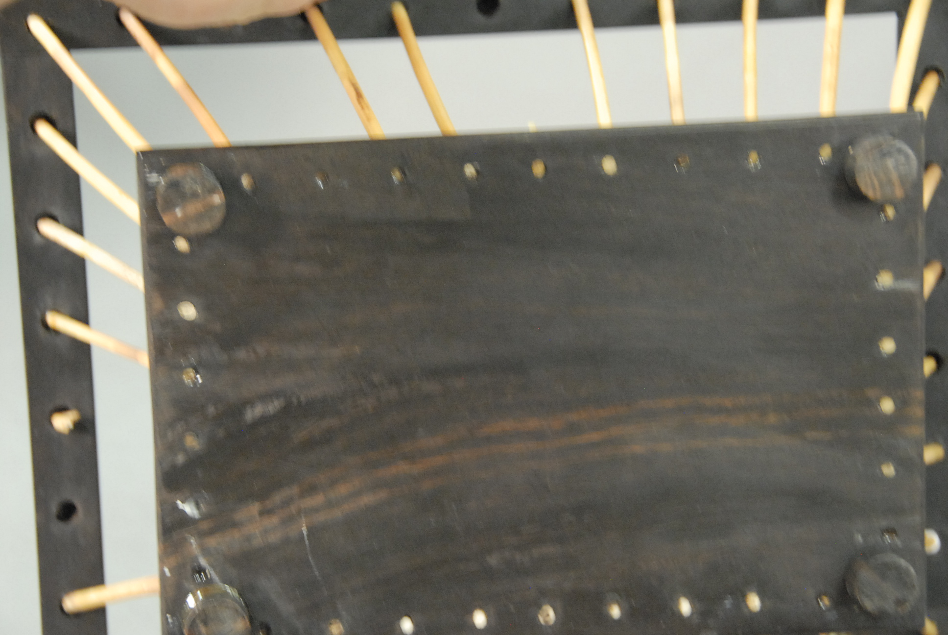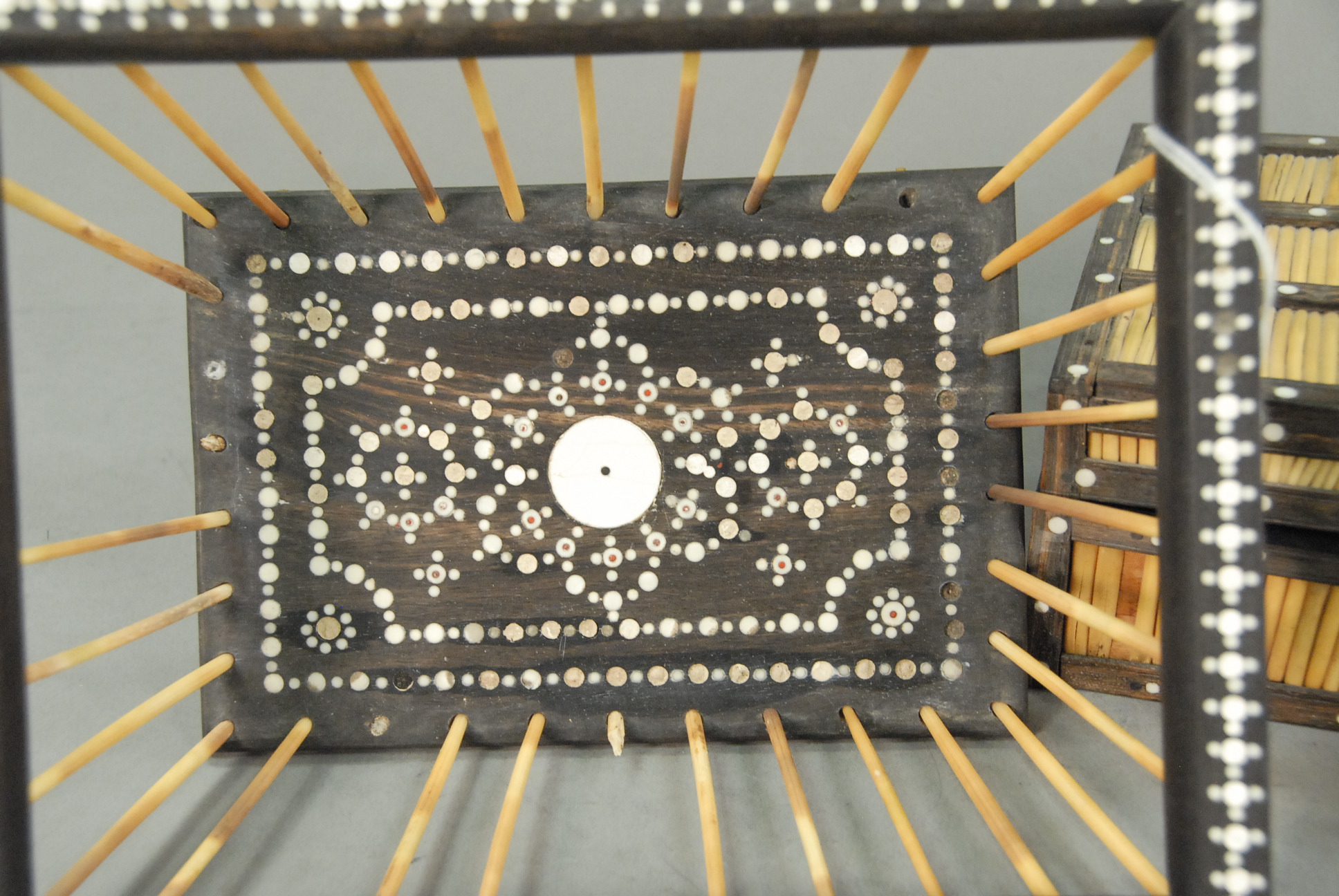 Quill box and quill basket, five uprights missing on basket.