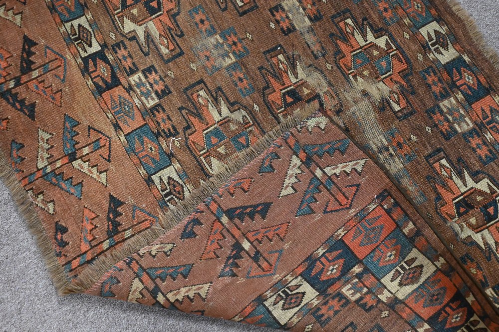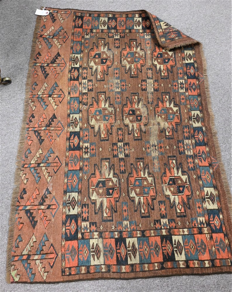 Three Oriental Scatter Rugs, worn, 2′ 1″ x 5′ 2″, 2′ 8″ x 3′, 3′ 7″ x 4′ 4″.