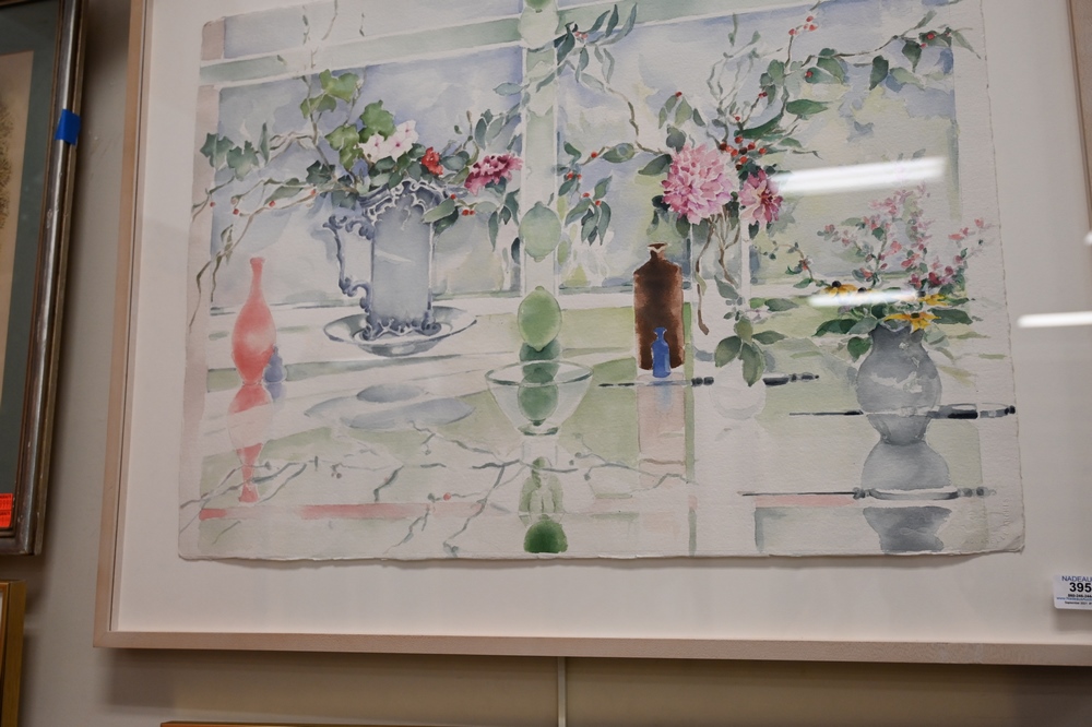 Four Piece Lot, to include watercolor on paper; still life with flowers, signed indistinctly and dated 2003 upper right; Ernest Gart…