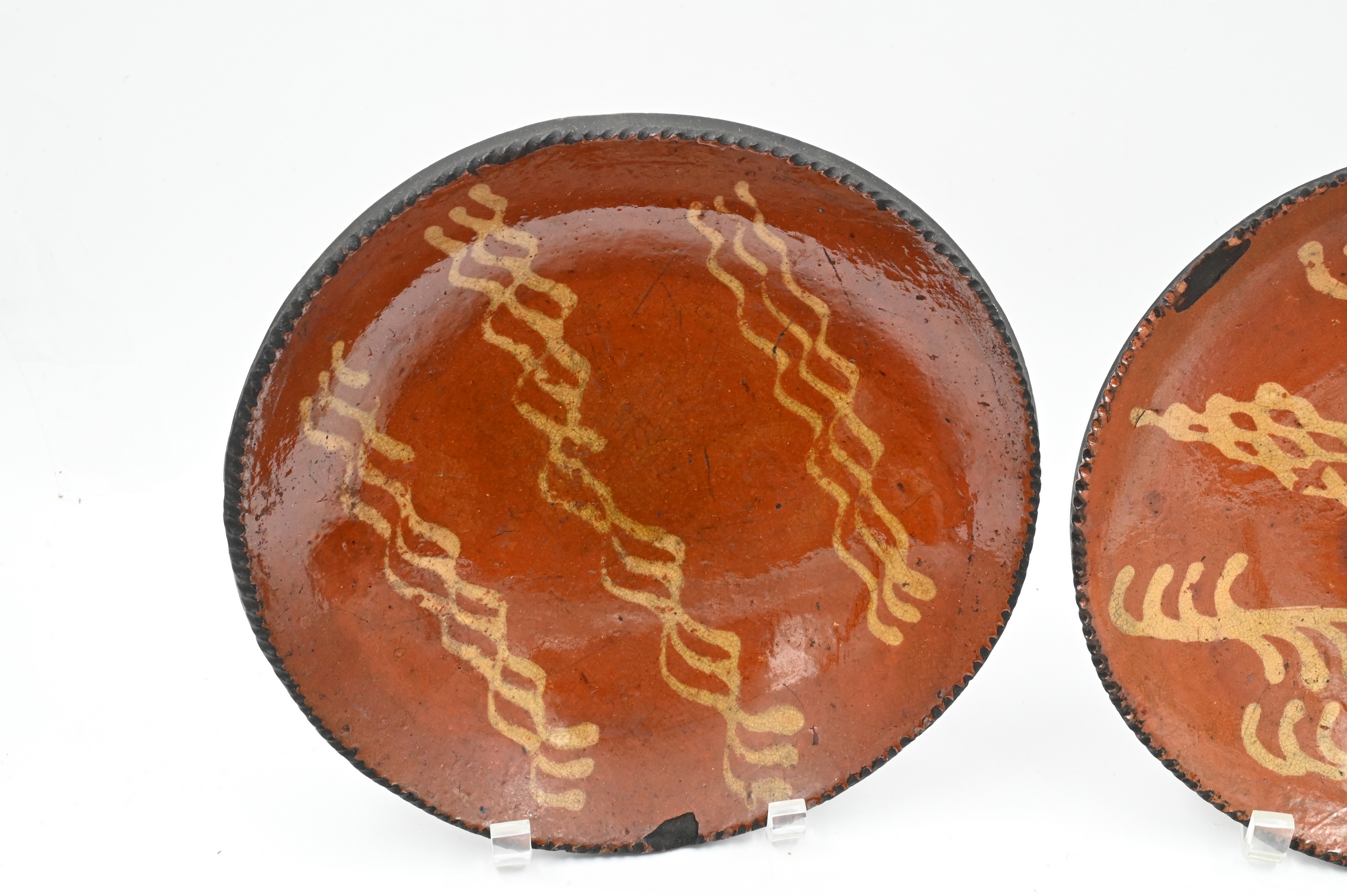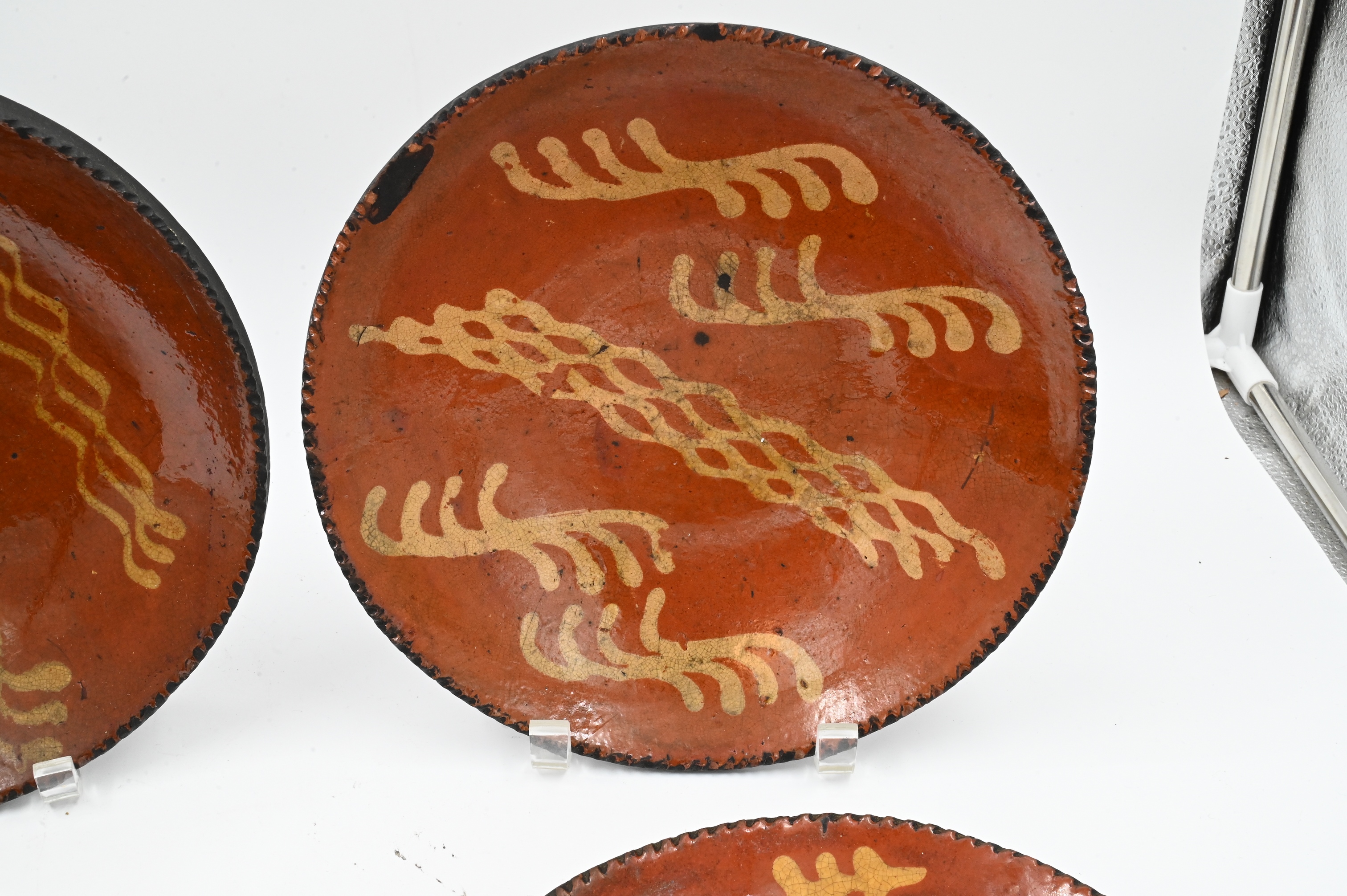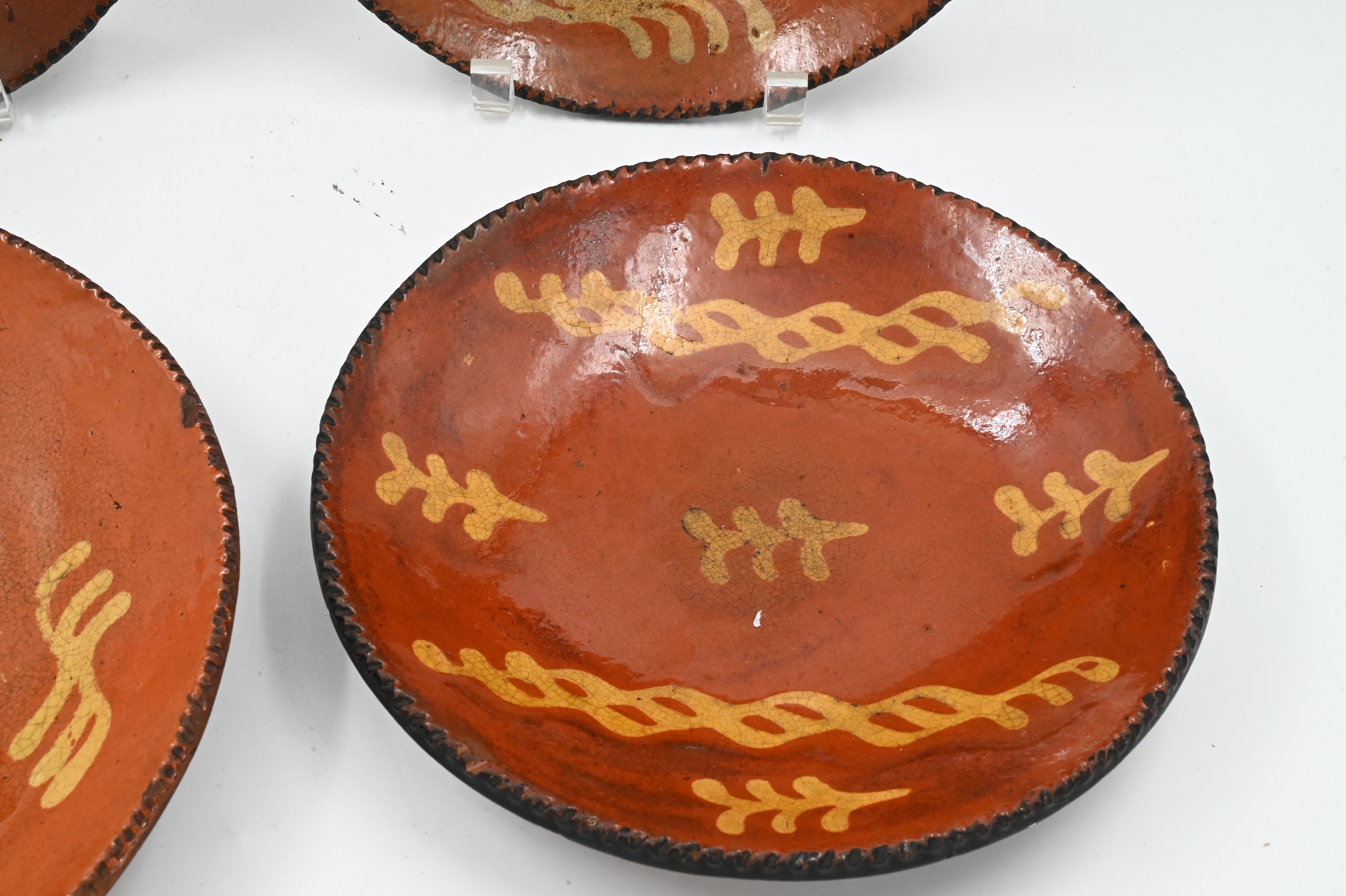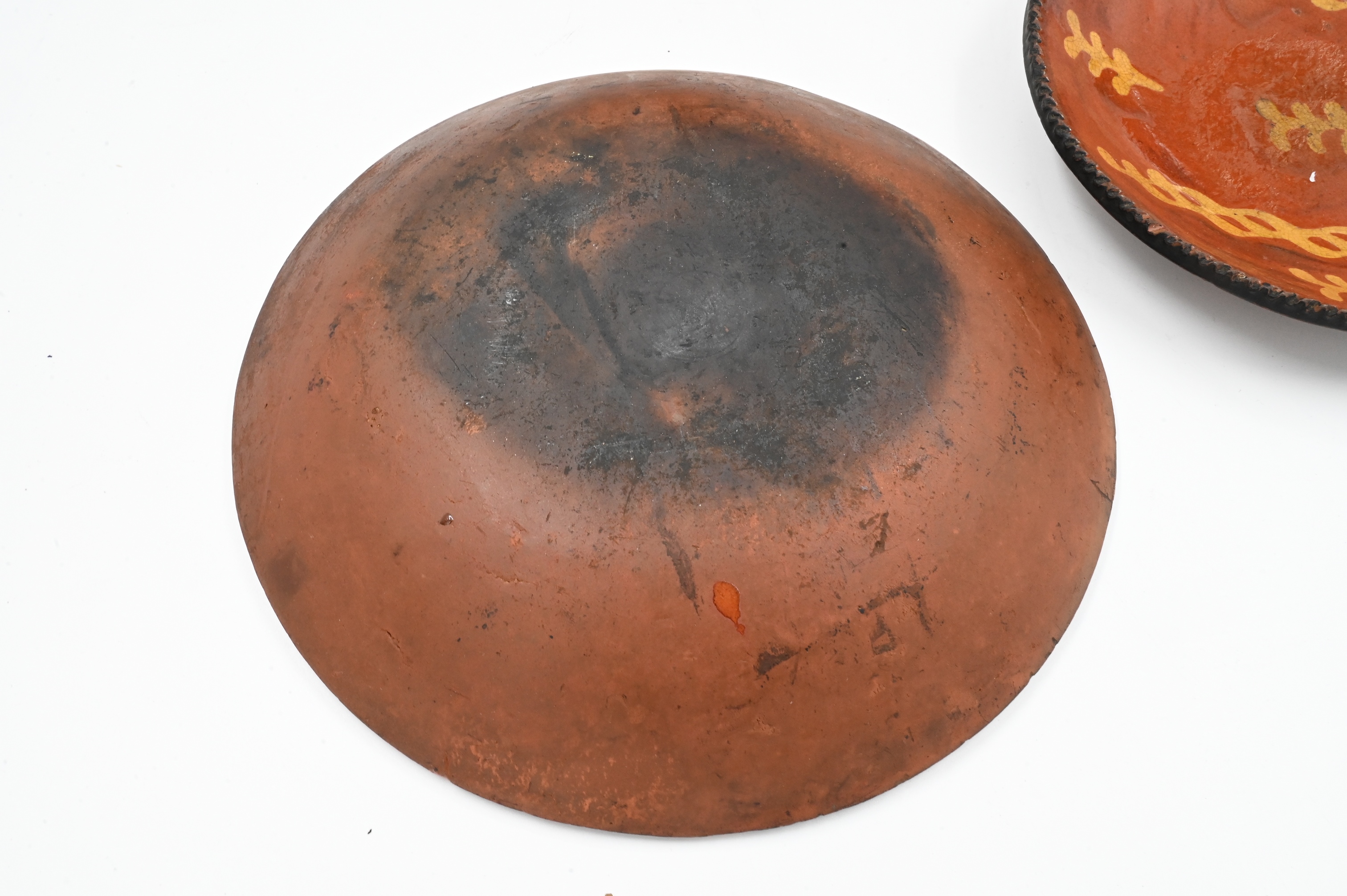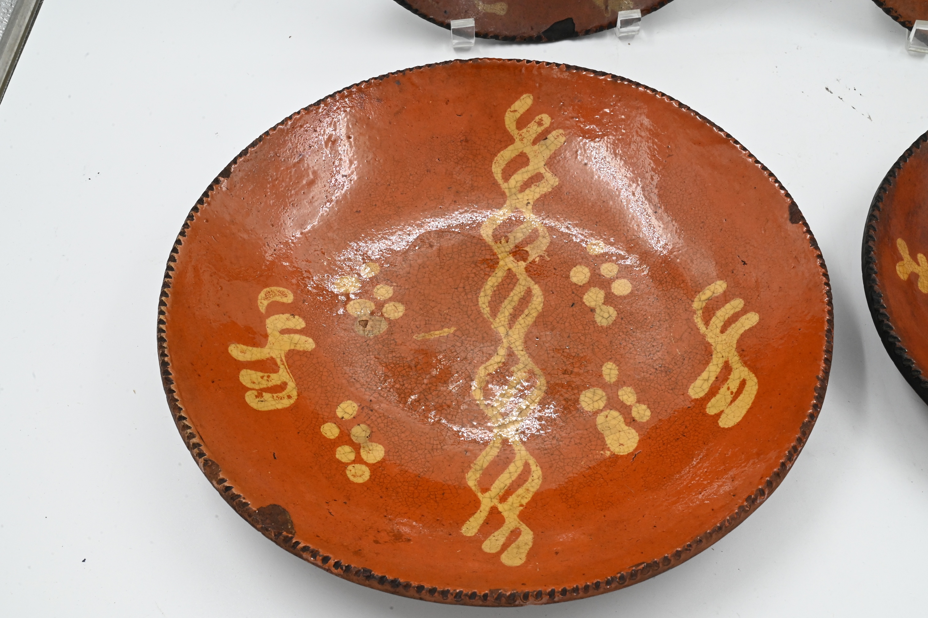 Lot 395: Four Slip Decorated Redware Deep Plates