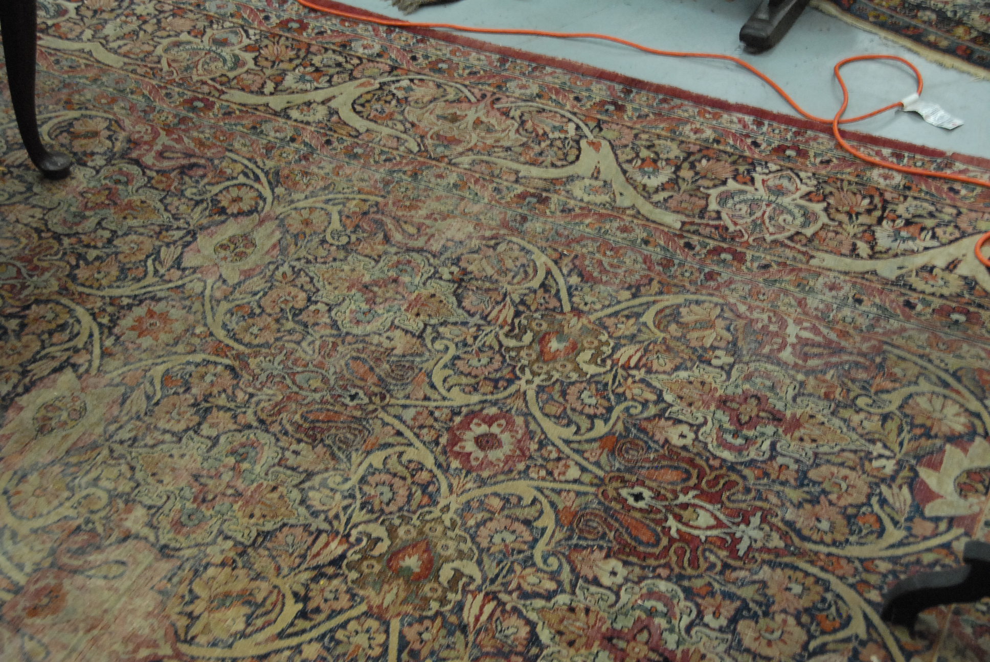 Kirman Oriental carpet, late 19th – early 20th century worn. 9’8 x 15′
