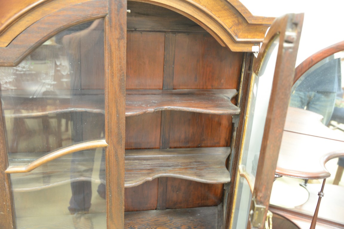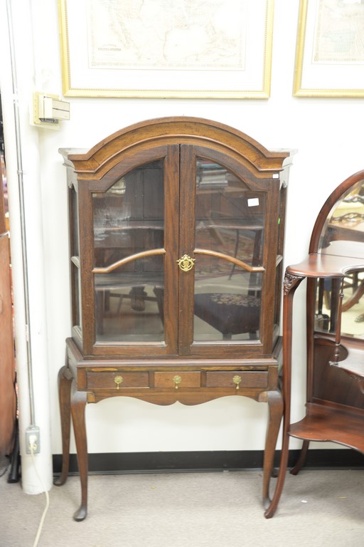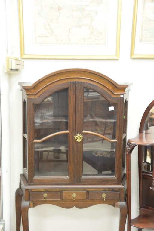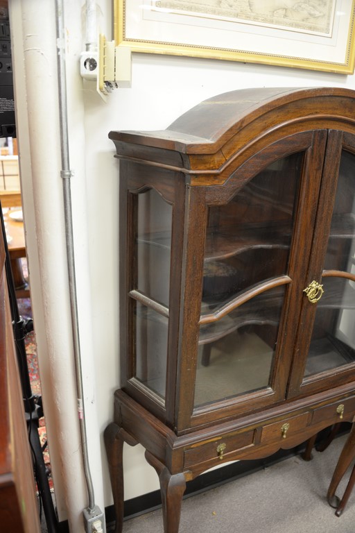 Mahogany curio cabinet in two parts. ht. 62in., wd. 38in., dp. 12in.