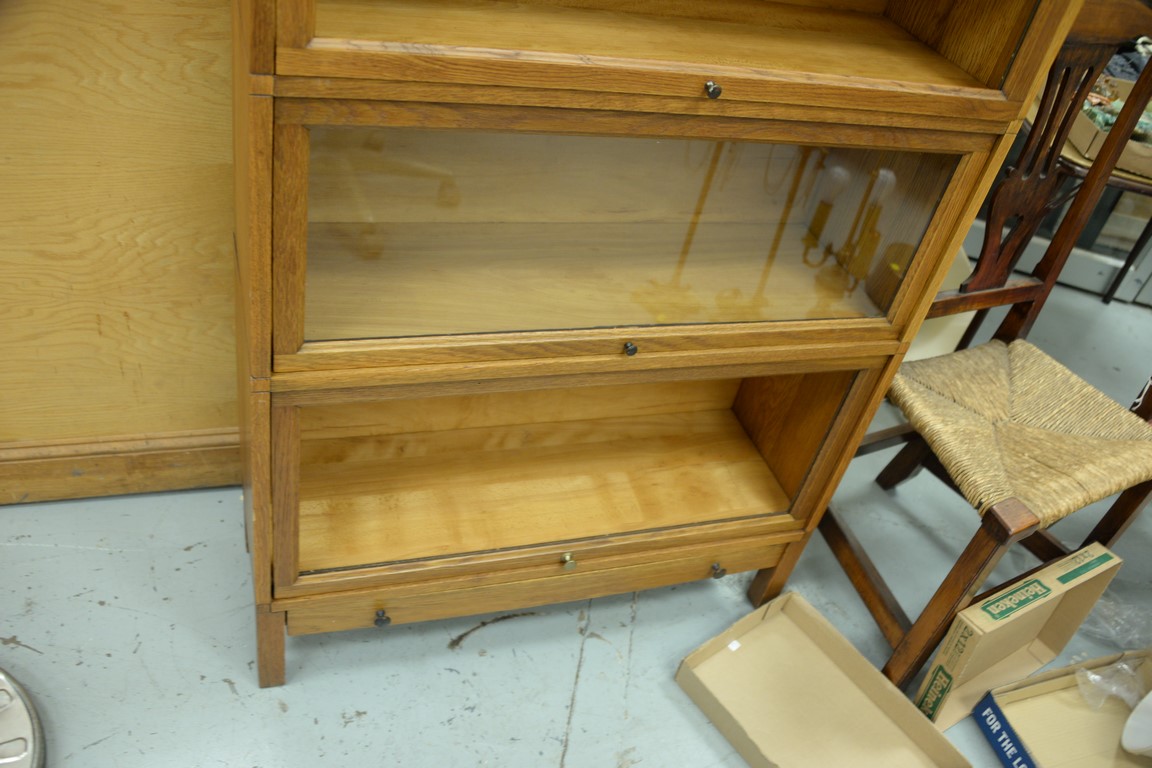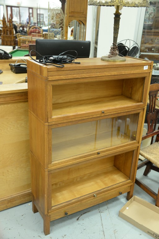 Oak three section stacking bookcase, ht. 49 in. wd. 34 in.