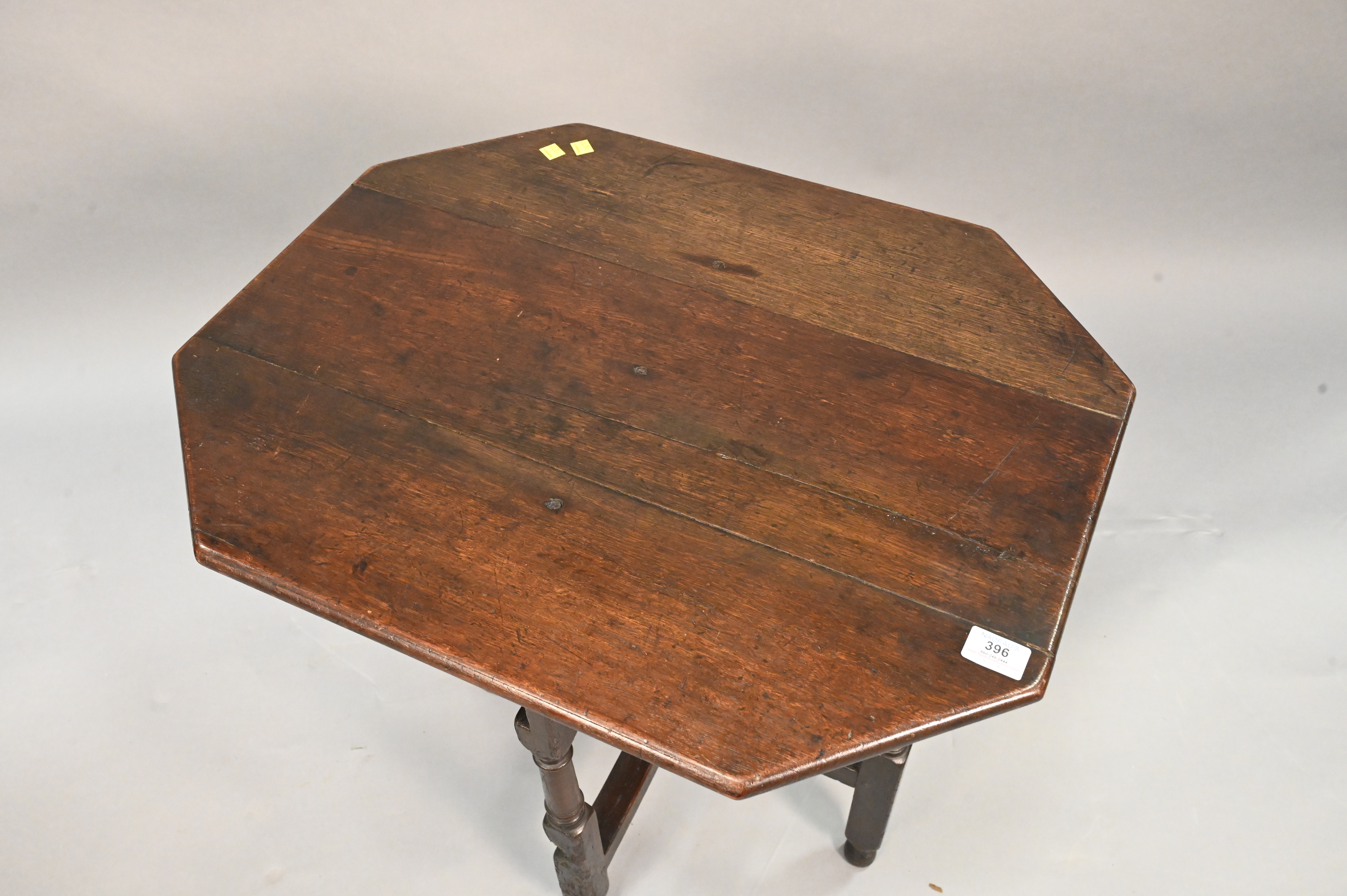 George II Oak Hideaway Table, circa 1750, height 26 1/2 inches, top 22″x27 1/4″.