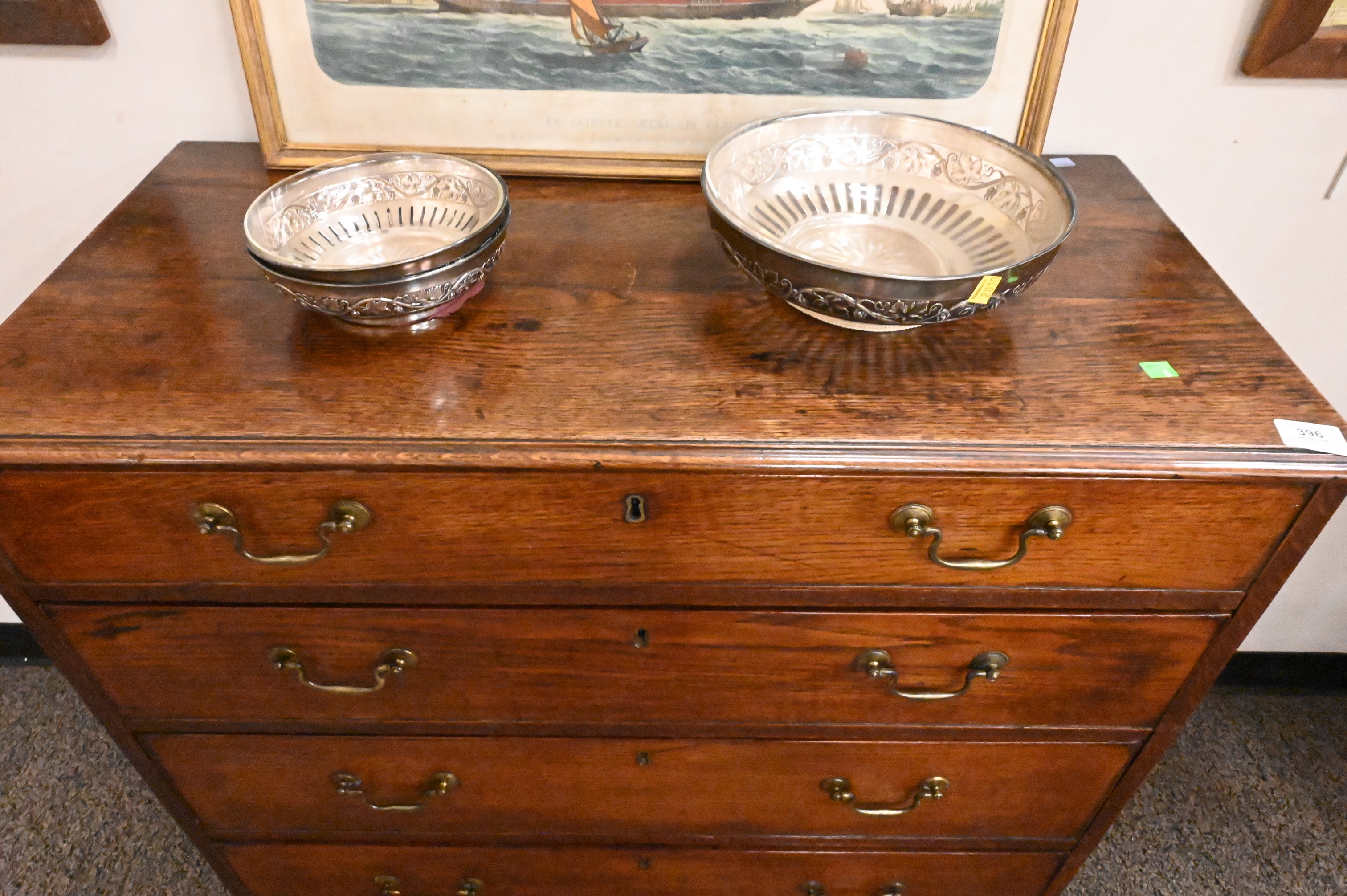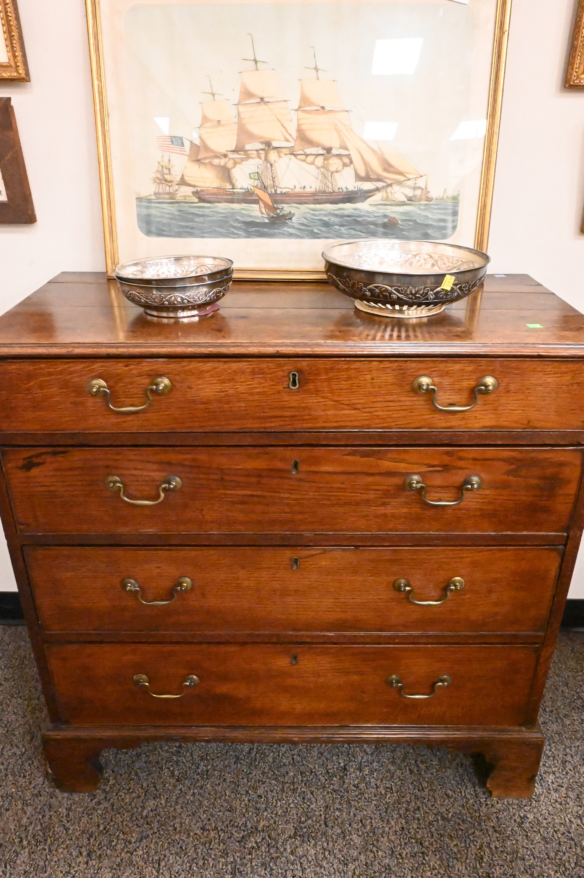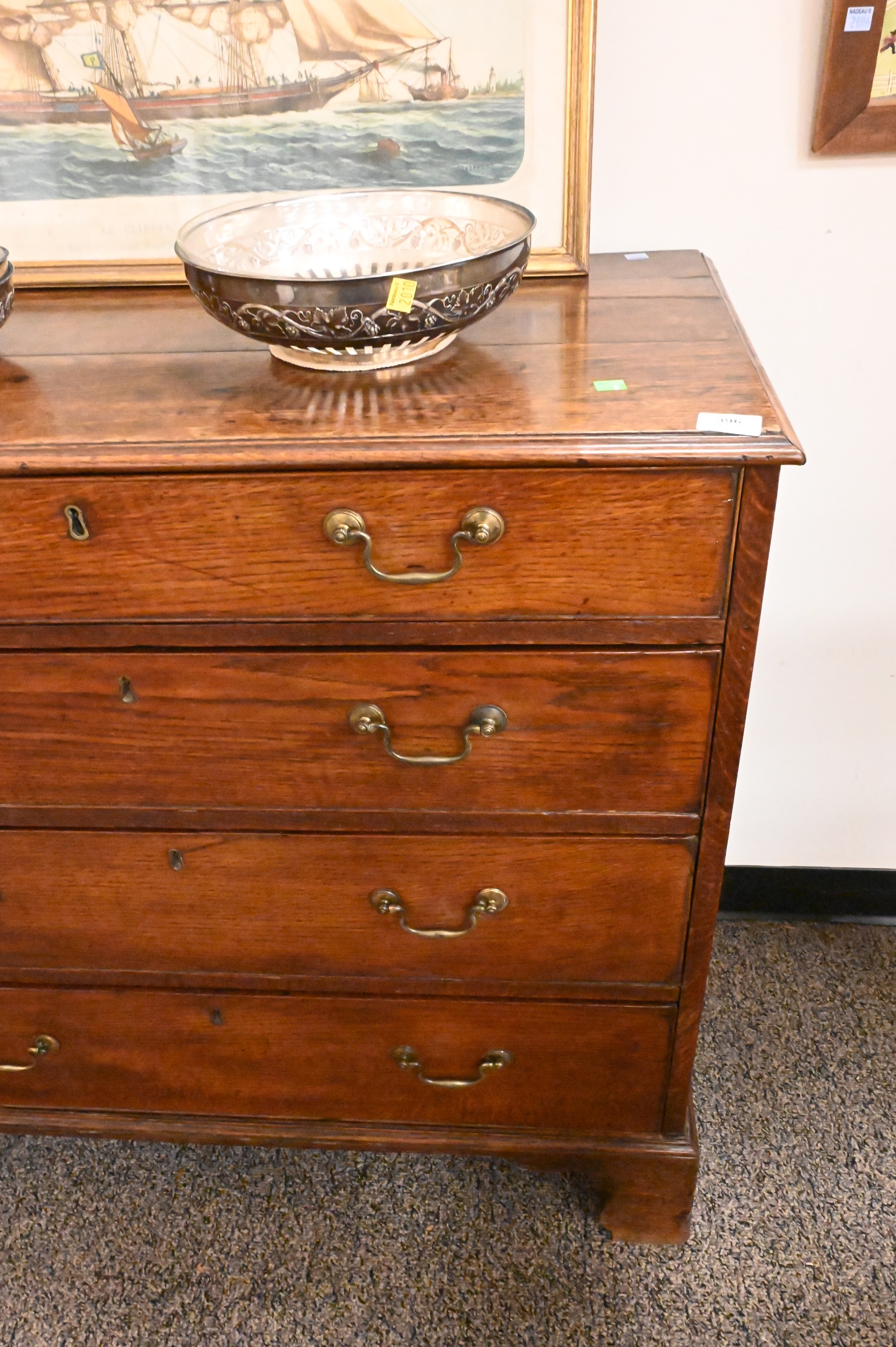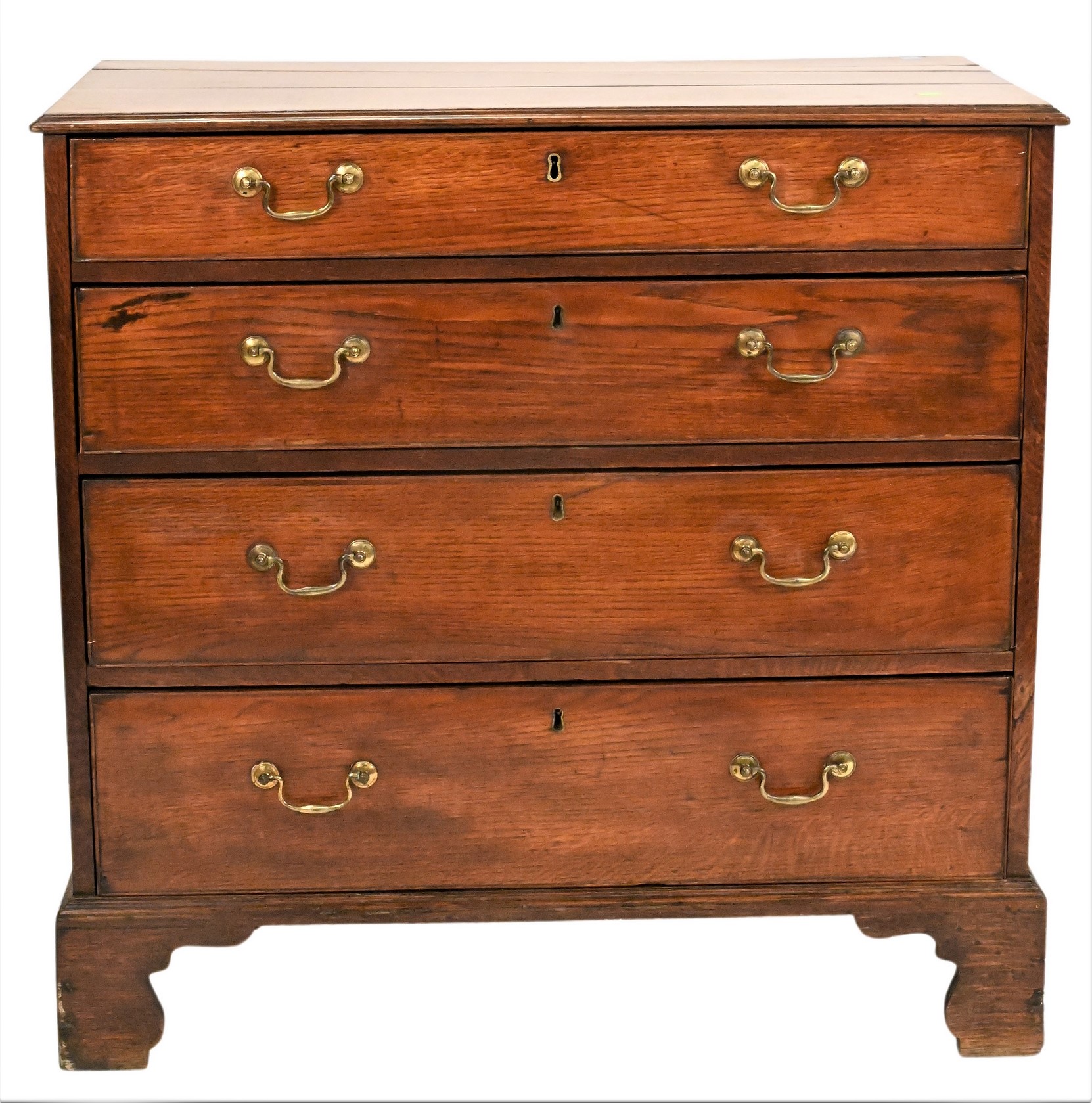 George III Oak Four Drawer Chest, on bracket base, 18th century, height 36 inches, top 17 1/2″ x 36 1/2″