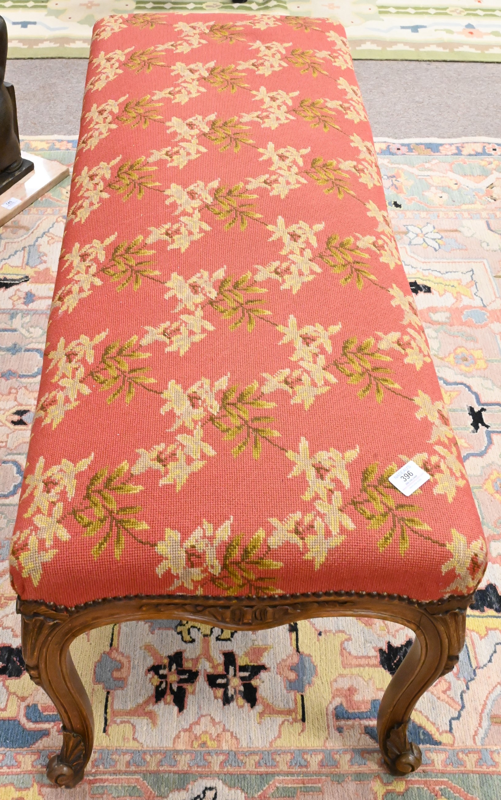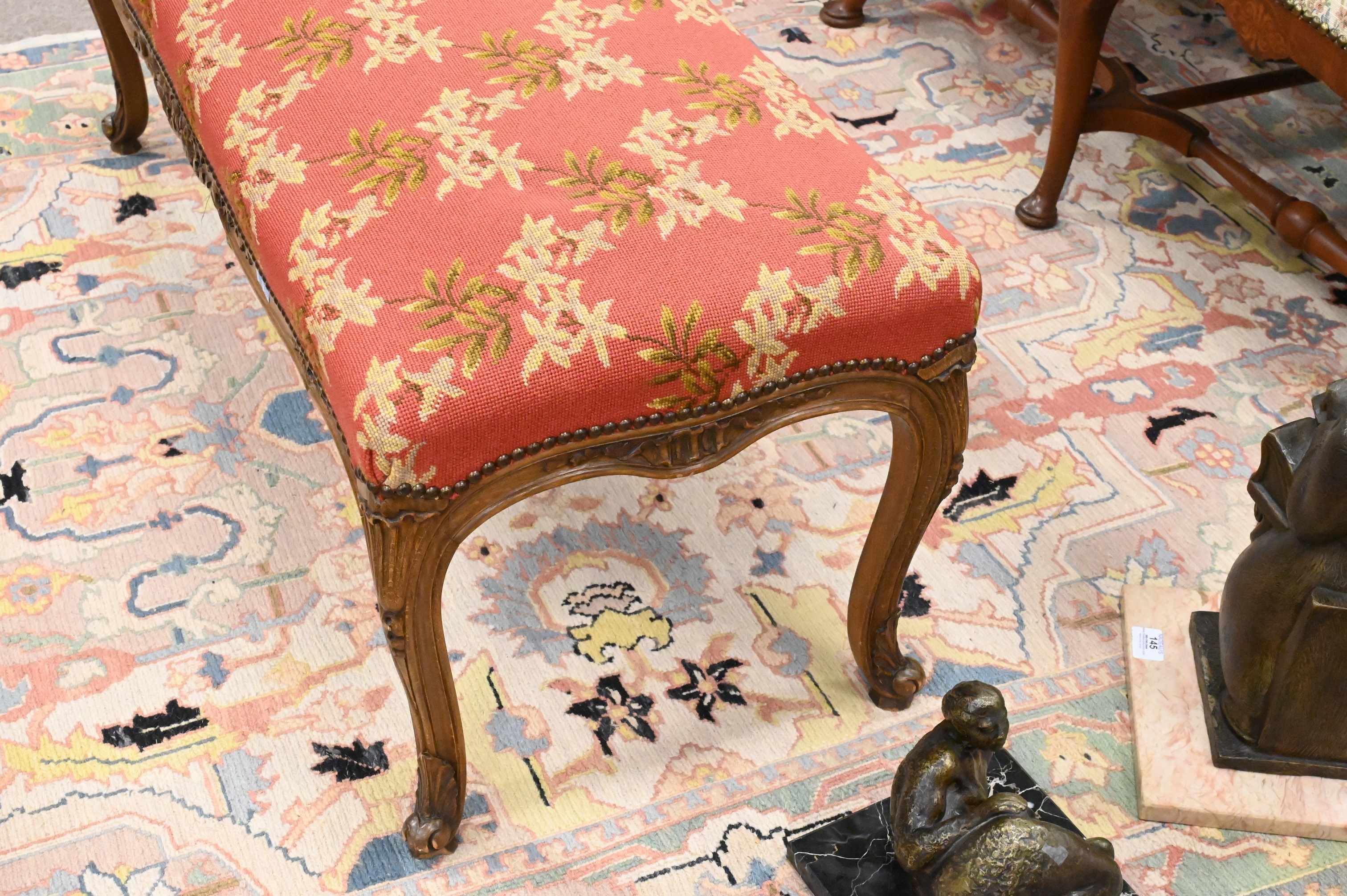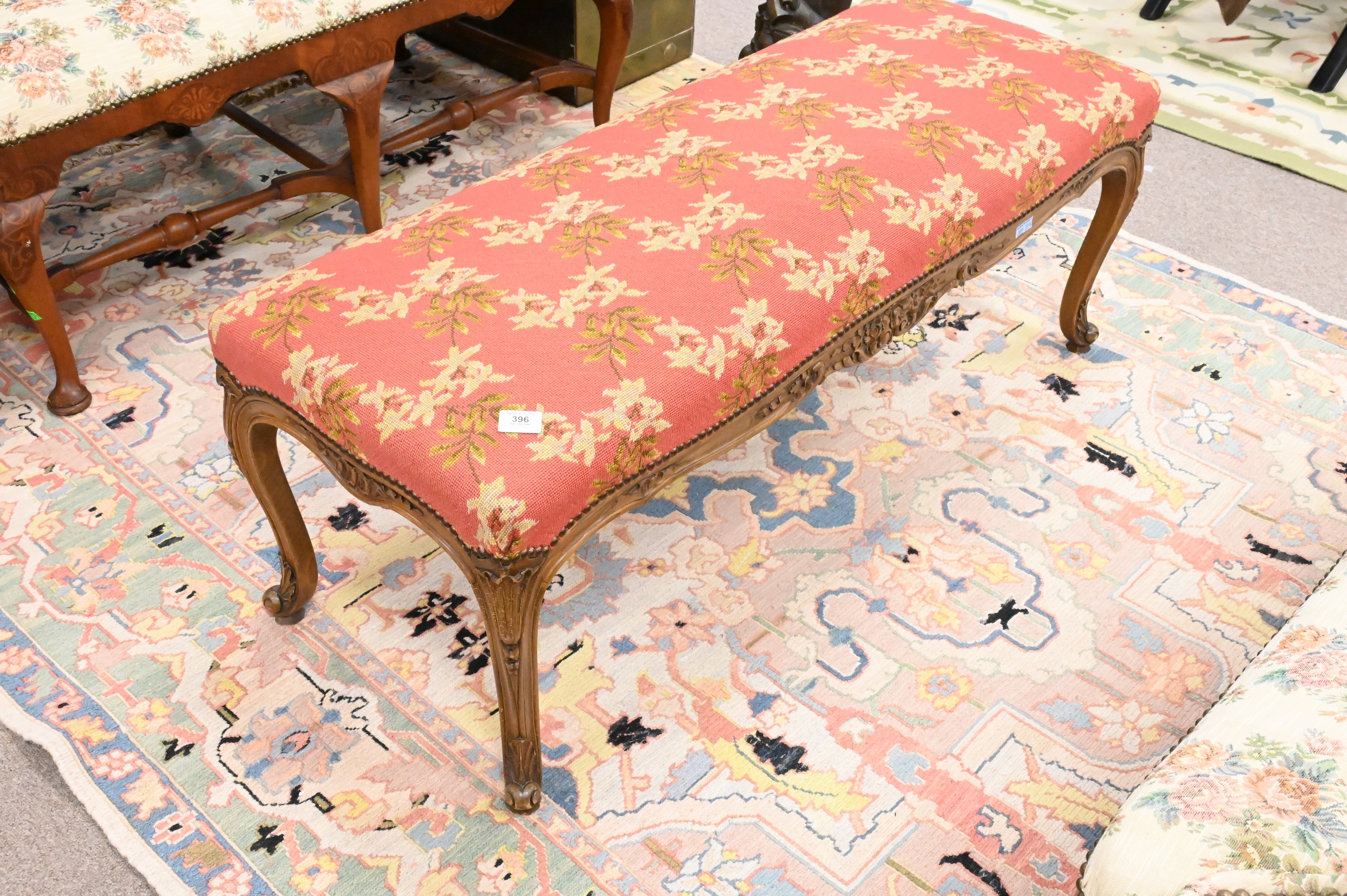 Lot 396: Louis XV Style Bench with Needlepoint Top