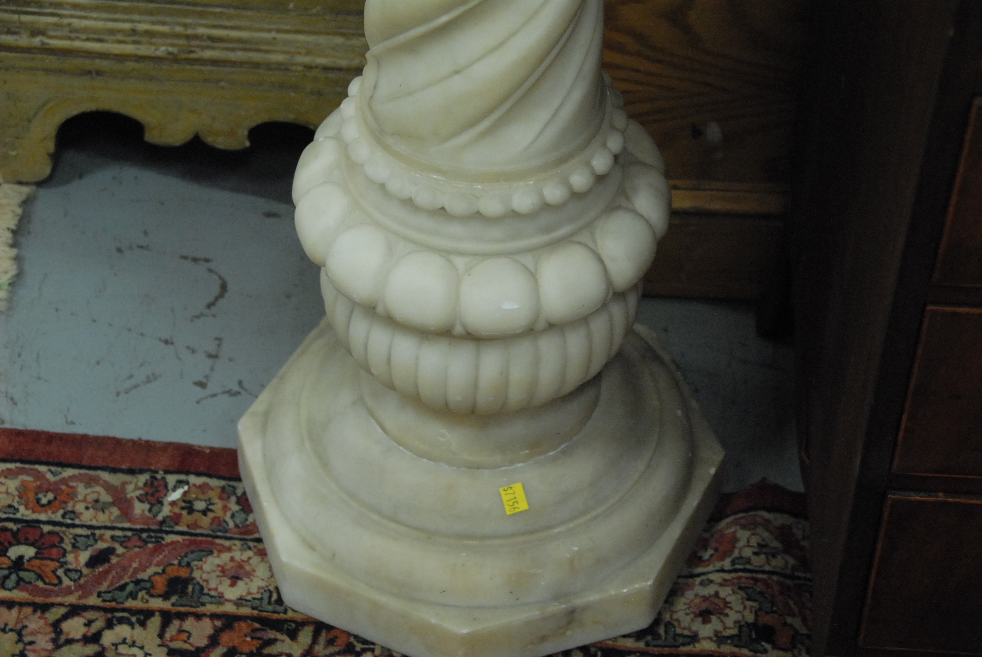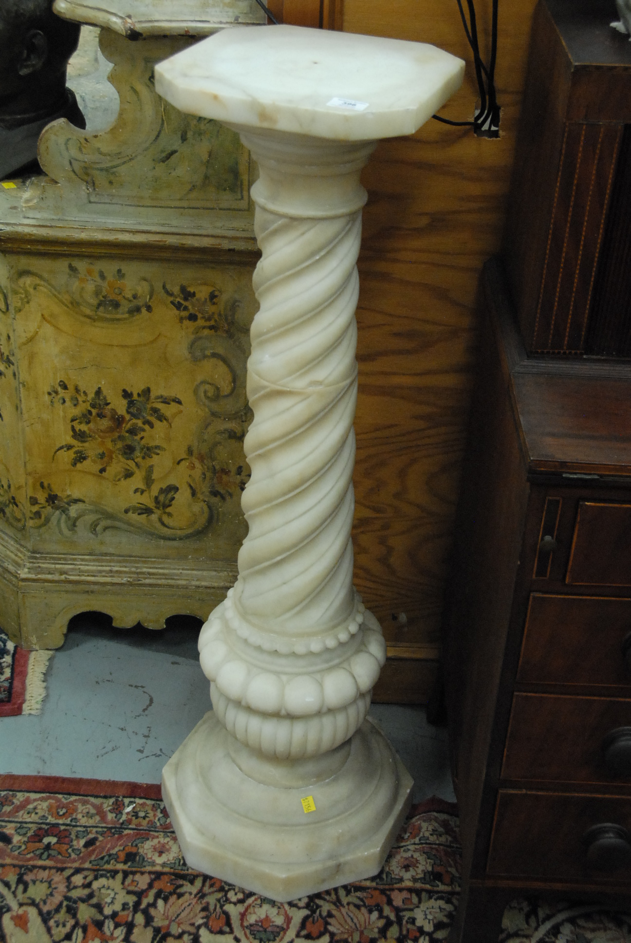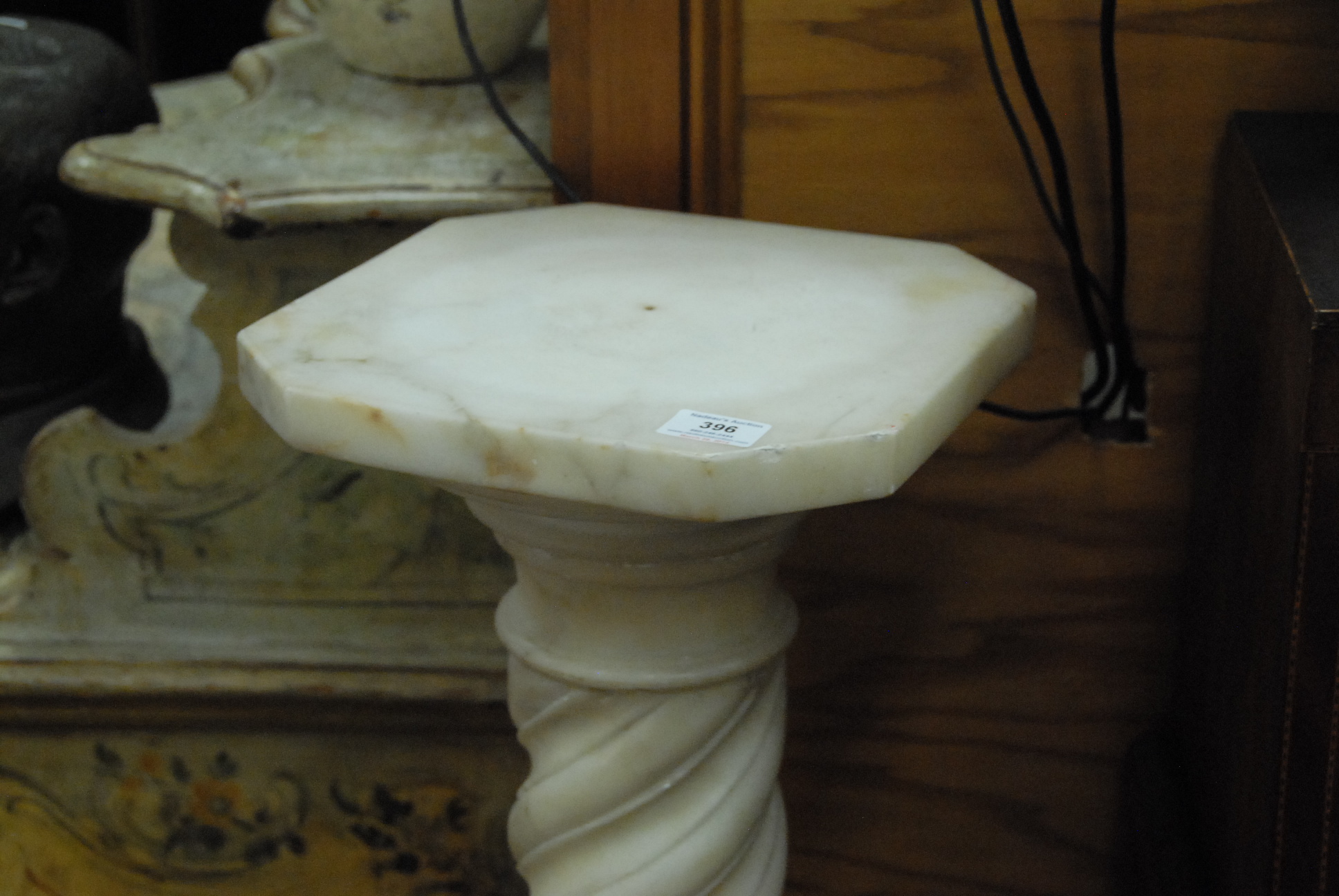 Lot 396: Marble pedestal with twisted and melon shaft on octagon base. ht. 43 1/2in.