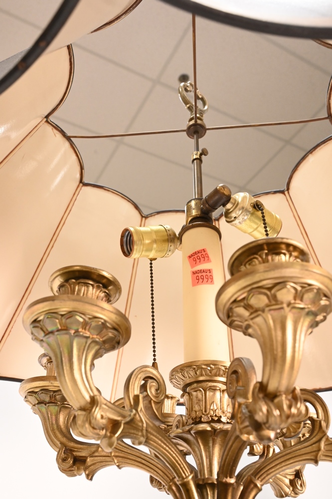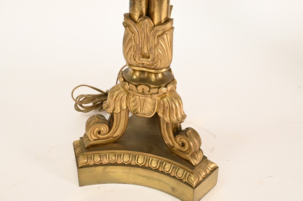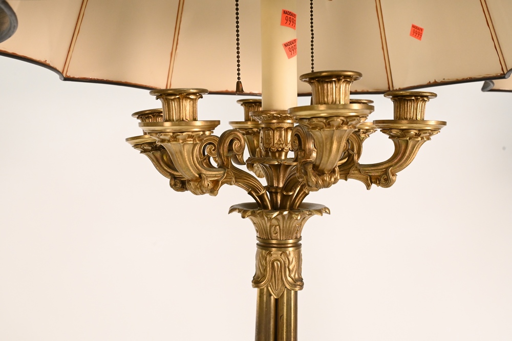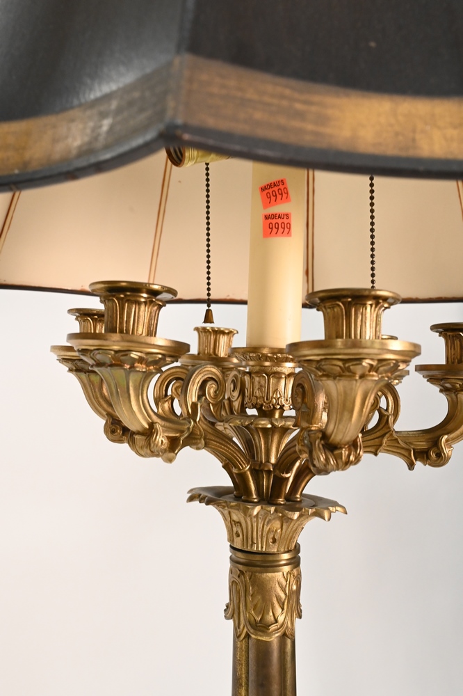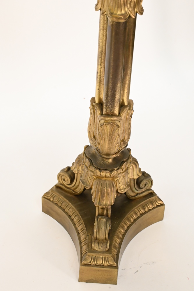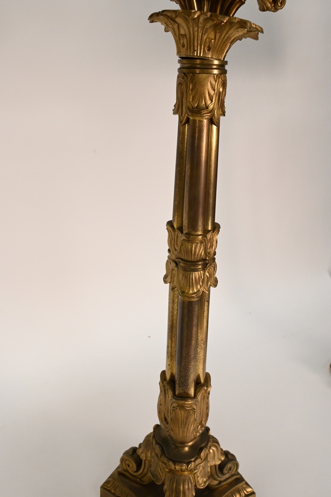 Lot 396: Pair of Large French Empire Bronze Column Candelabras, 19th century, having six arms and a center candle holder, column shaft on scr…