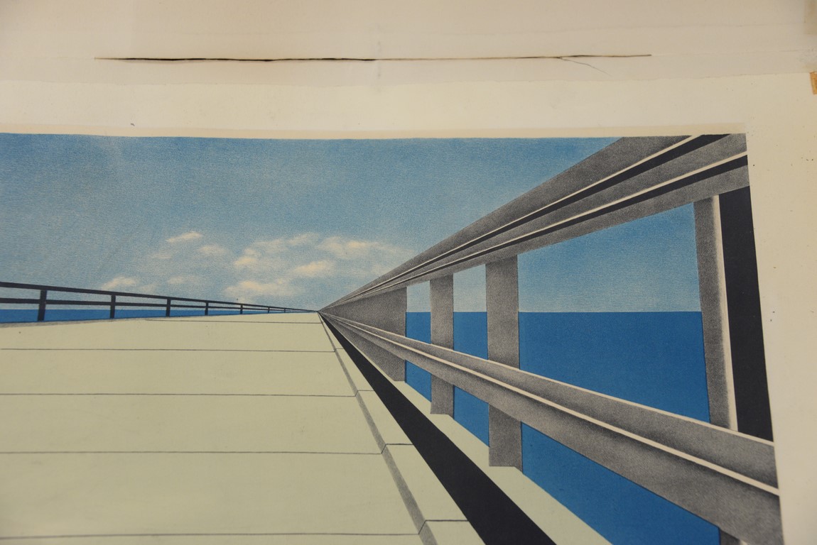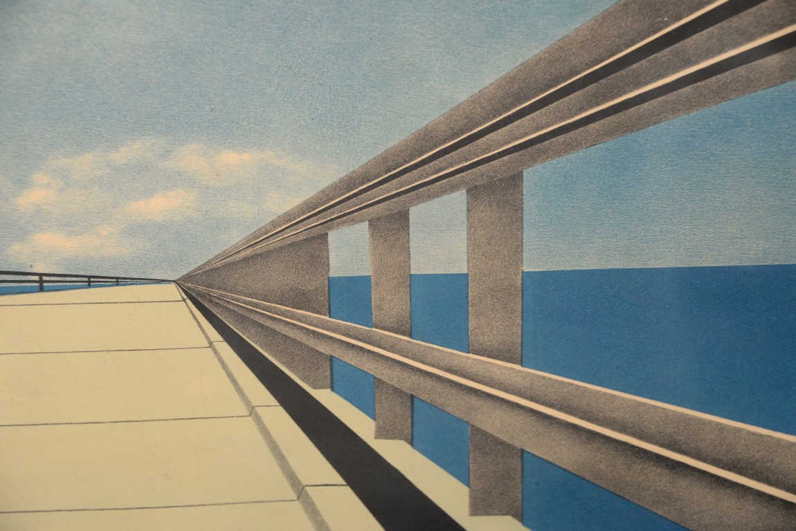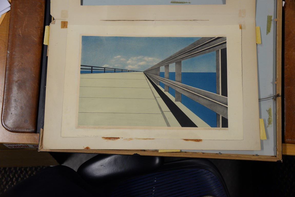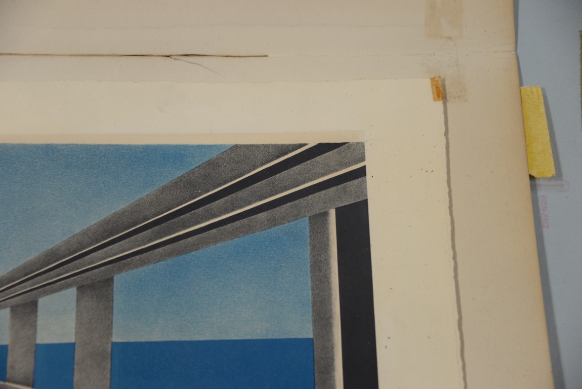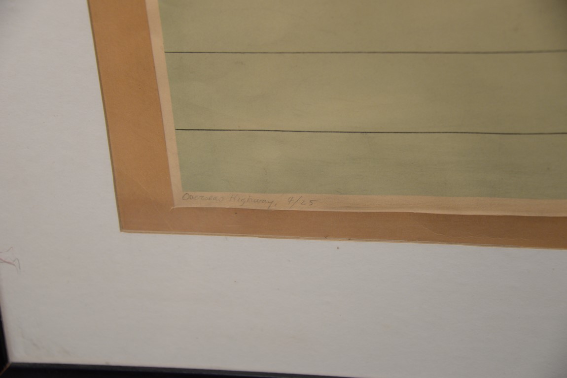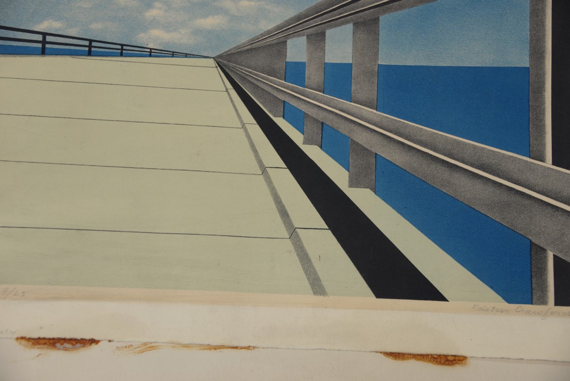 Ralston Crawford 1906-1978 Overseas Highway color lithograph signed in pencil lower right: Ralston Crawford titled and numbered lower left: Overseas Highway, 4/25 sheet size left: 12 1/4 x 19 sheet size right: 12 1/2 x 19 sight size: 9 7/8 x 15 7/8 Provenance: The Estate of Natalie Rafferty