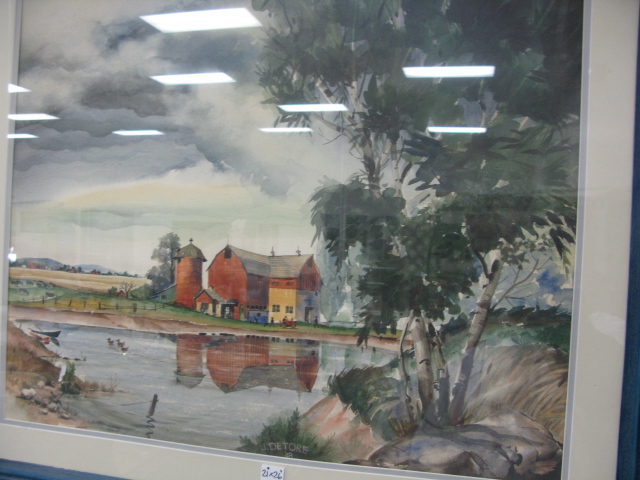 Three piece lot to include two small oil paintings one signed Everson one signed Dietrich and watercolor signed Detore