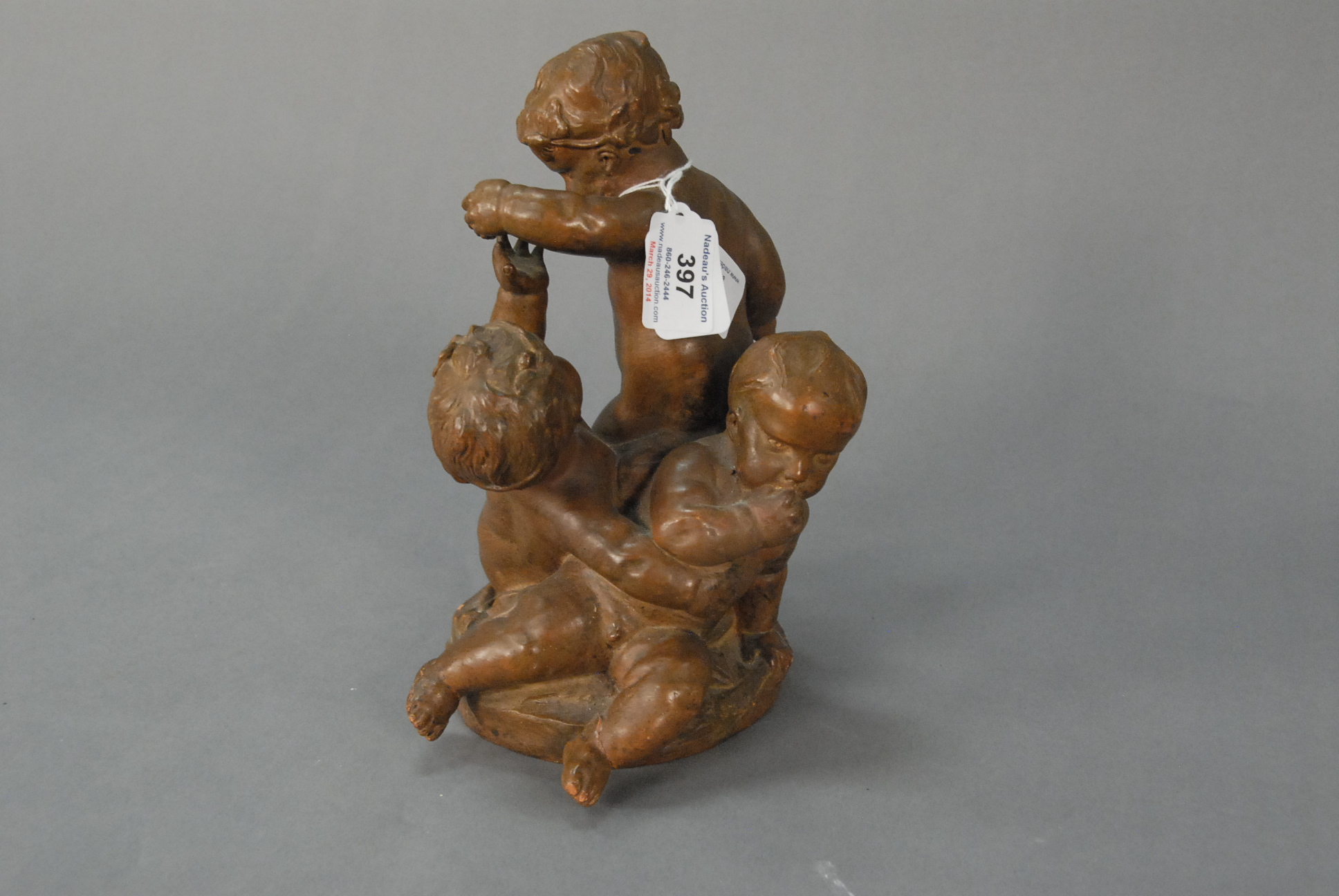 Lot 397: After Louis Felix de Larue French 1731-1777 TROIS ENFANTS JOUANT terracotta cast base signed indistinctly one foot repaired ht. 9in.