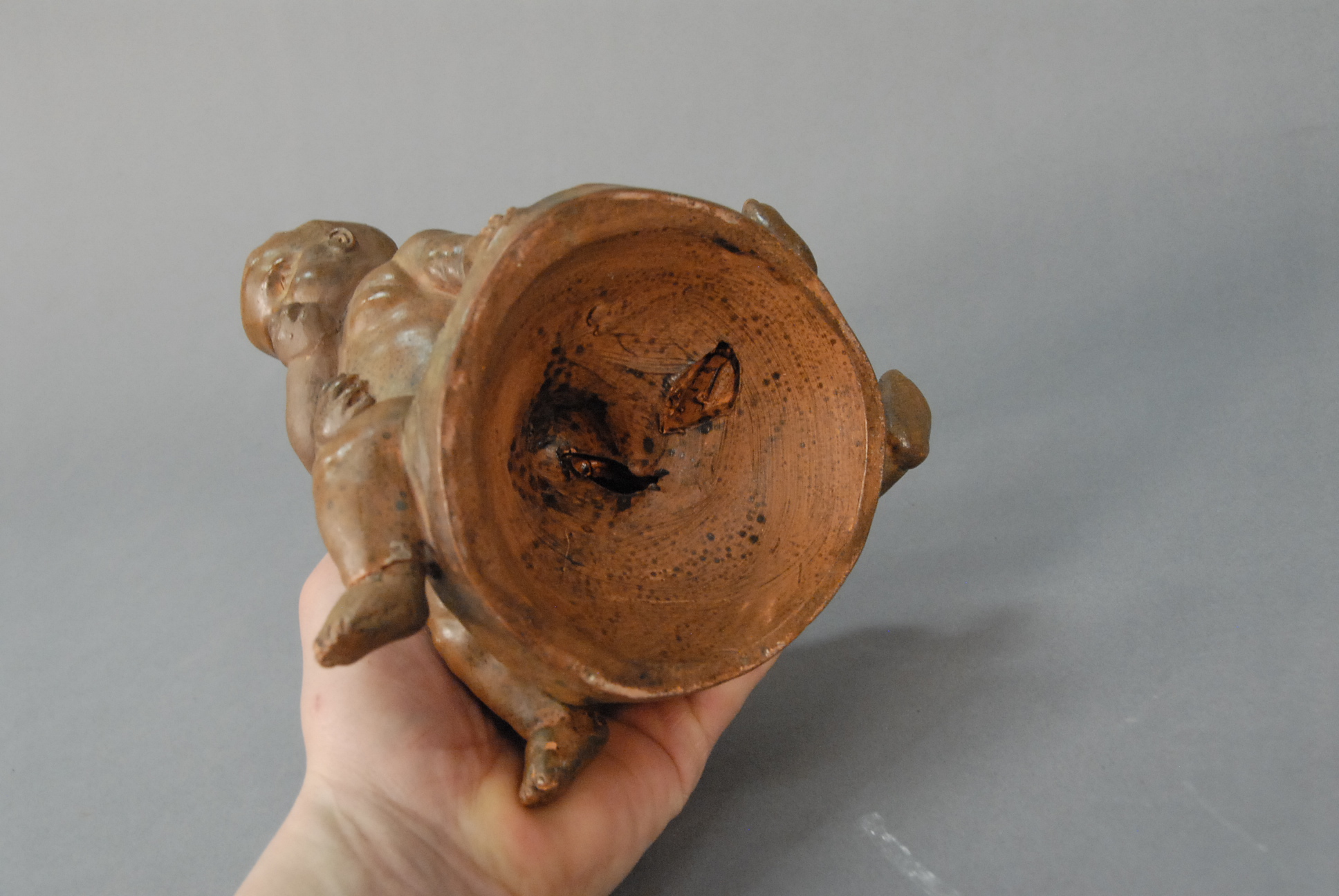 After Louis Felix de Larue French 1731-1777 TROIS ENFANTS JOUANT terracotta cast base signed indistinctly one foot repaired ht. 9in.