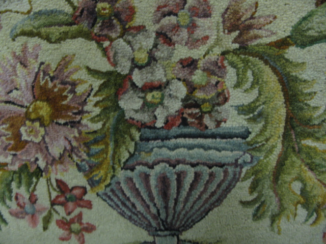 Hooked rug, depicting planter of flowers
