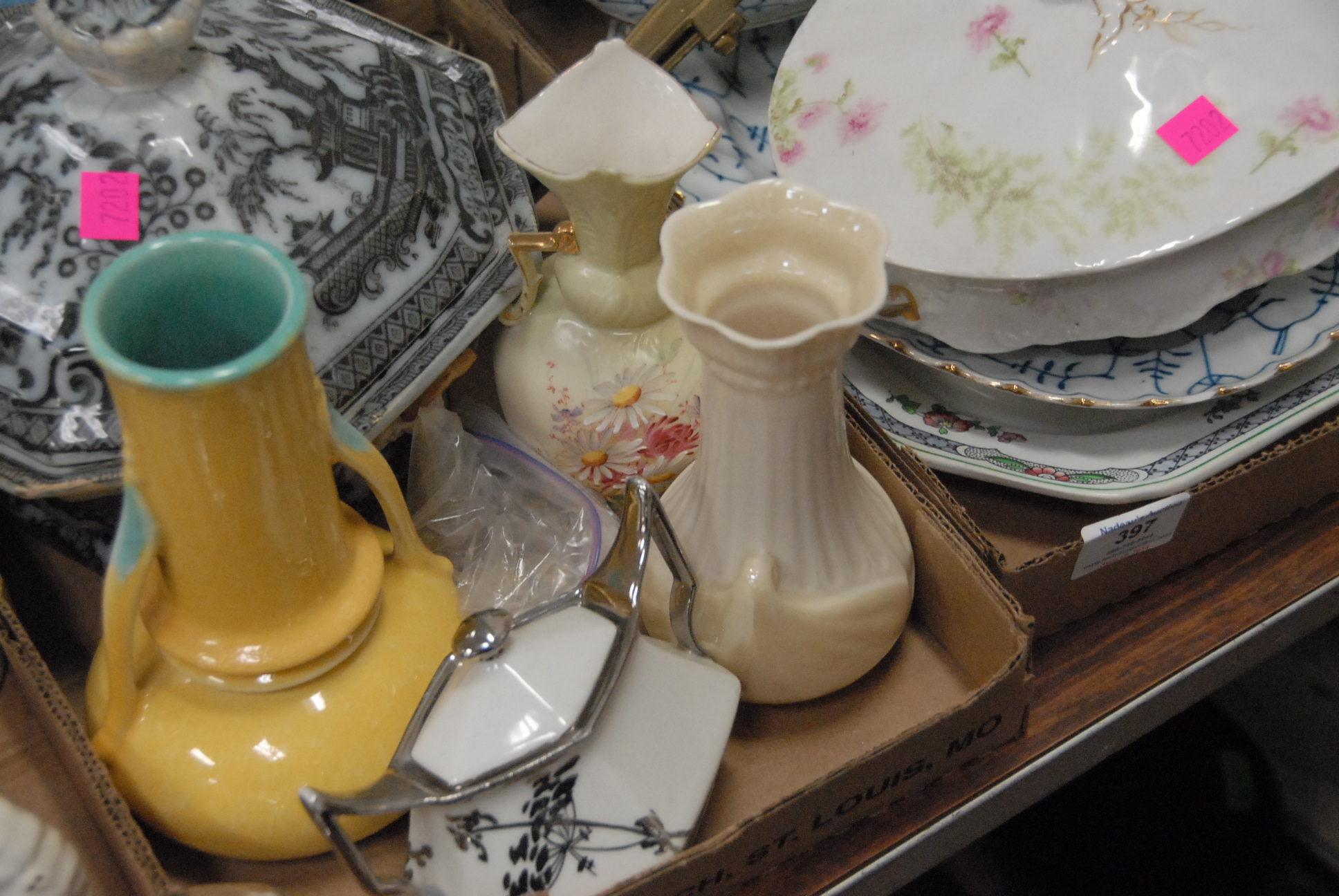 Lot 397: Majolica umbrella stand and six box lots of Staffordshire Mulberry covered vegetable dishes and sets of plates.