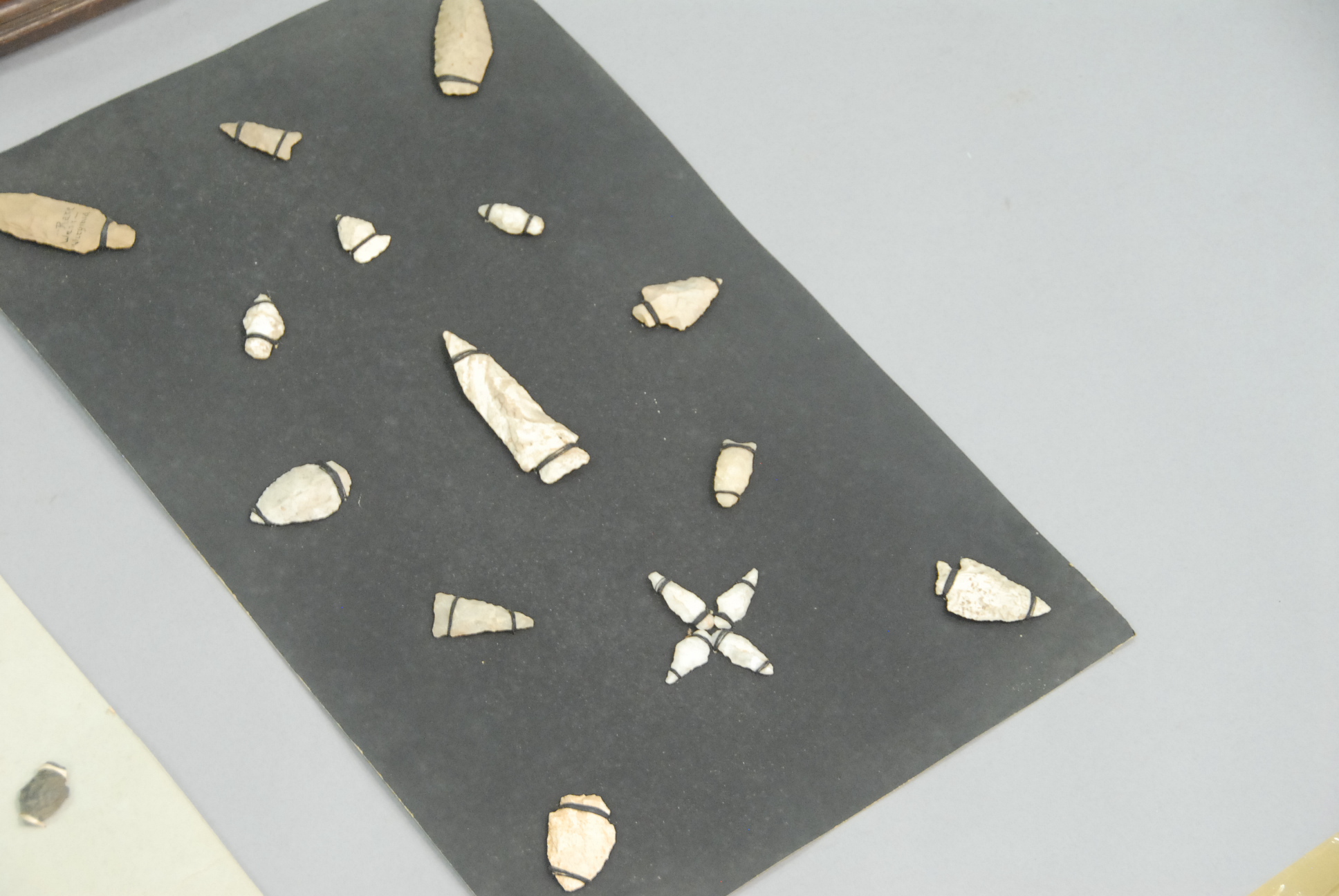 Nine cards of American Indian arrowheads, approxinately 125 total.