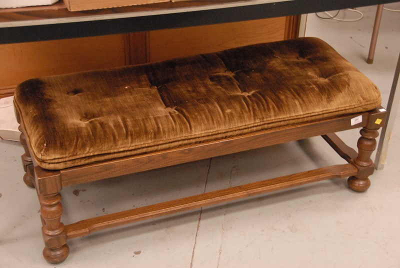 Lot 397: Oak bench with upholstered top, ht. 15in. lg. 44in.