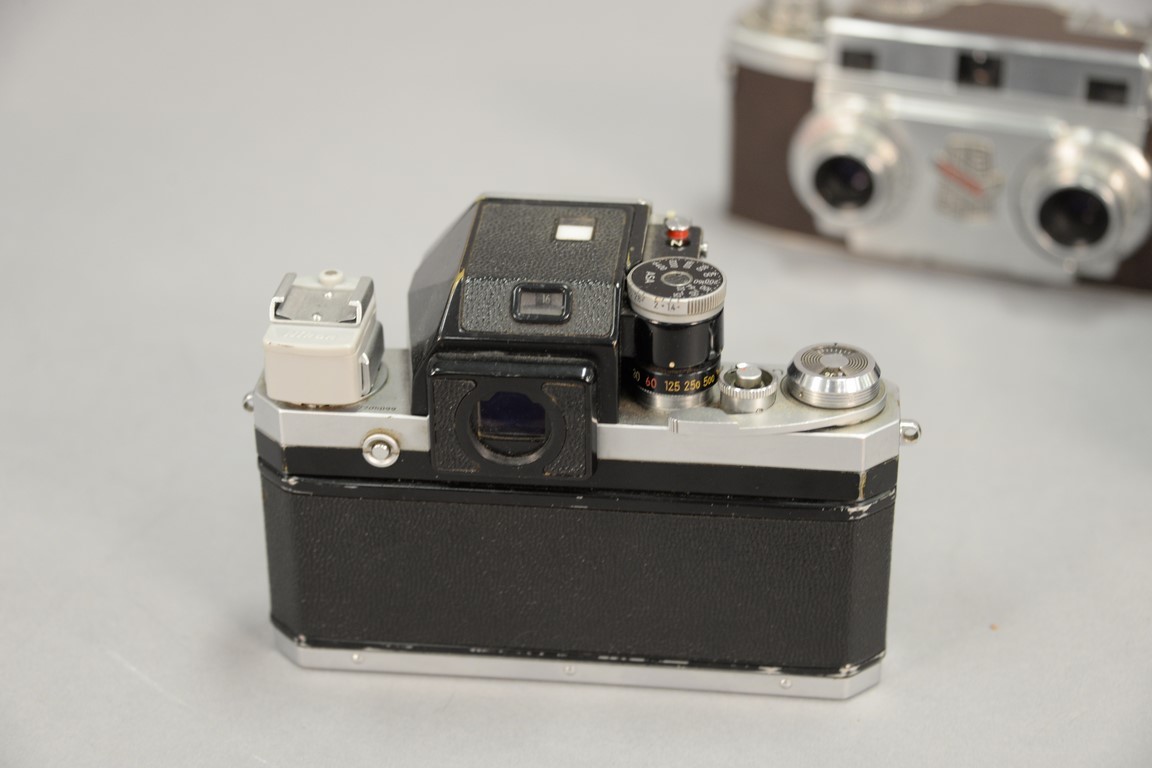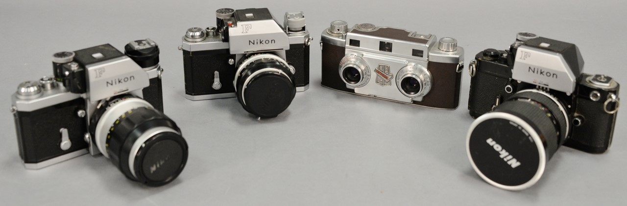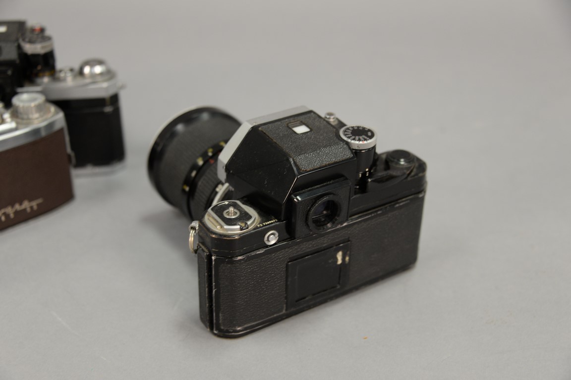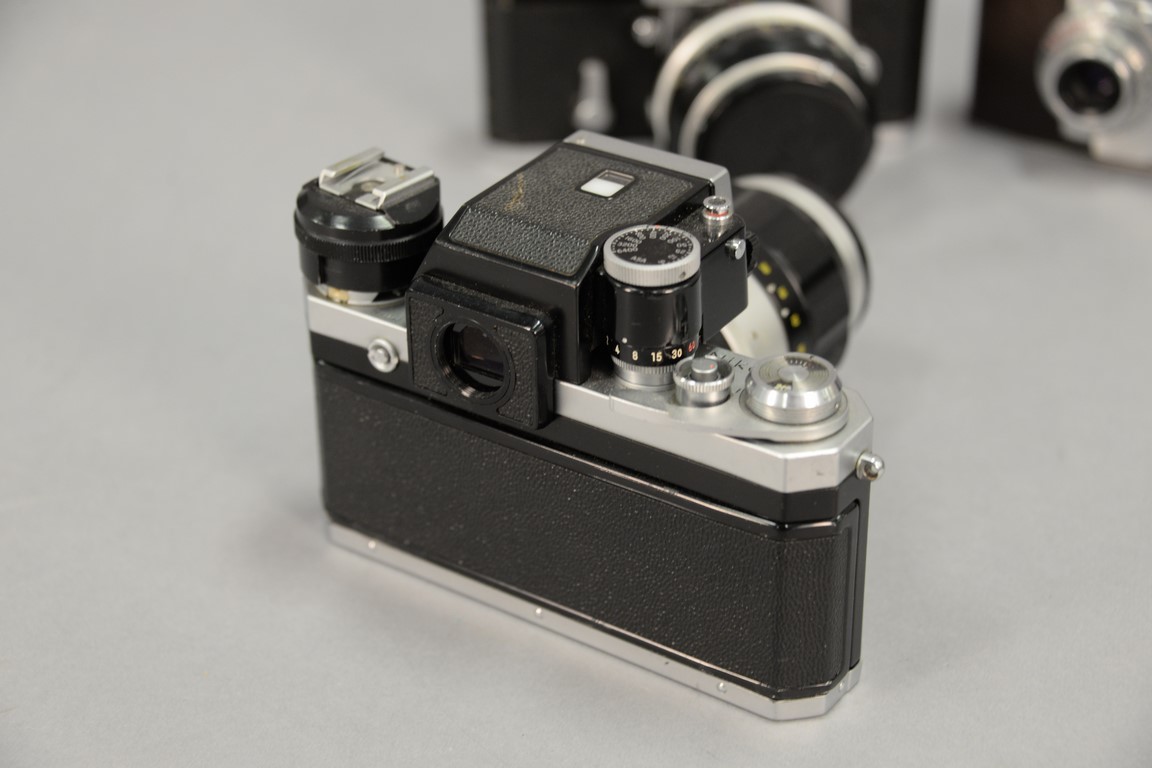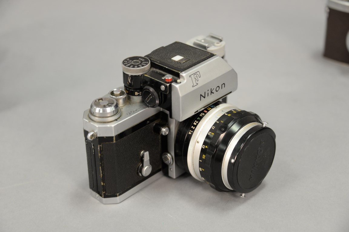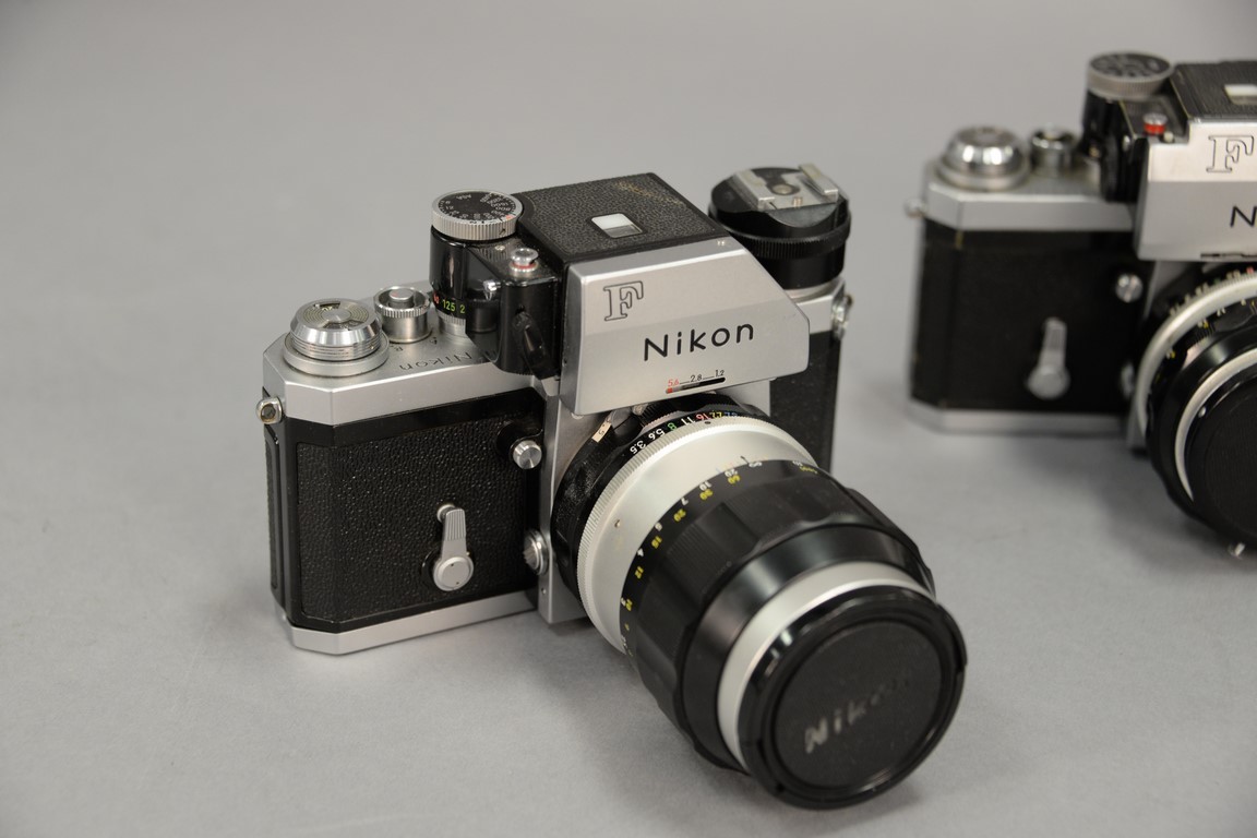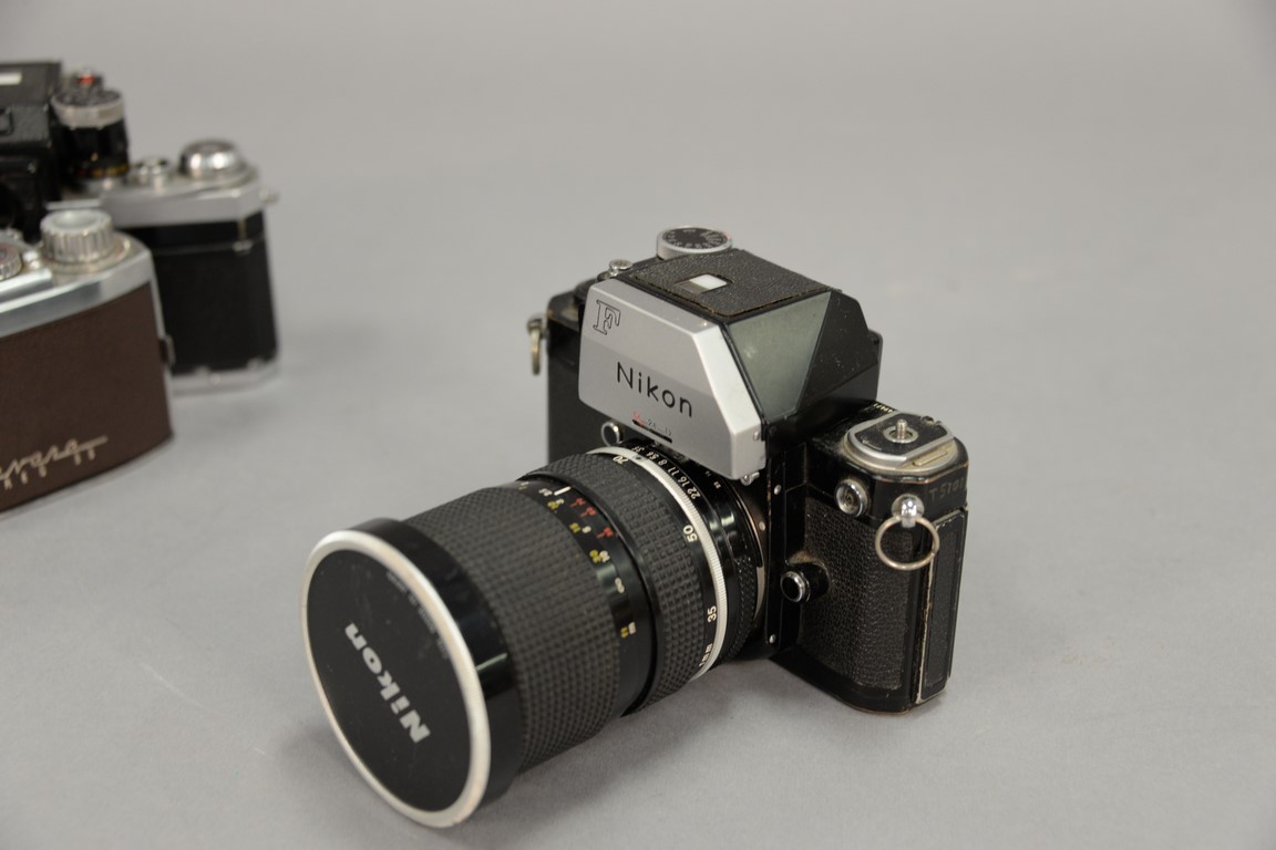 Lot 397: One box lot: Nikon F camera lot including Nikon F2 F2-7249471 needs repair with zoom Nikkor 35/70/3.5 761893, Nikon F 7205899…