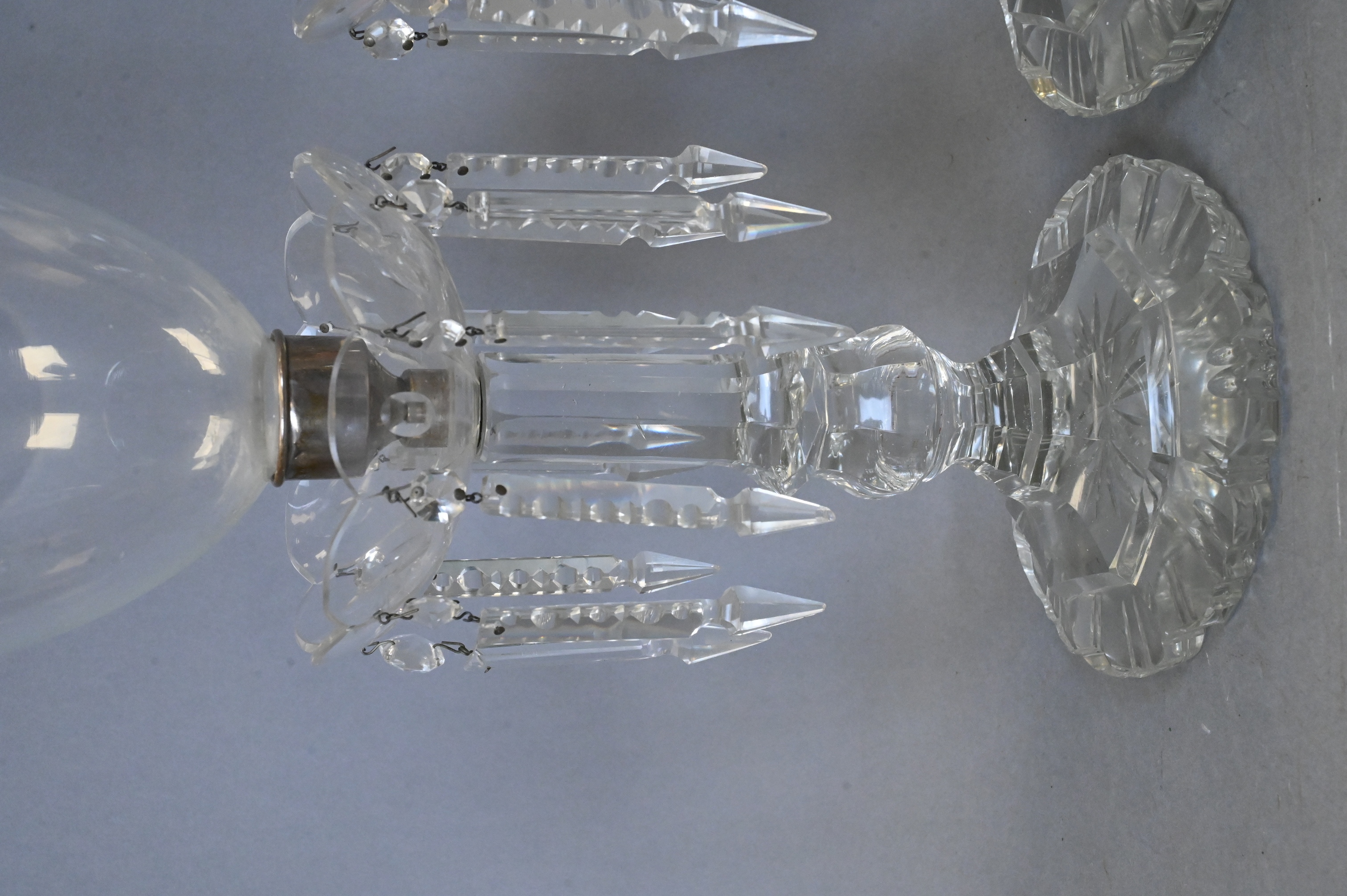Lot 397: Pair of Cut Glass Mantle Lustres with Hurricane Shades