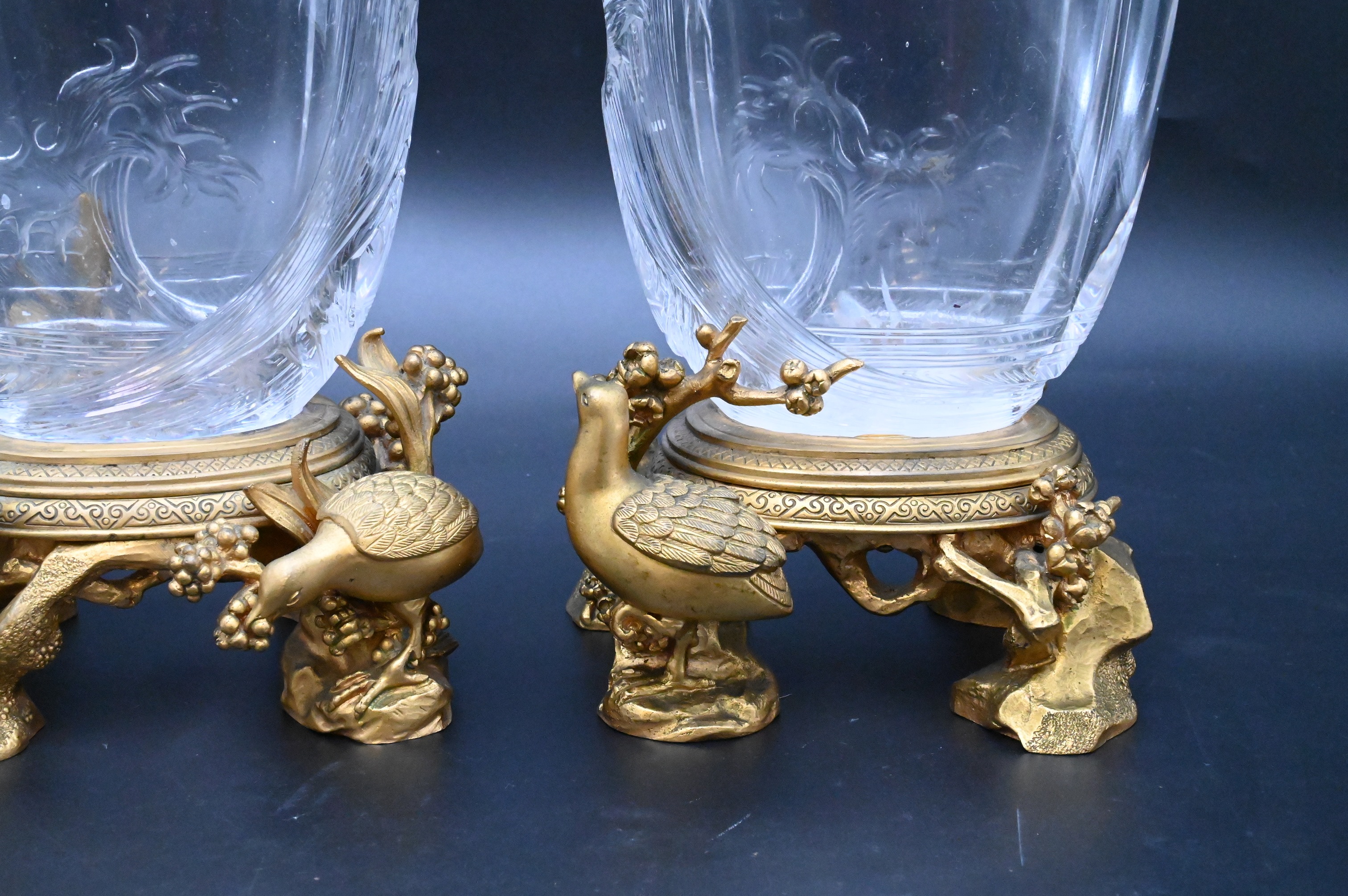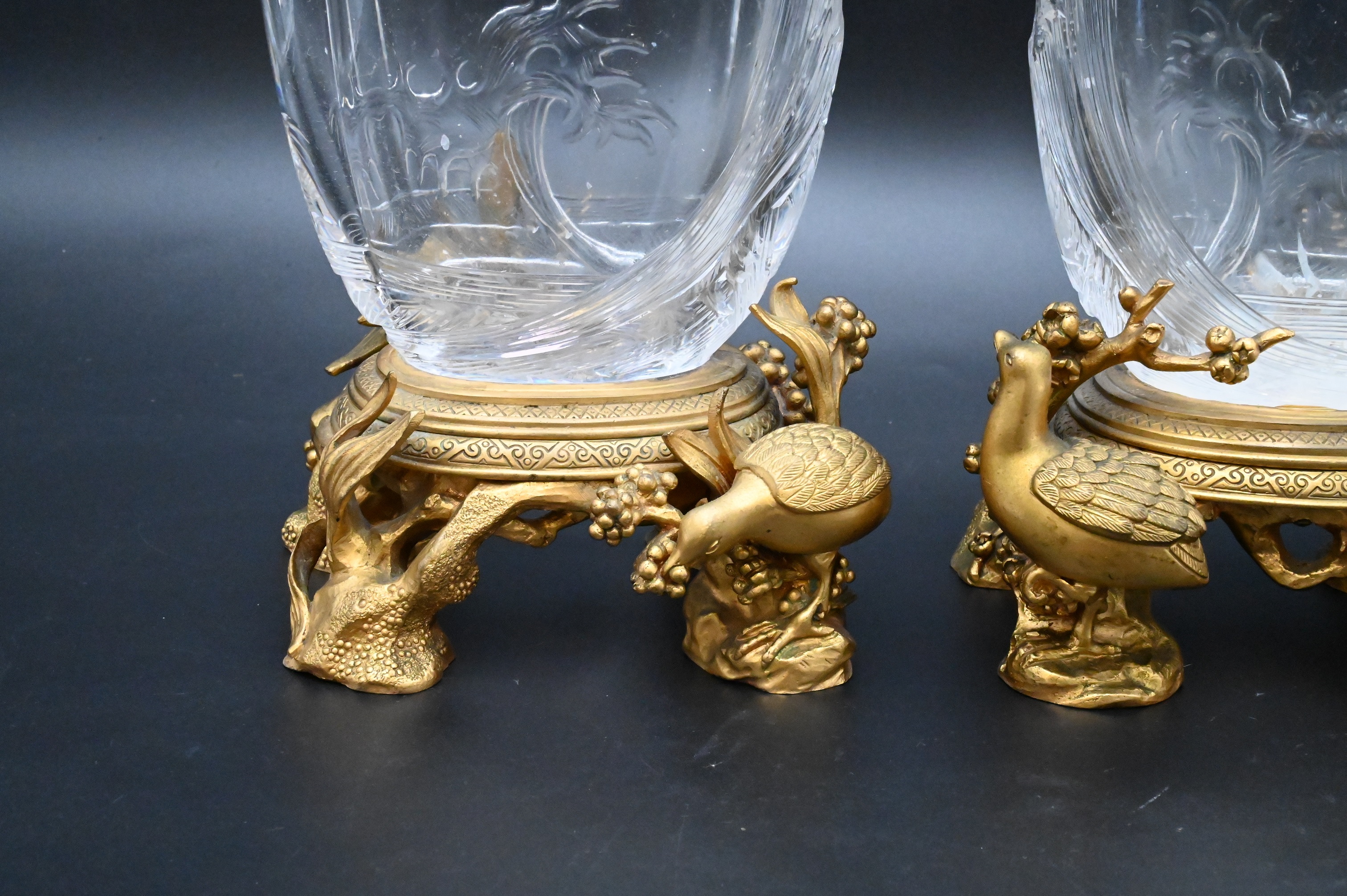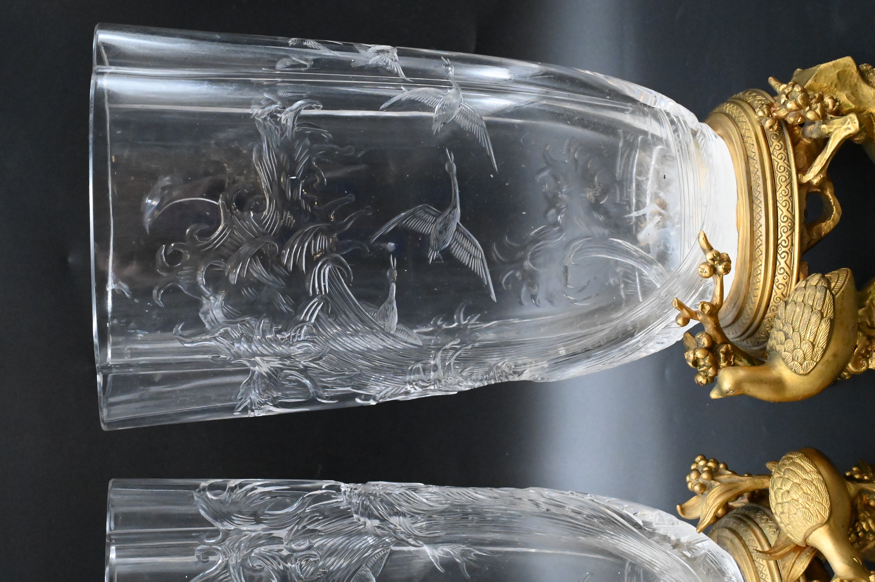 Pair of French Rock Crystal Gilt Bronze Mounted Vases