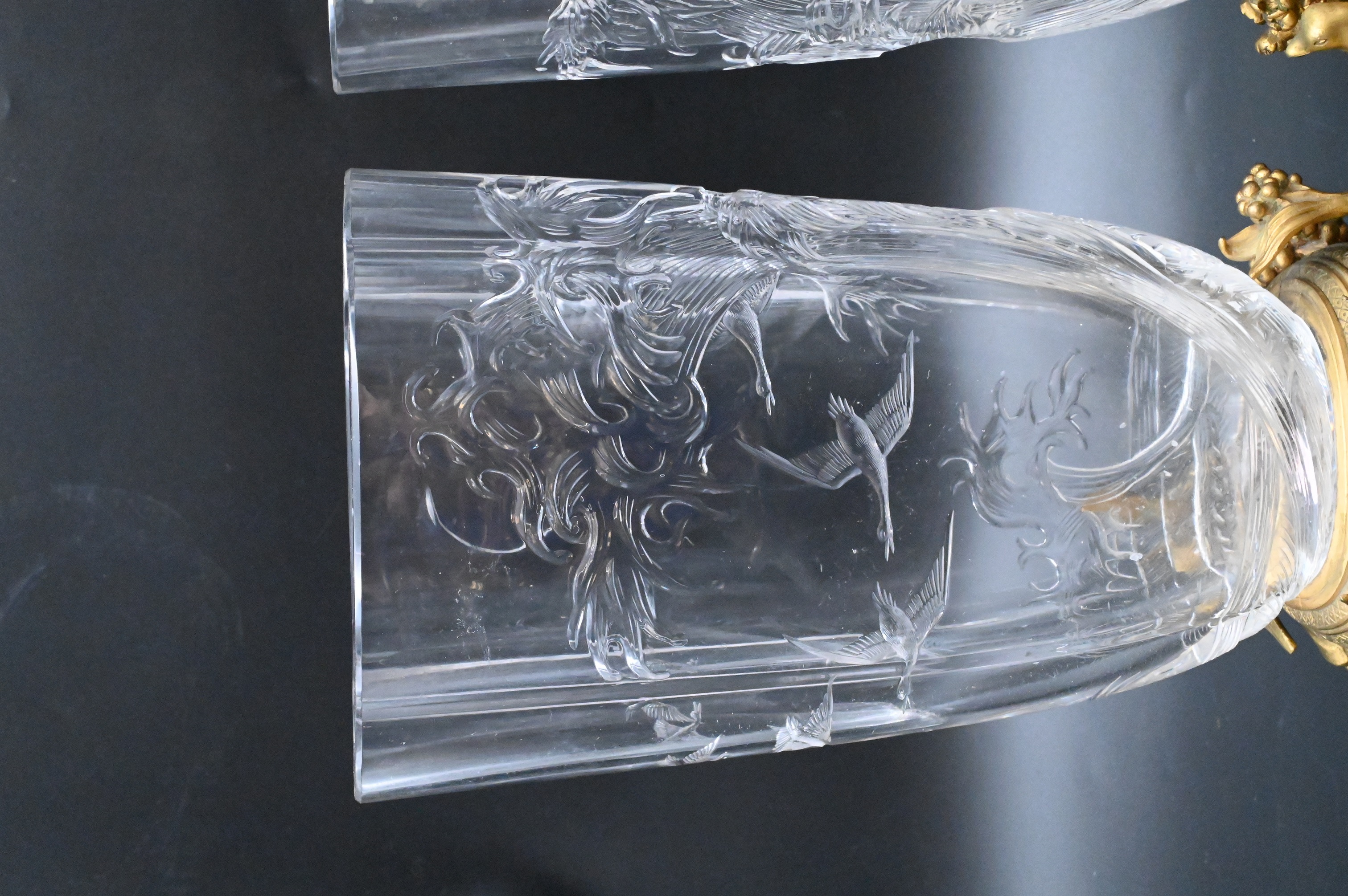 Lot 397: Pair of French Rock Crystal Gilt Bronze Mounted Vases