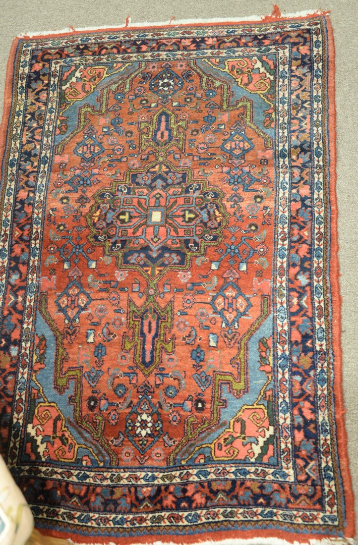 Lot 397: Two throw rugs to include Bidjar Oriental Throw Rug 2′ 5 x 3’8 along with throw rug 2’6 x 3’2 Provenance: The Estate of Diana …
