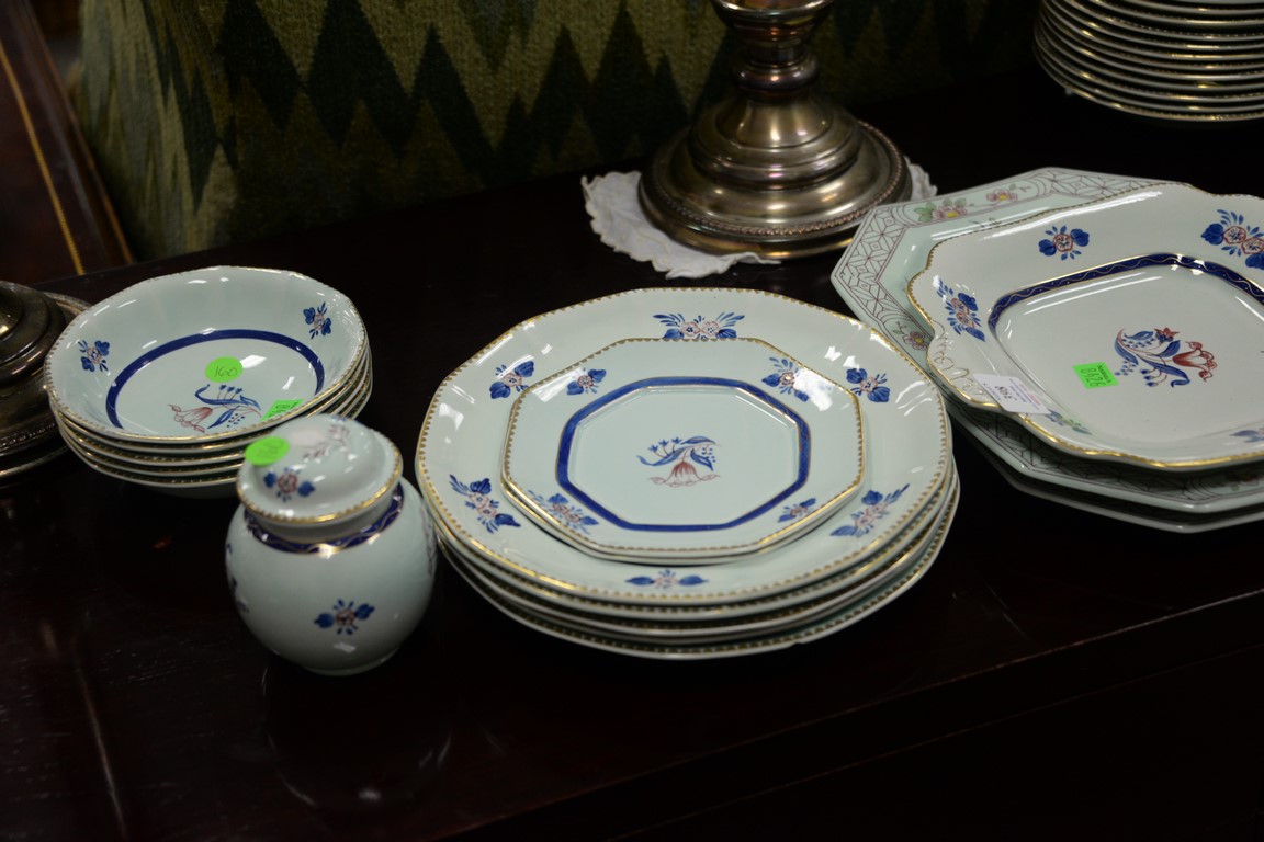 Adams England china set, Calyx Ware to include Singapore Bird pattern serving trays, service for 11.