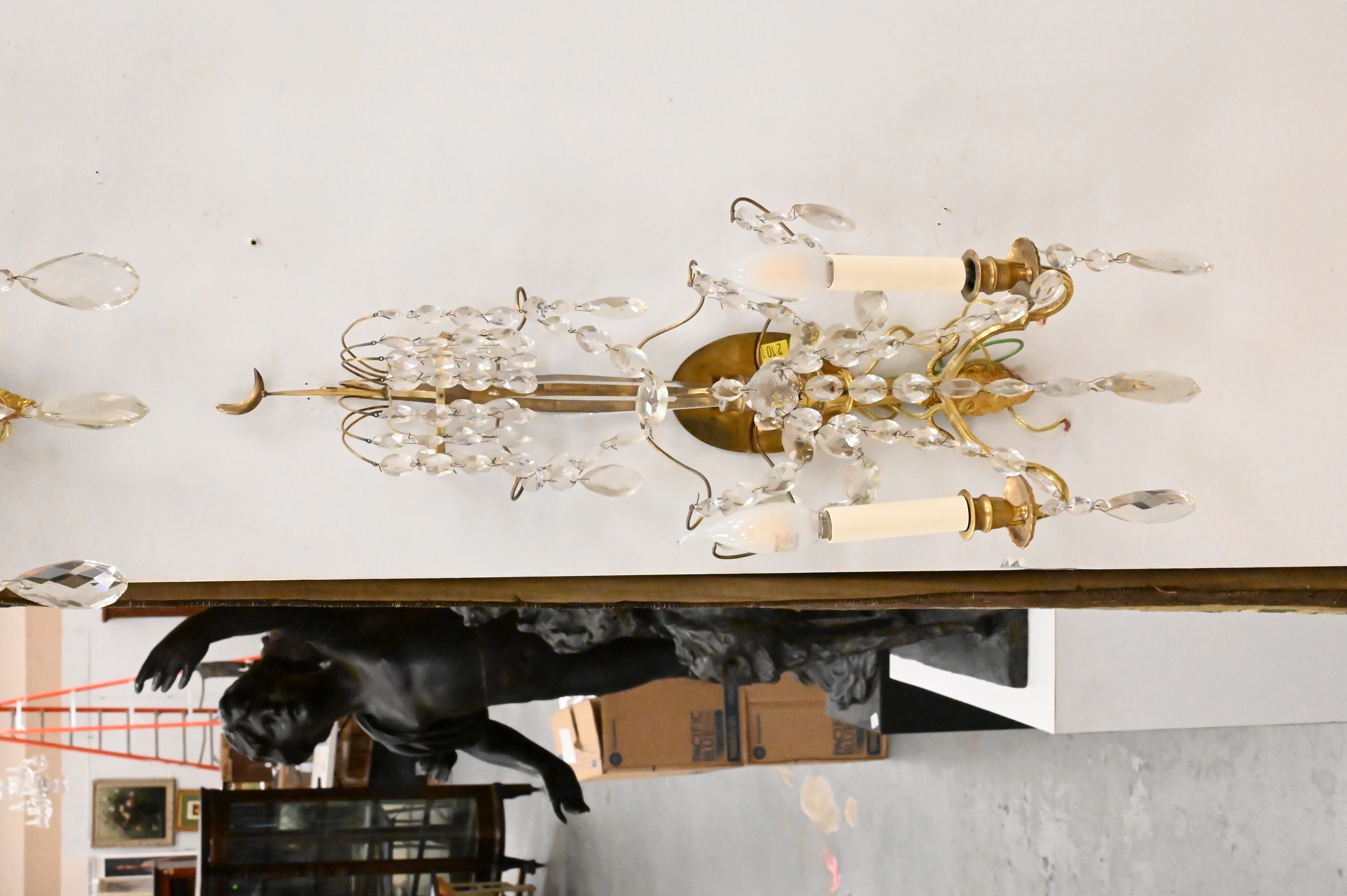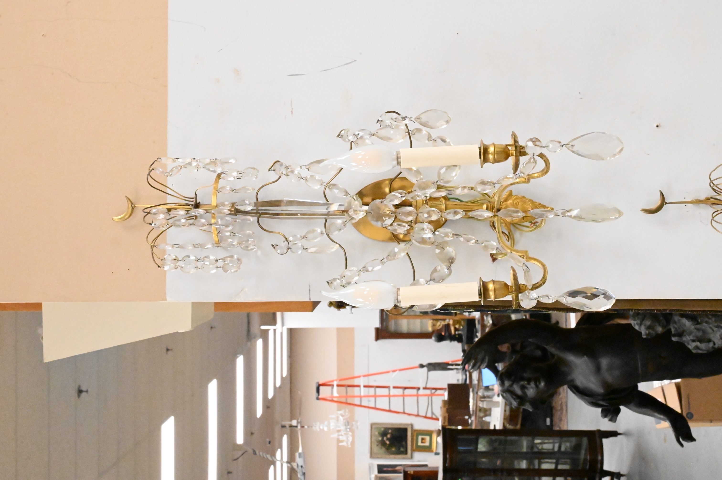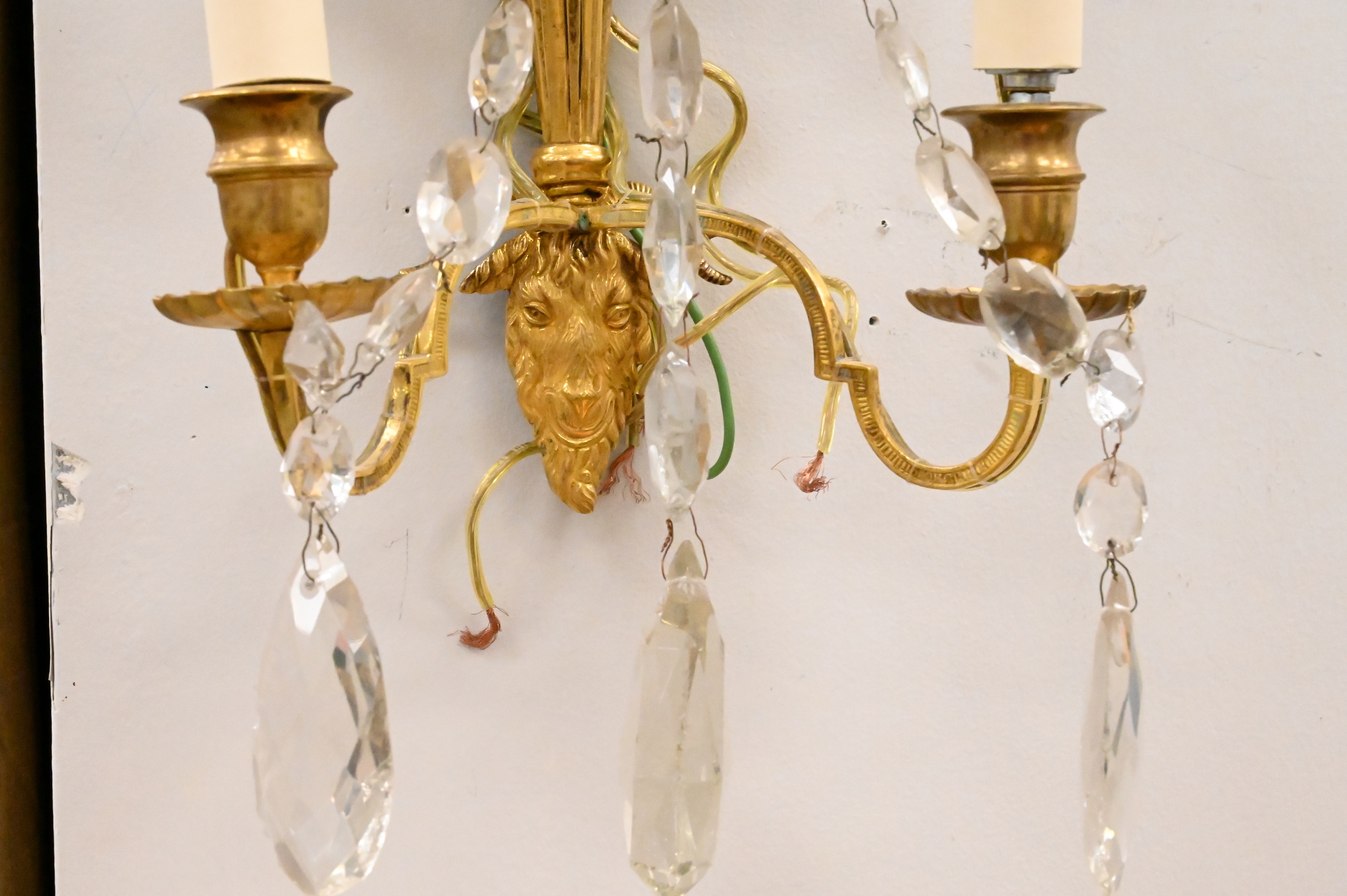 Lot 398: Pair of Swedish or Russian Neoclassical Cut Glass and Gilt Bronze Sconces