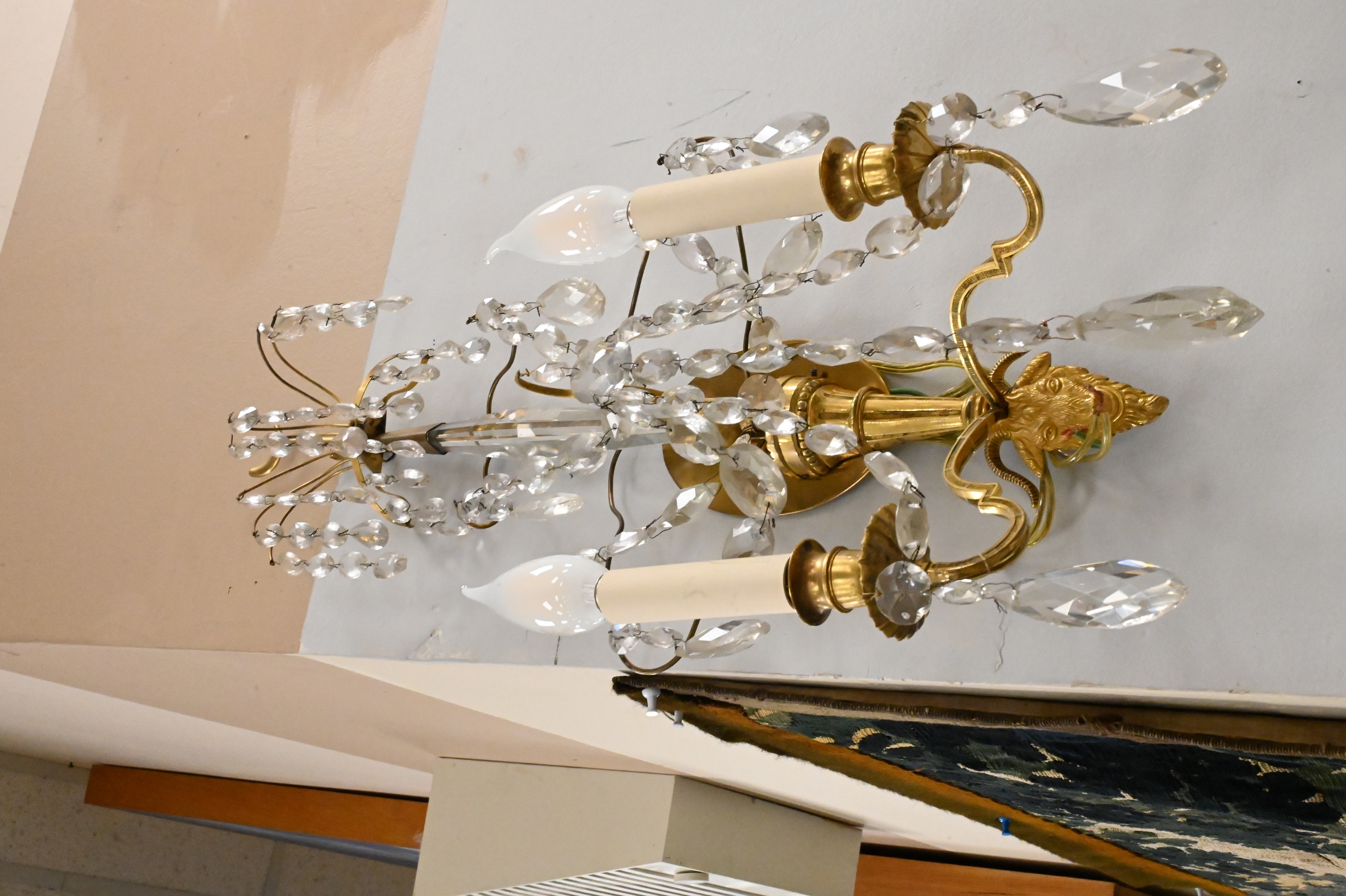having crystal and bronze shaft, two arms over ram’s head