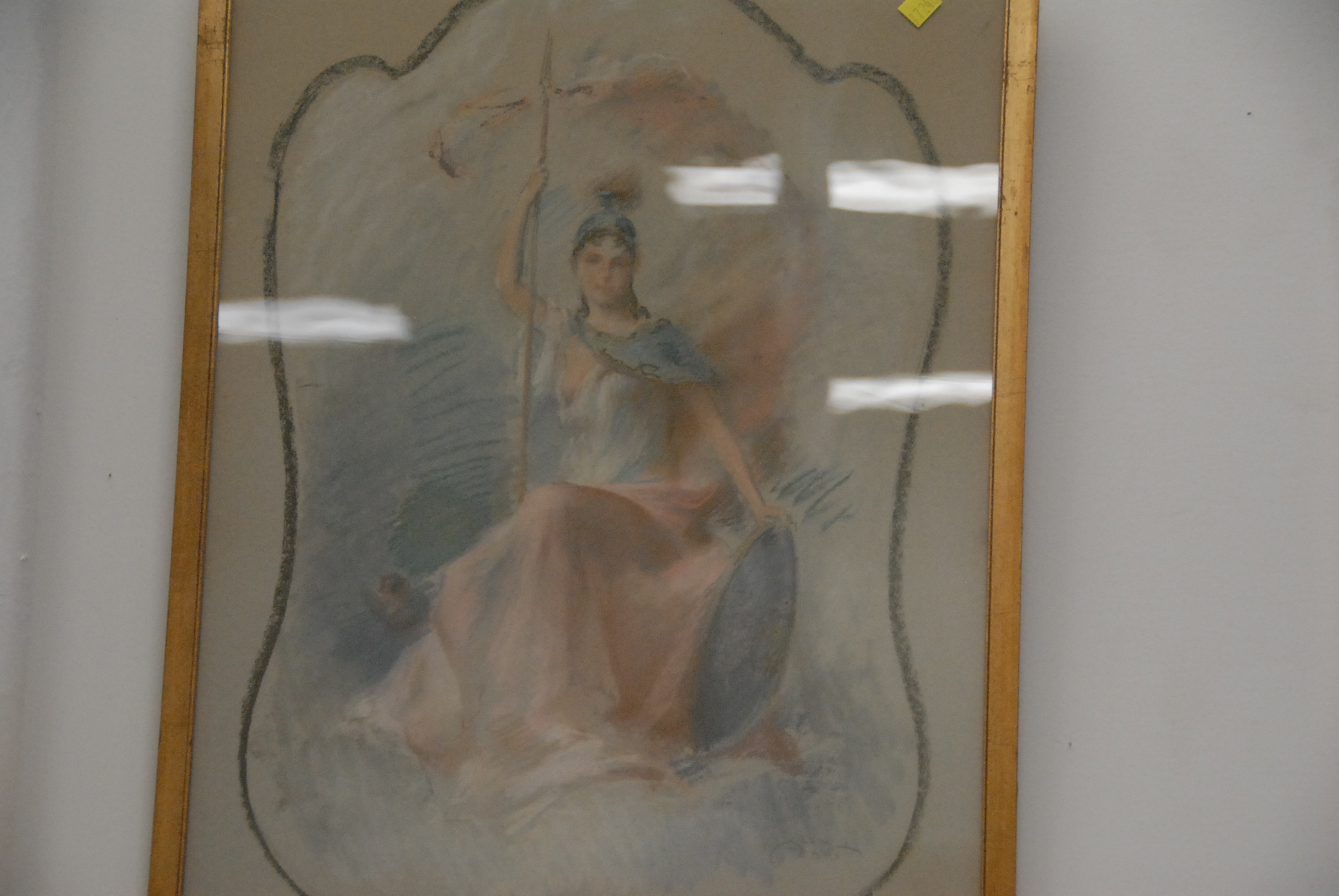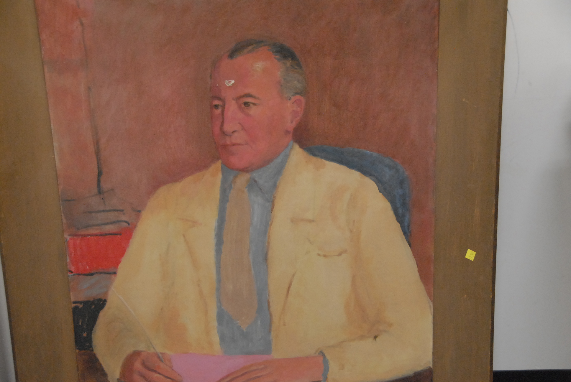 Six piece lot to include, Tom Oliphant water color Waiting in the Wings 16×20, two pastels signed indistinctly, oil on board with zebras by water signed Hamilton, oil on canvas bust of a man, and a print by Henri Rousseau.