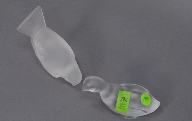 Two frosted bird figures one signed Lalique and one signed Baccarrat.