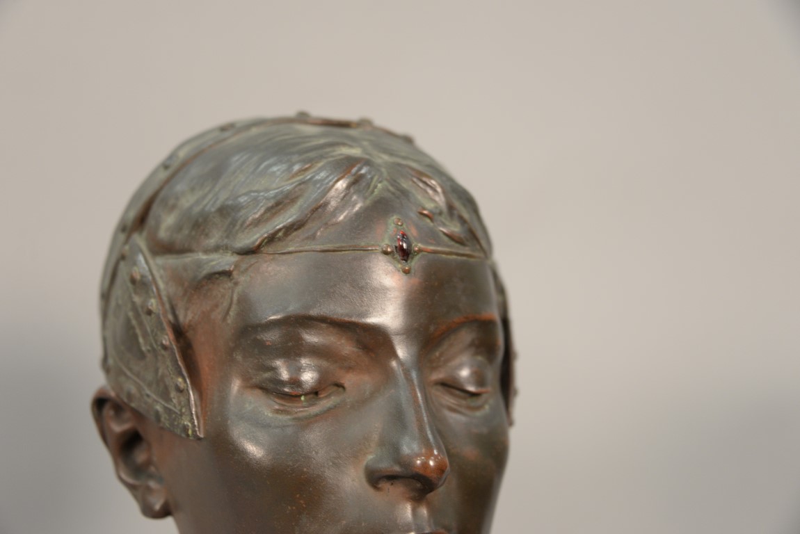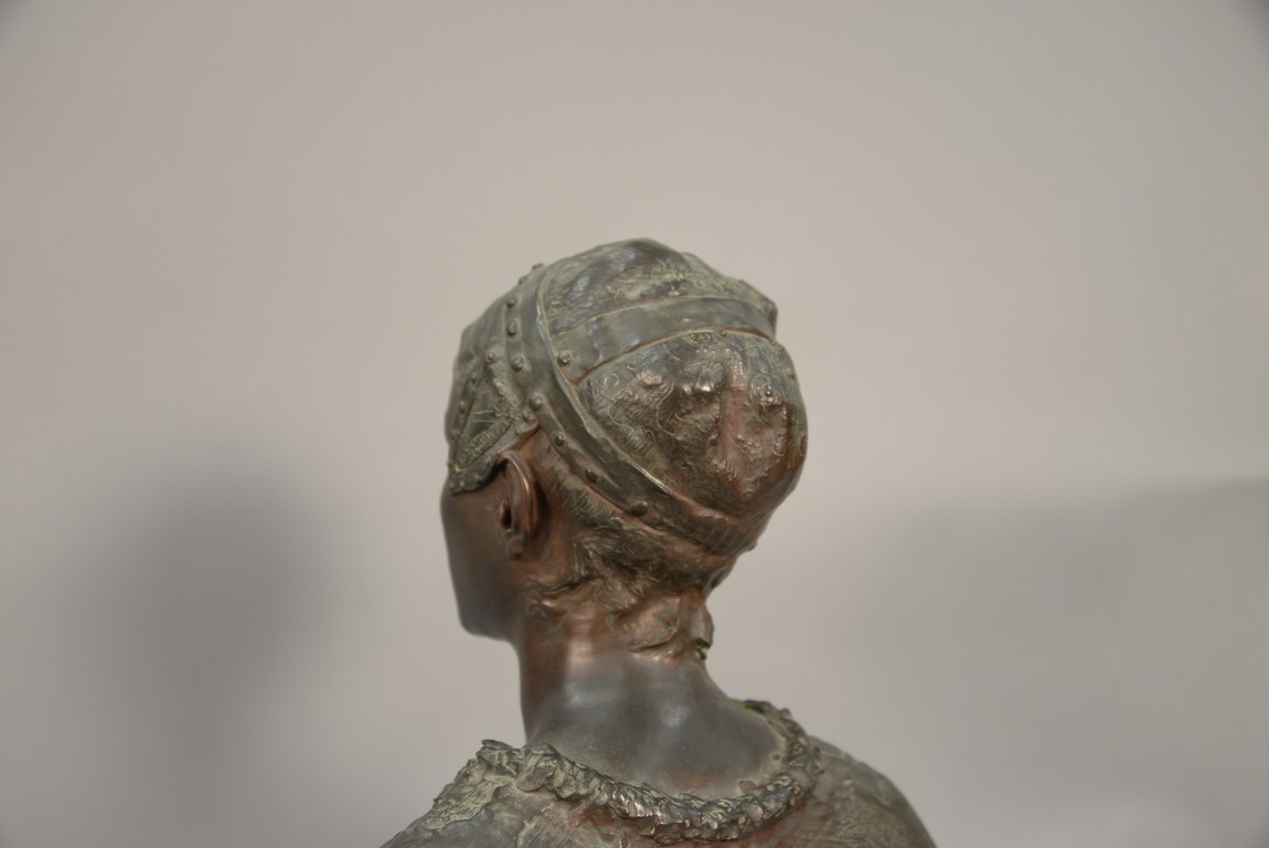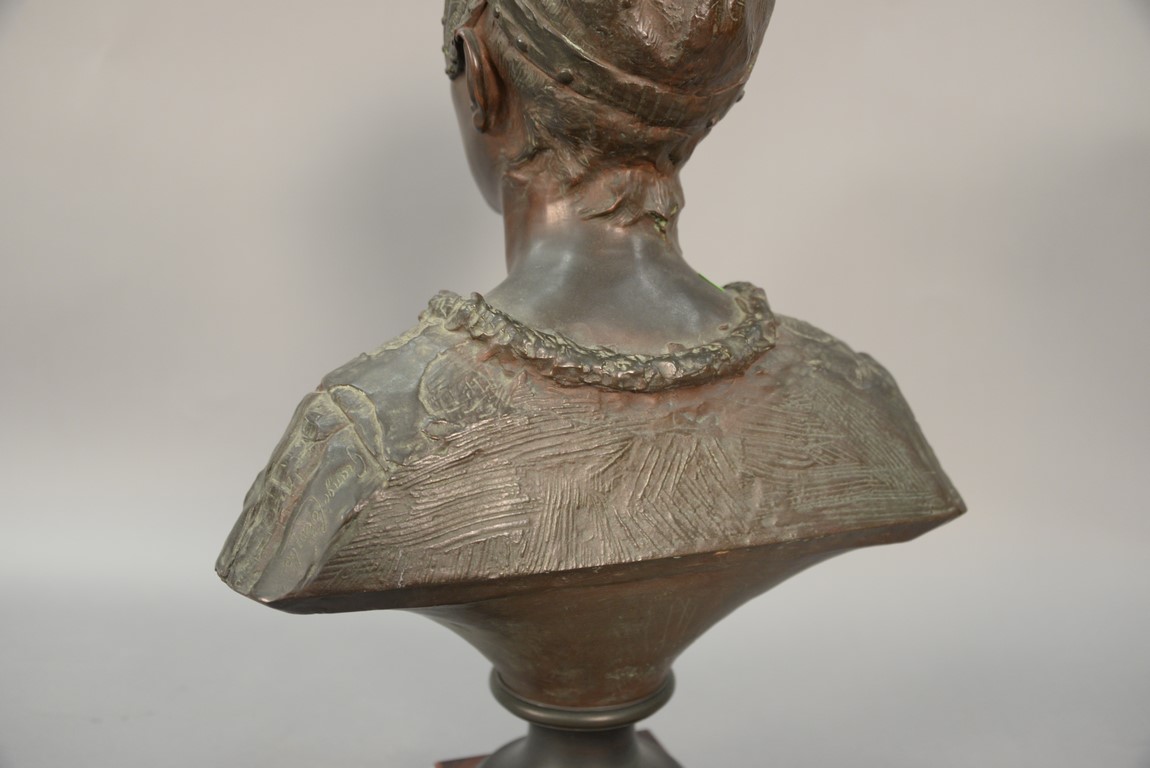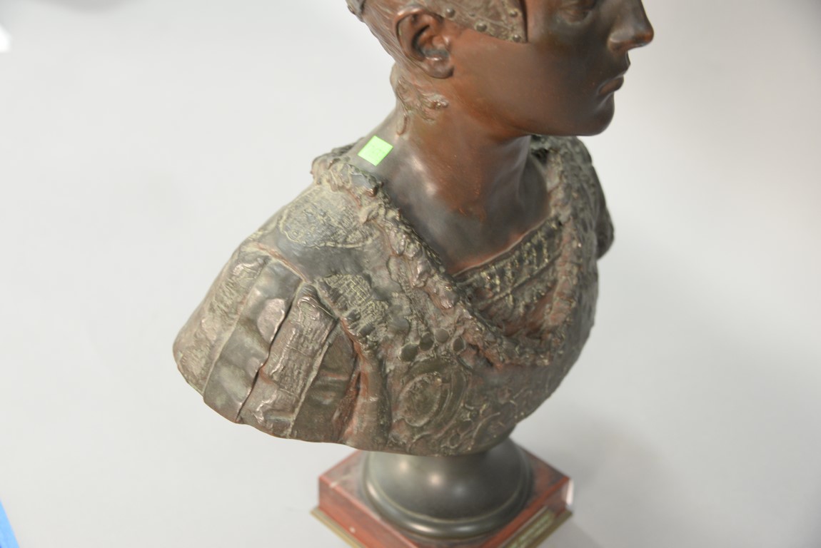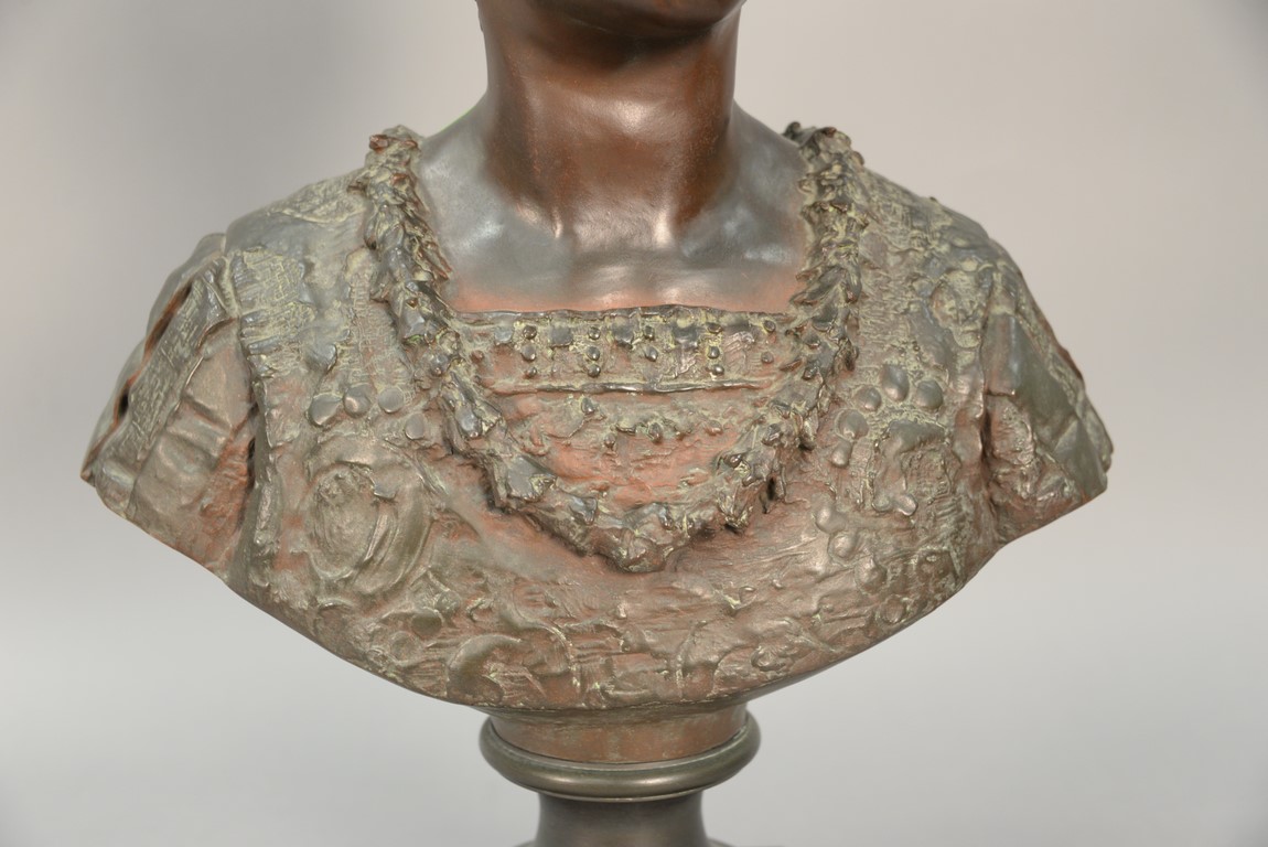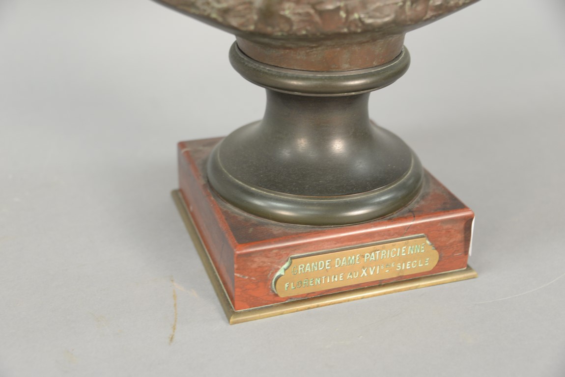 Lot 399: Bronze bust on rouge marble base, plaque marked Grande Dame Patricienne Florentine Au XVI EME Siecle. ht. 23 in
