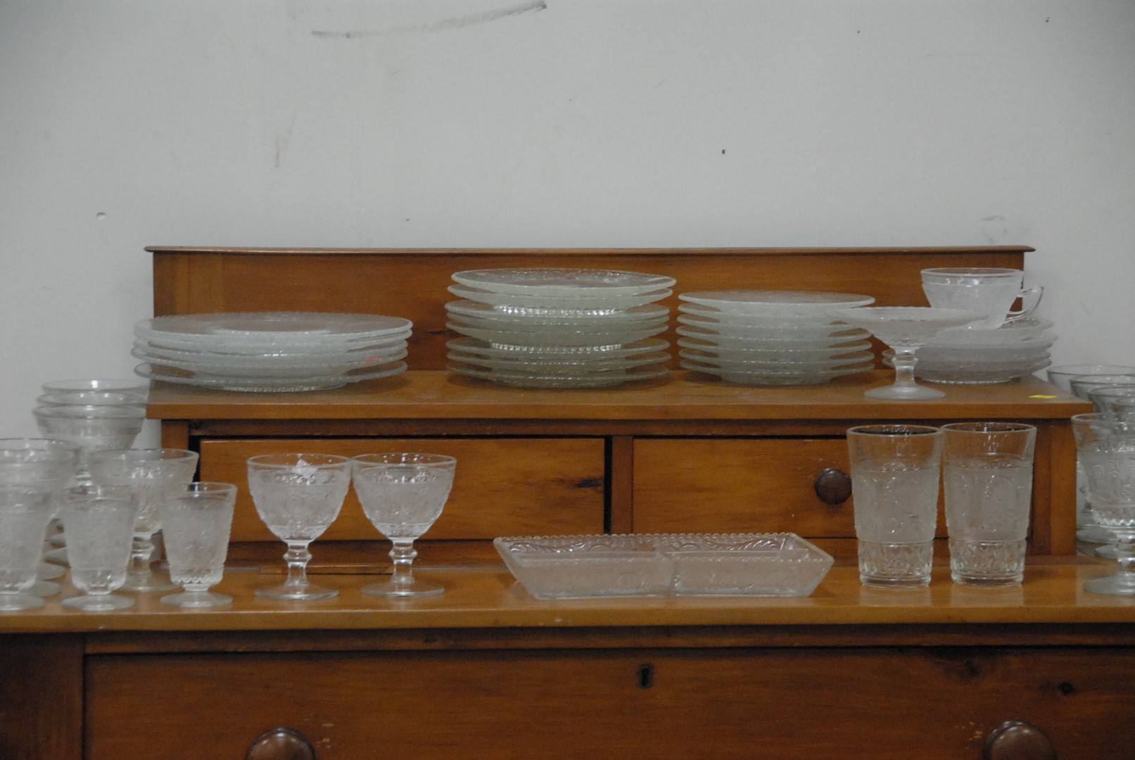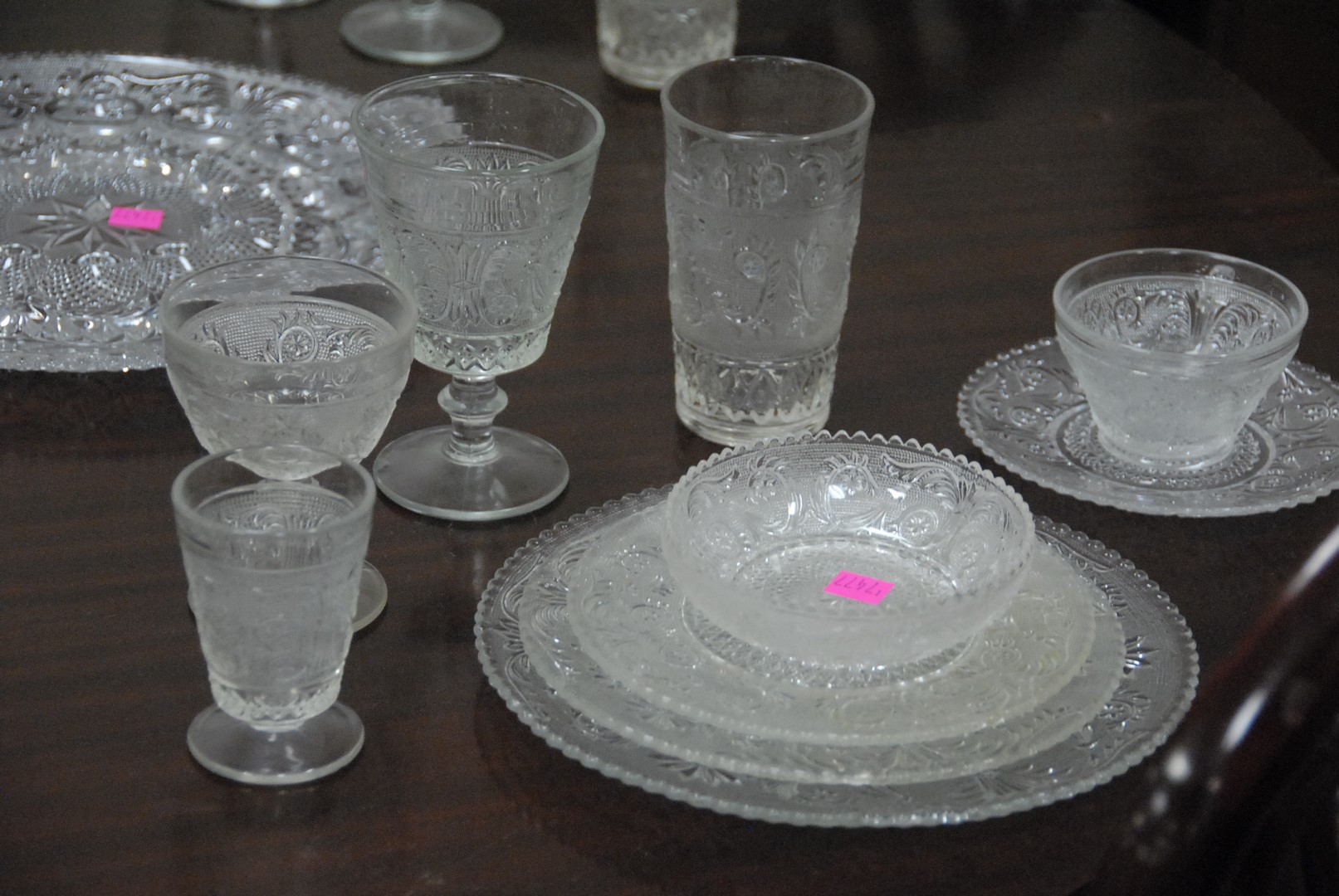 Lot 399: Duncan Miller sandwich glass set. 90 total pieces.