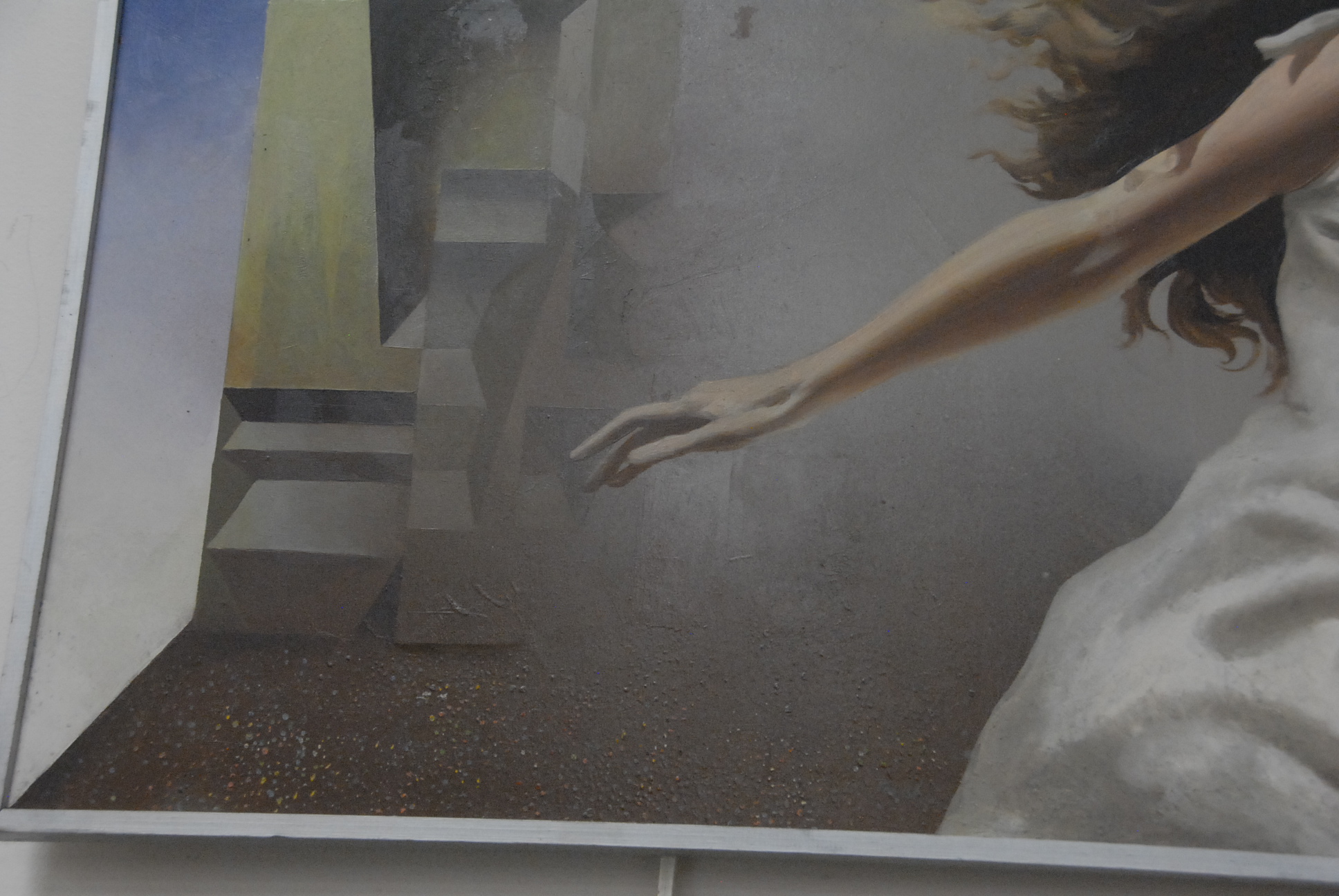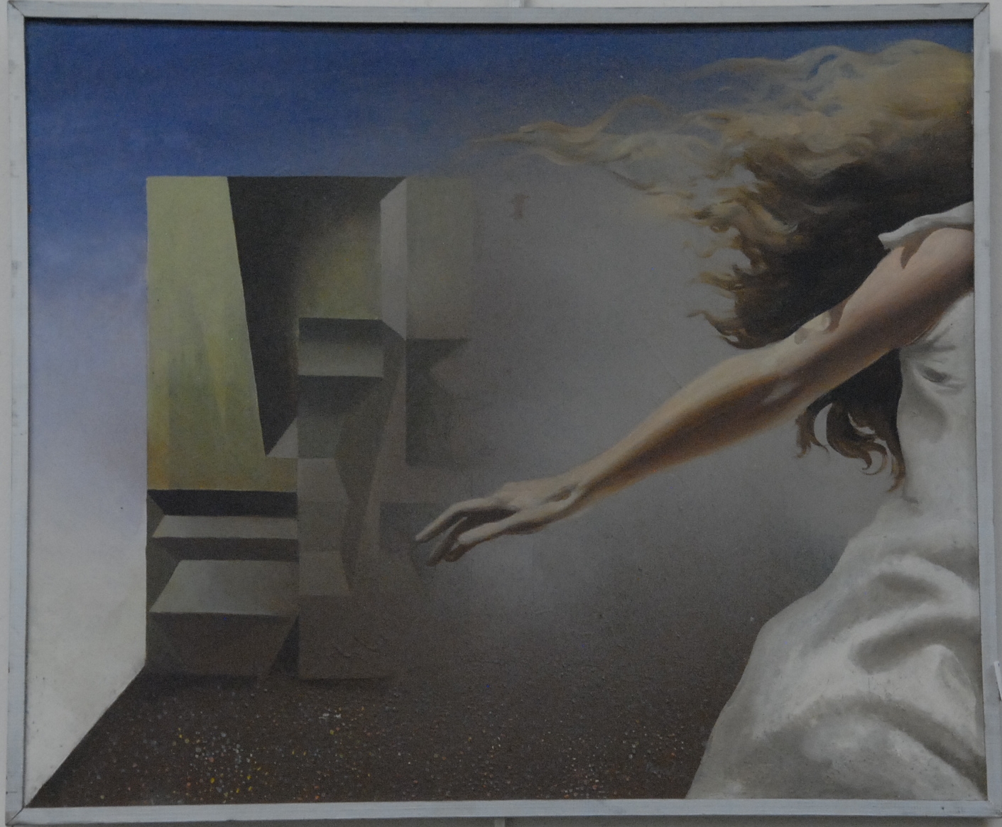 Jules Perahim 1914-2008 THE ESCAPE oil on canvas signed bottom center Perahim 19 1/2 x 23 1/2