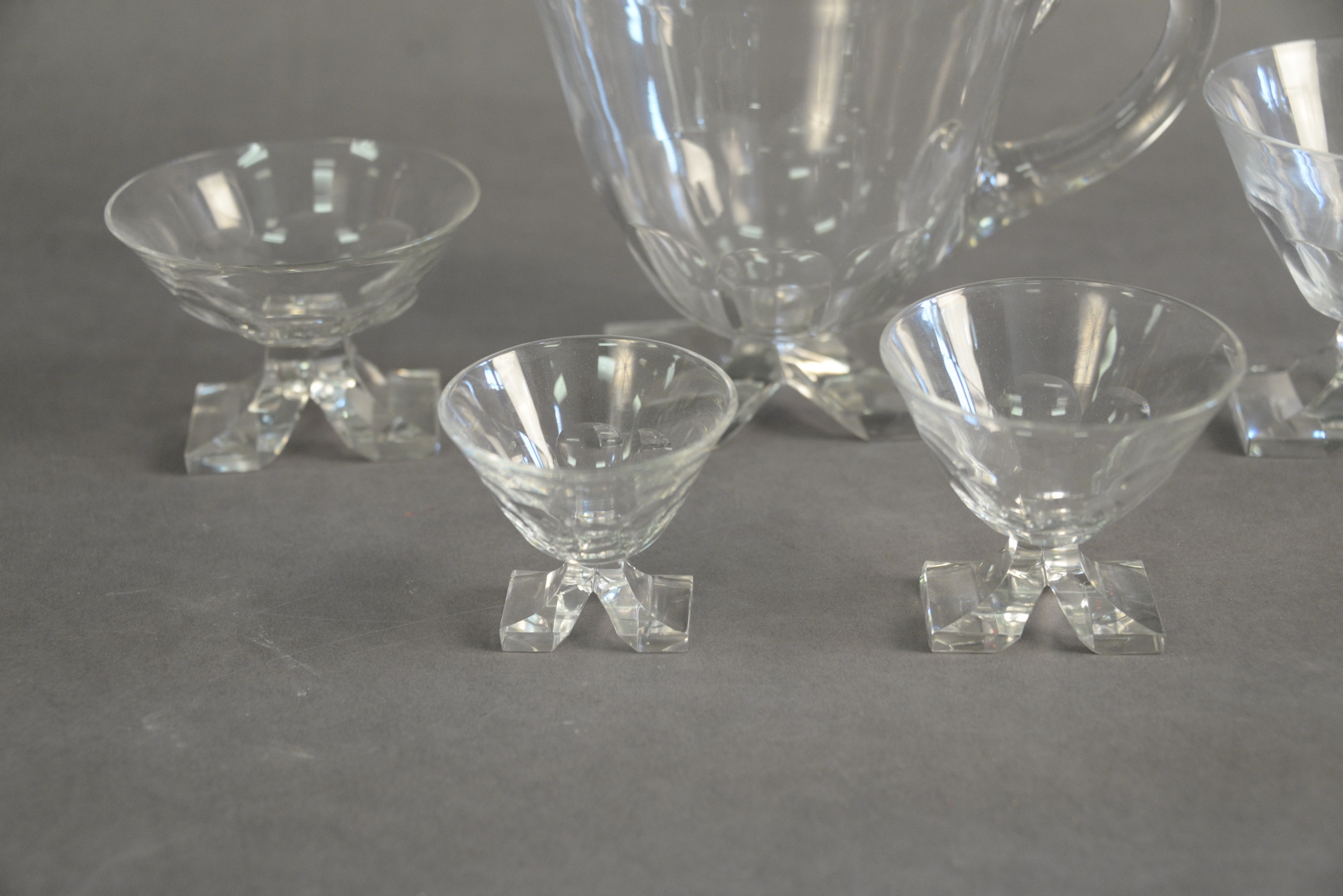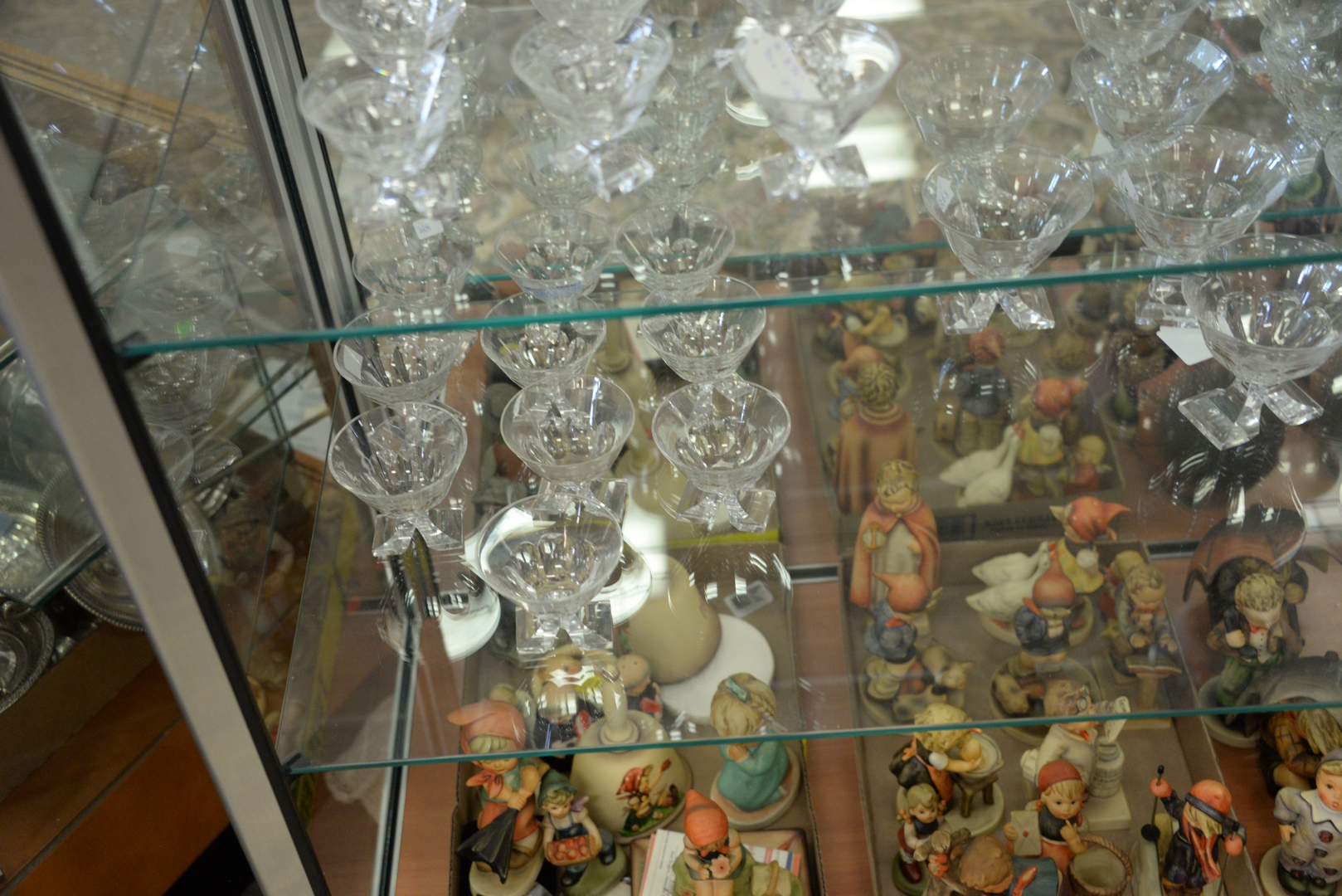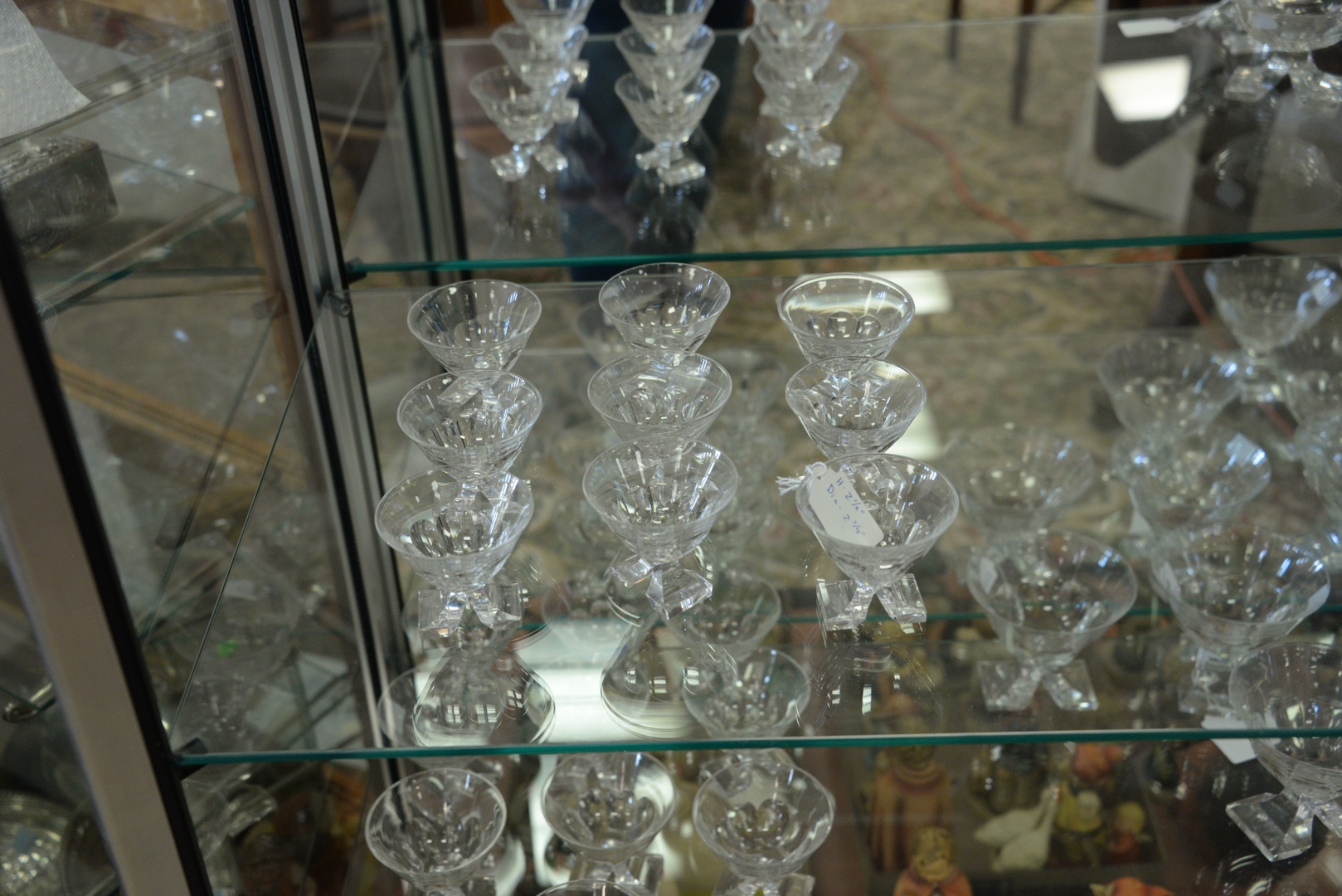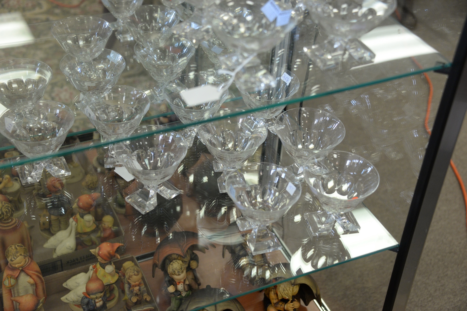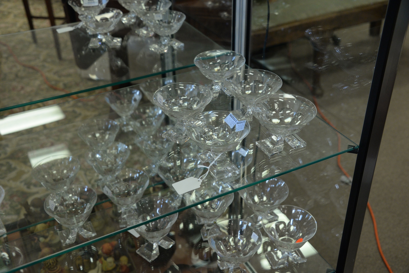Set of Thirty-eight Crystal Pieces, with split foot base, four sizes, tallest height 6 inches.