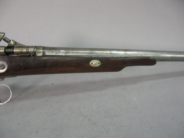 Pinfire, 12 gauge shotgun, marked ELG having rolling breech mechanism, marked cast steel on forearm. Serial# 6356, Code #43.