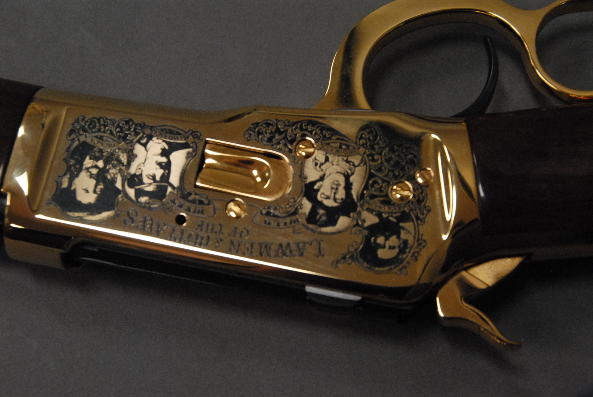 Winchester model 92, 45 cal. #33 of 300, gold plated America remembers Lawmen and Outlaws of the Wild West