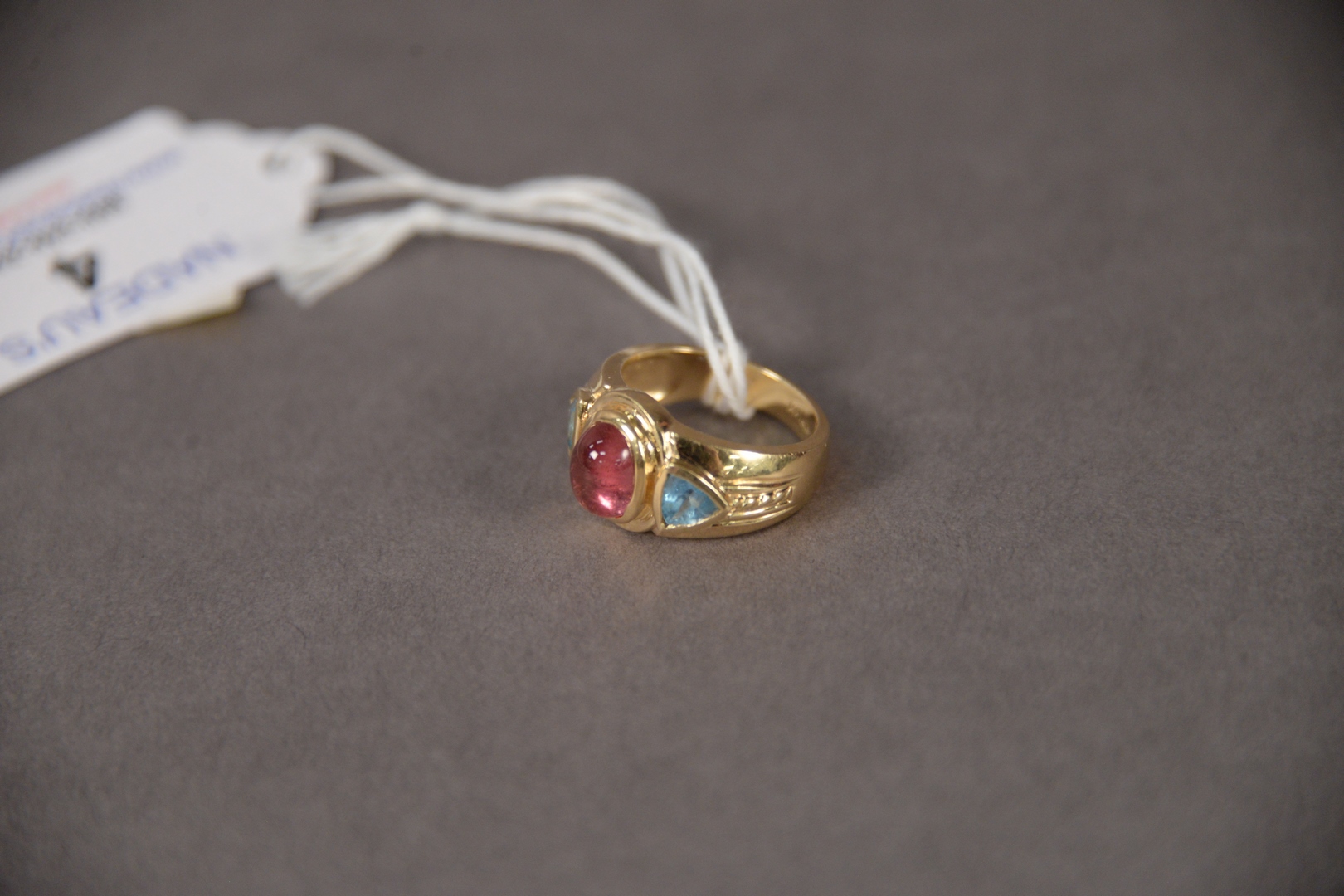 Lot 4: 14 Karat Gold Ring, having cabochon cut tourmaline, size 6 1/2, 8.1 grams.