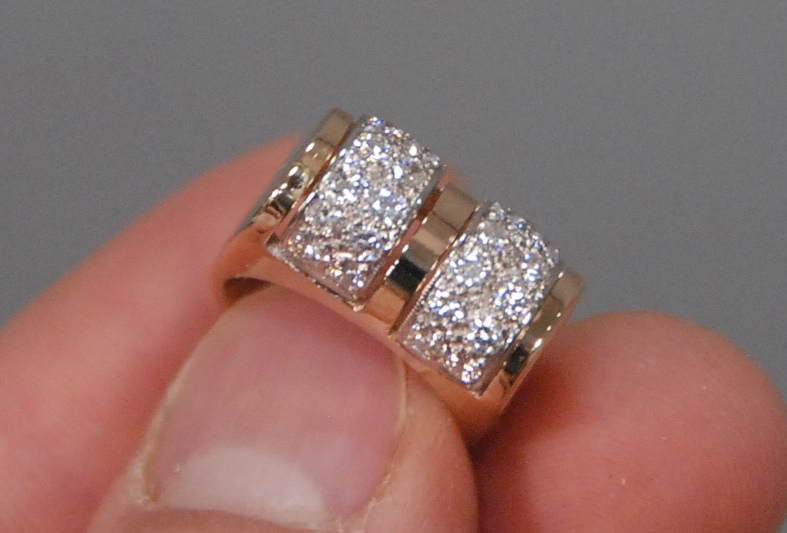 14K gold ring set with 24 small diamonds, 7.5 grams.