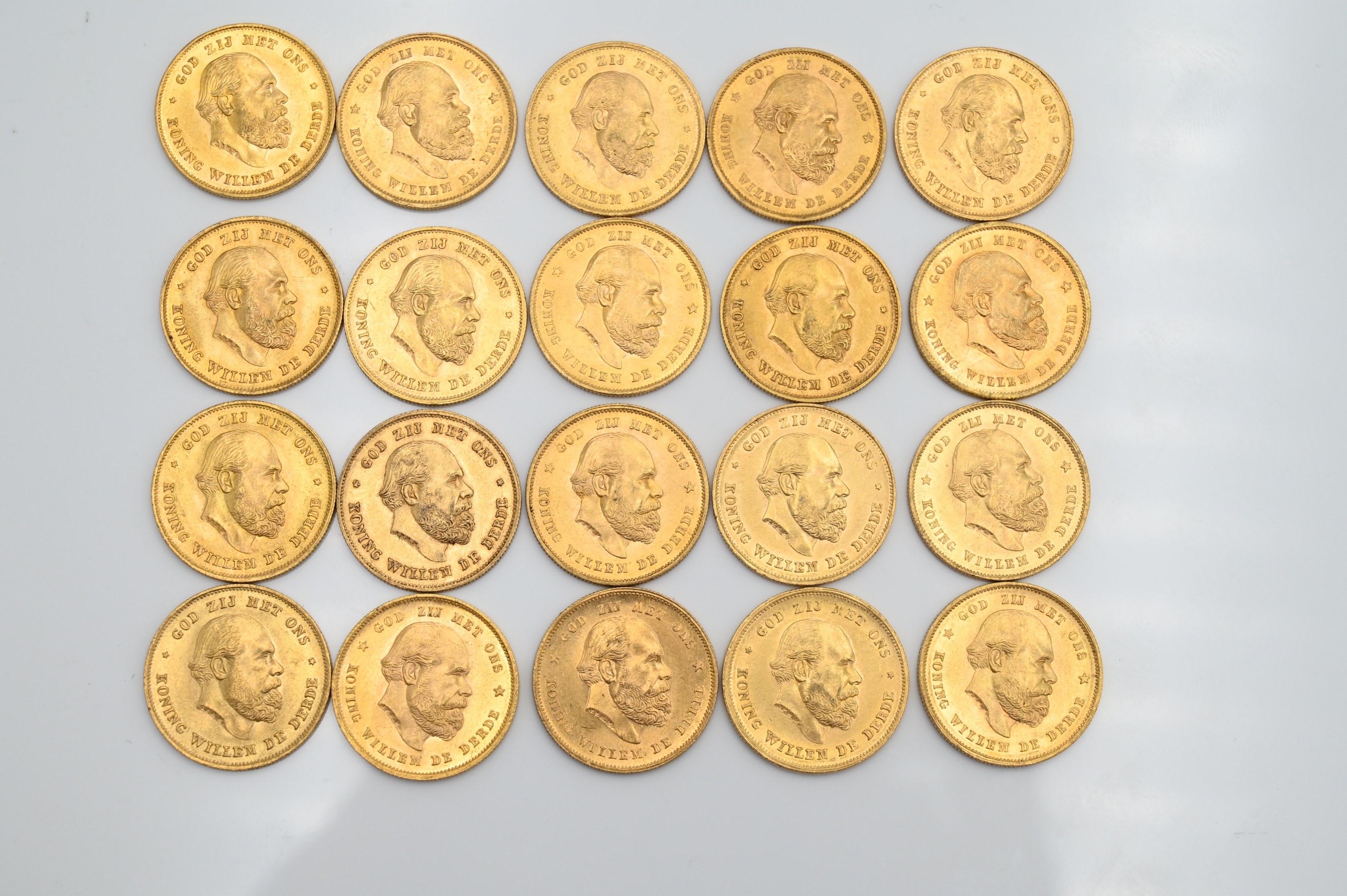 20 Dutch 10 Guilder Uncirculated Gold Coins, 134.3 gr.