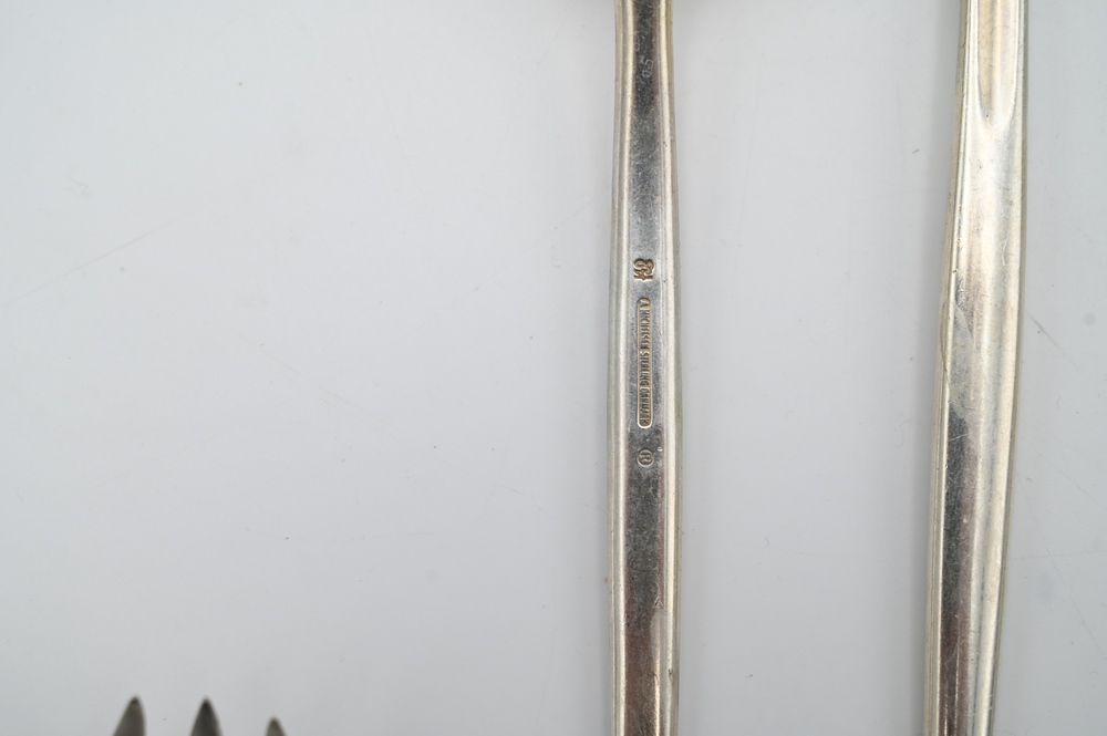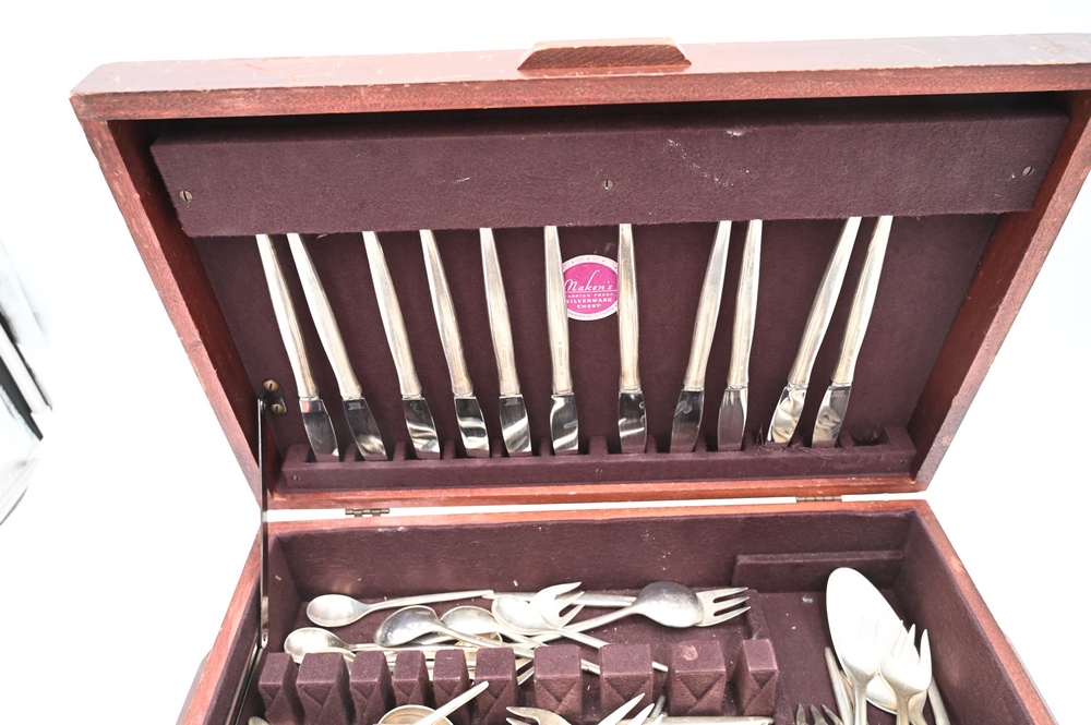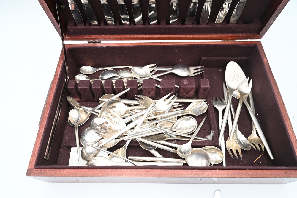 Lot 4: 76 Piece Anton Michelsen Sterling Silver Flatware Set, in Tulip pattern, to include 12 dinner forks, 12 salad forks, 12 soup spoons, 12 tablespoons, 12 teaspoons, 2 butter knives, 1 ladle, 1 server, 12 weighted dinner knives, 95.8 weighable t.oz. plus 12 handles.