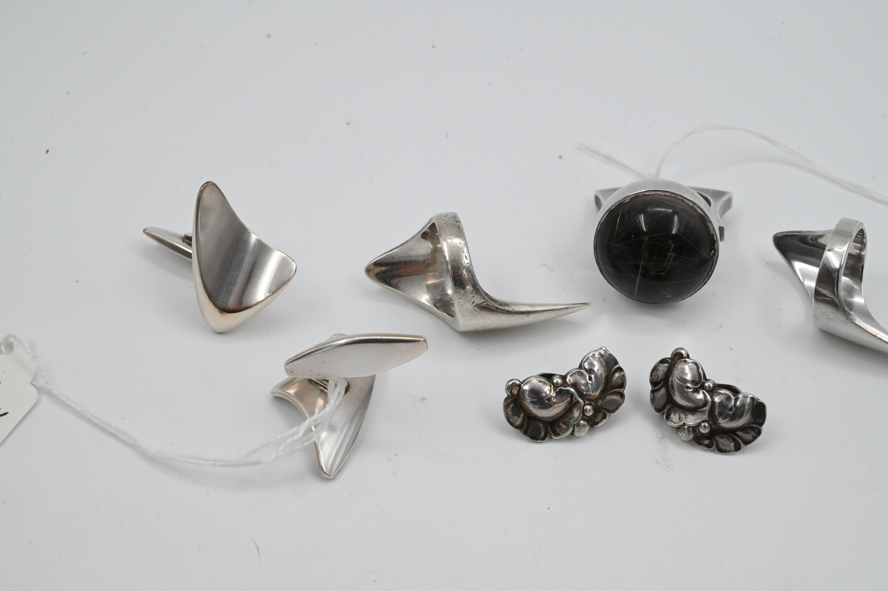to include pair of cufflinks in original box, one ring having large stone, a pair of earrings, and two other rings