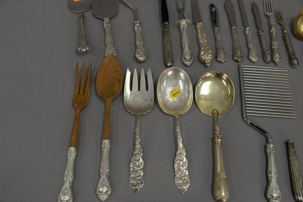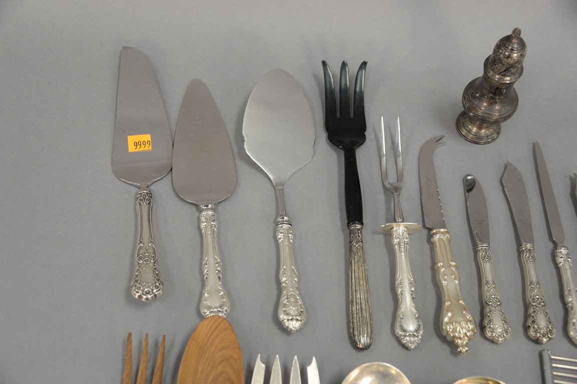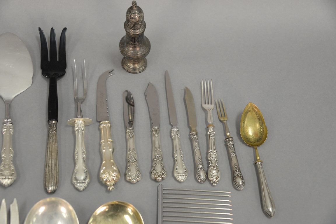 Four piece silver lot Tiffany castor and three serving pieces.7.14 t oz and 18 handles