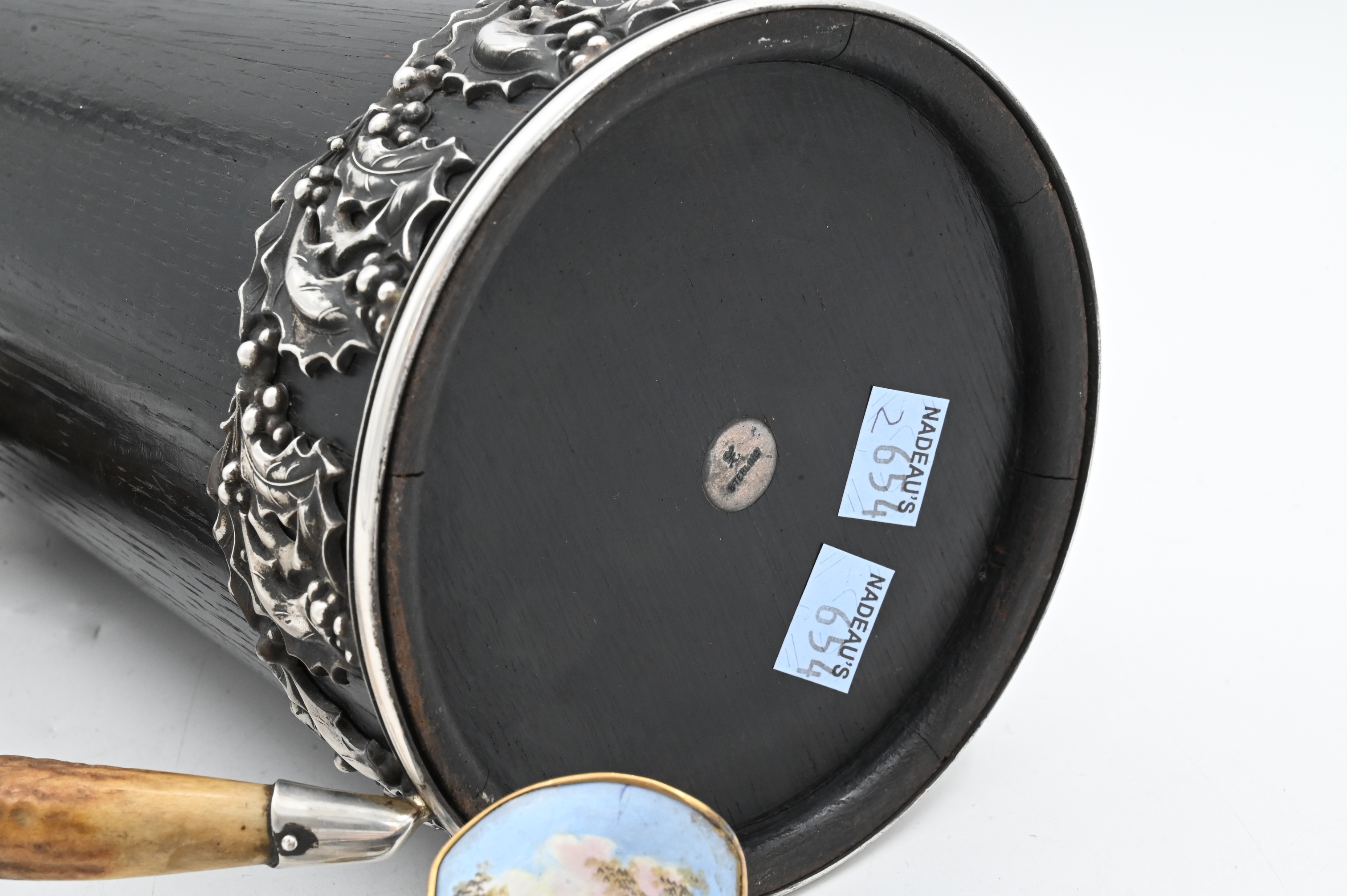 Lot 4: Oak Tankard having Sterling Silver Oak Leaf Trim and Antler Handle