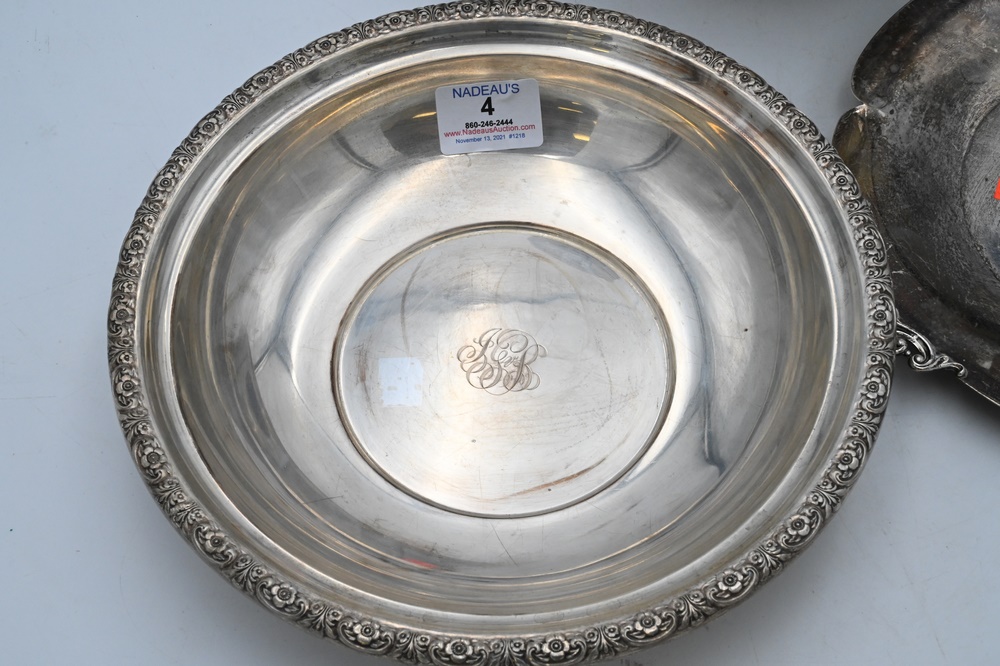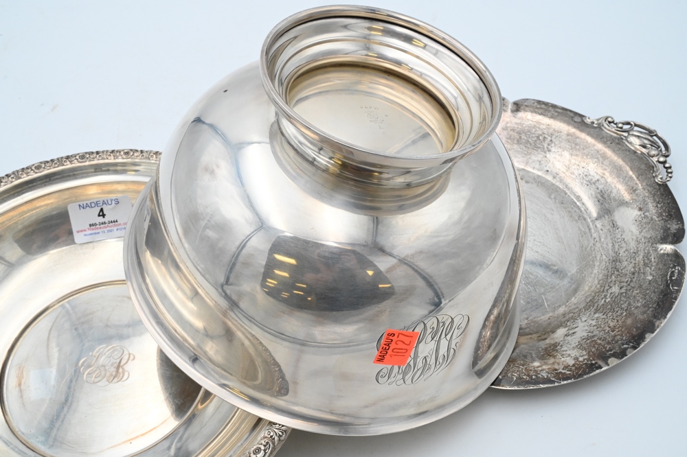 Lot 4: Three Sterling Silver Pieces, to include a large Paul Revere bowl, a Whiting Danish style tray, along with an International Sterling prelude bowl, 39.9 t.oz.