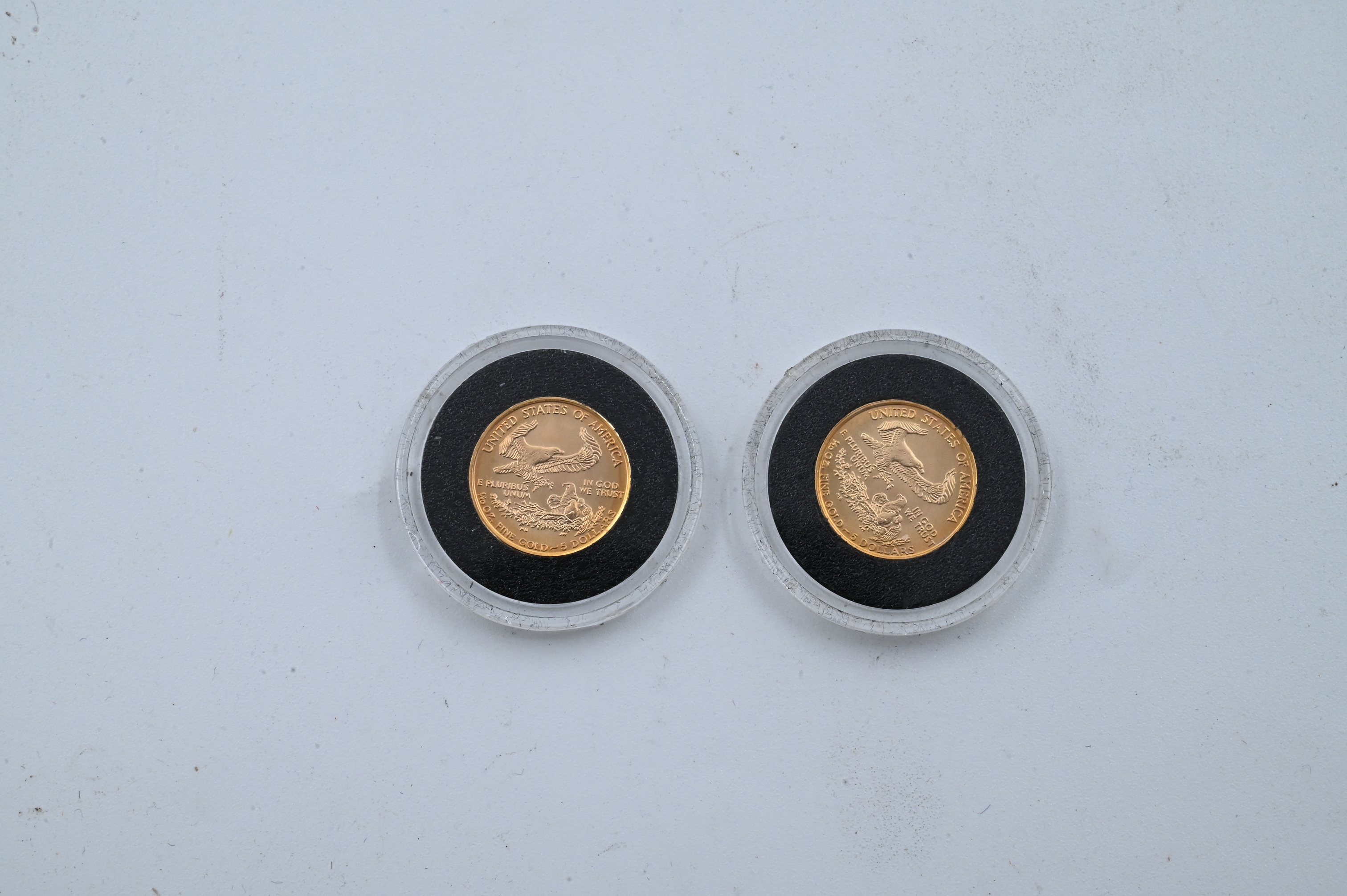 Two American Eagles 1999 1/10 T.O.Z. Gold .999 Fine