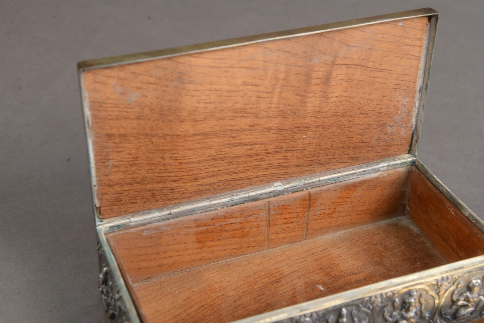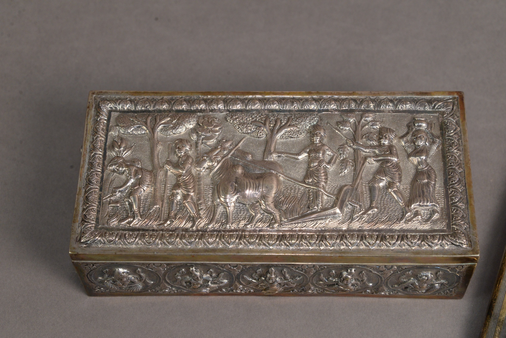 Lot 4: Two Silver Boxes to include a sterling cigarette case marked sterling and 18K made in France, along with a middle eastern silver embossed box, 5.5 t.oz.