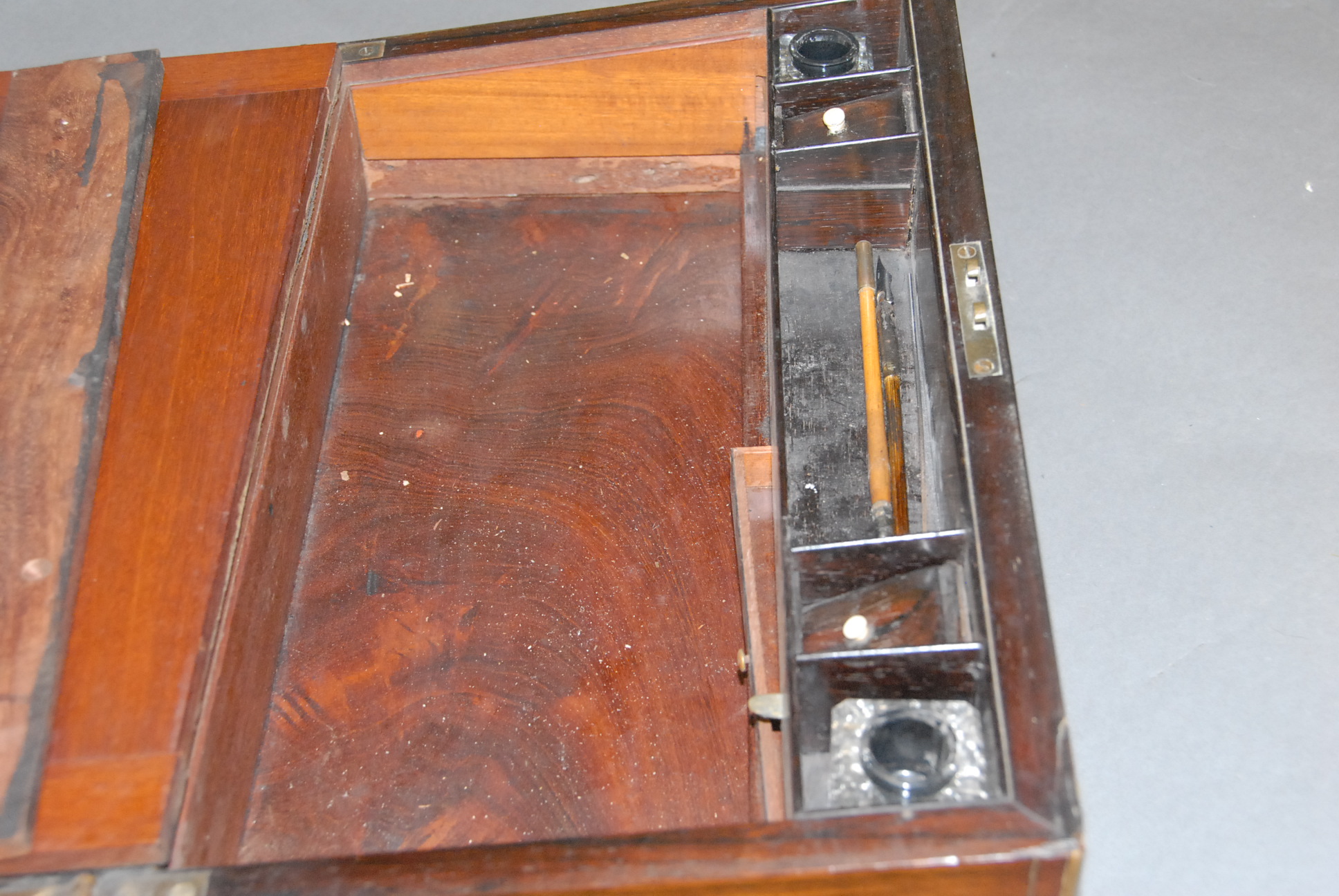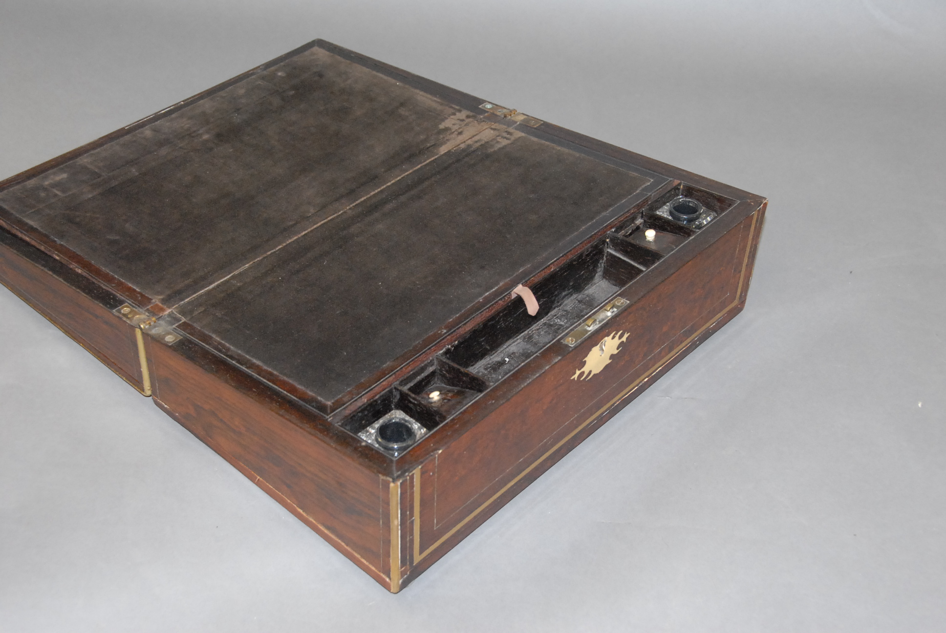 Brass and Mother of Pearl inlaid lap desk.