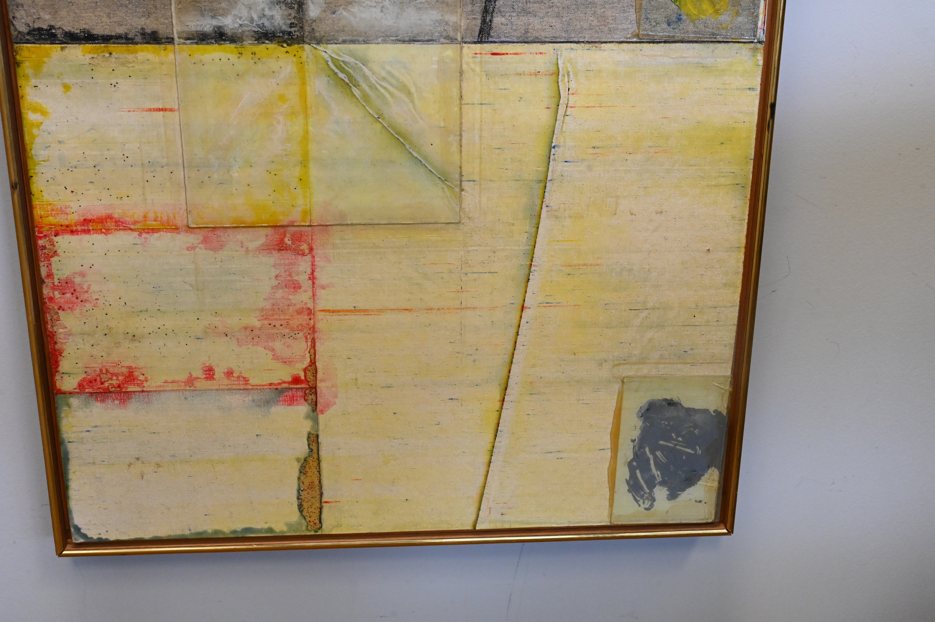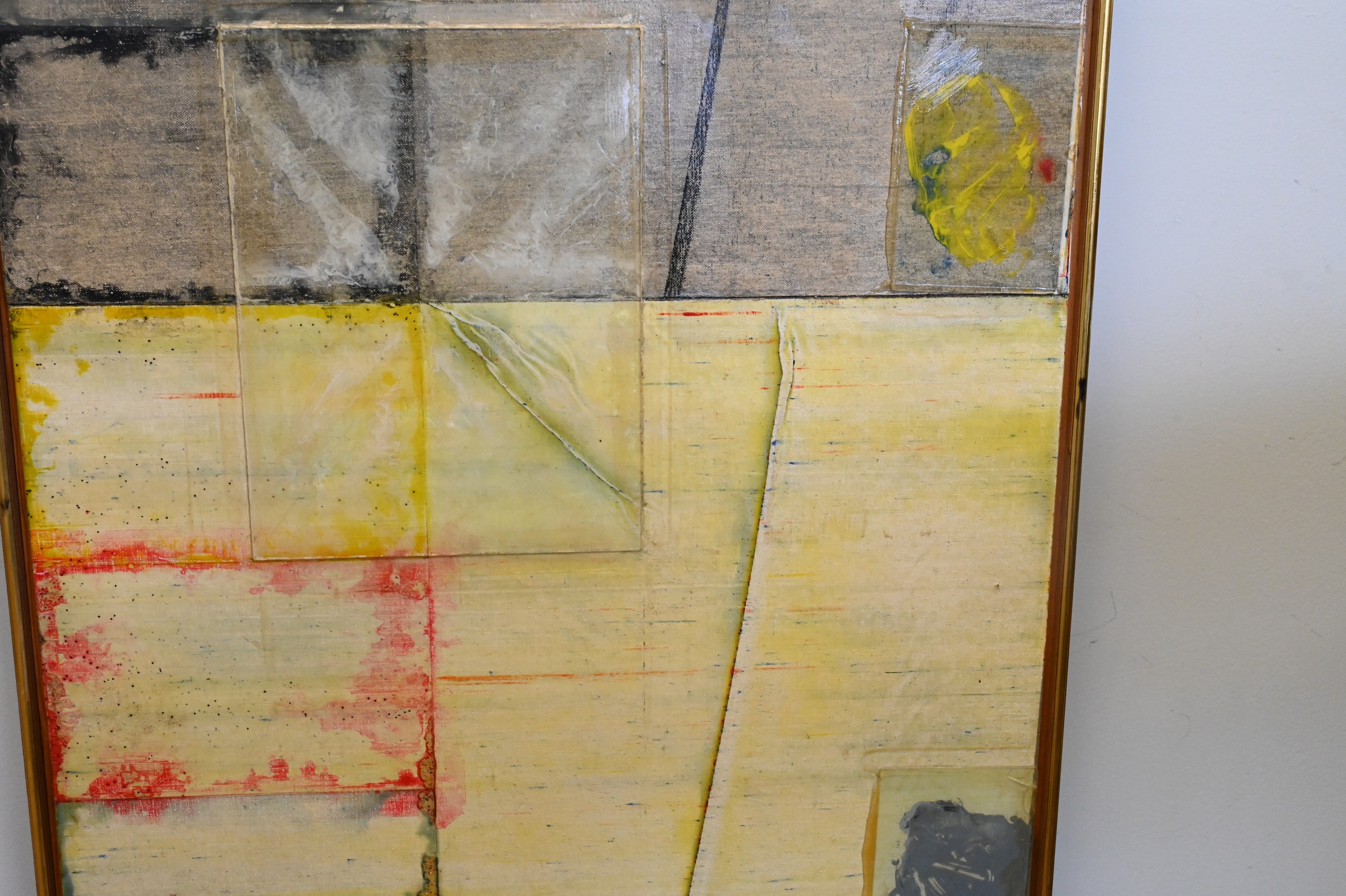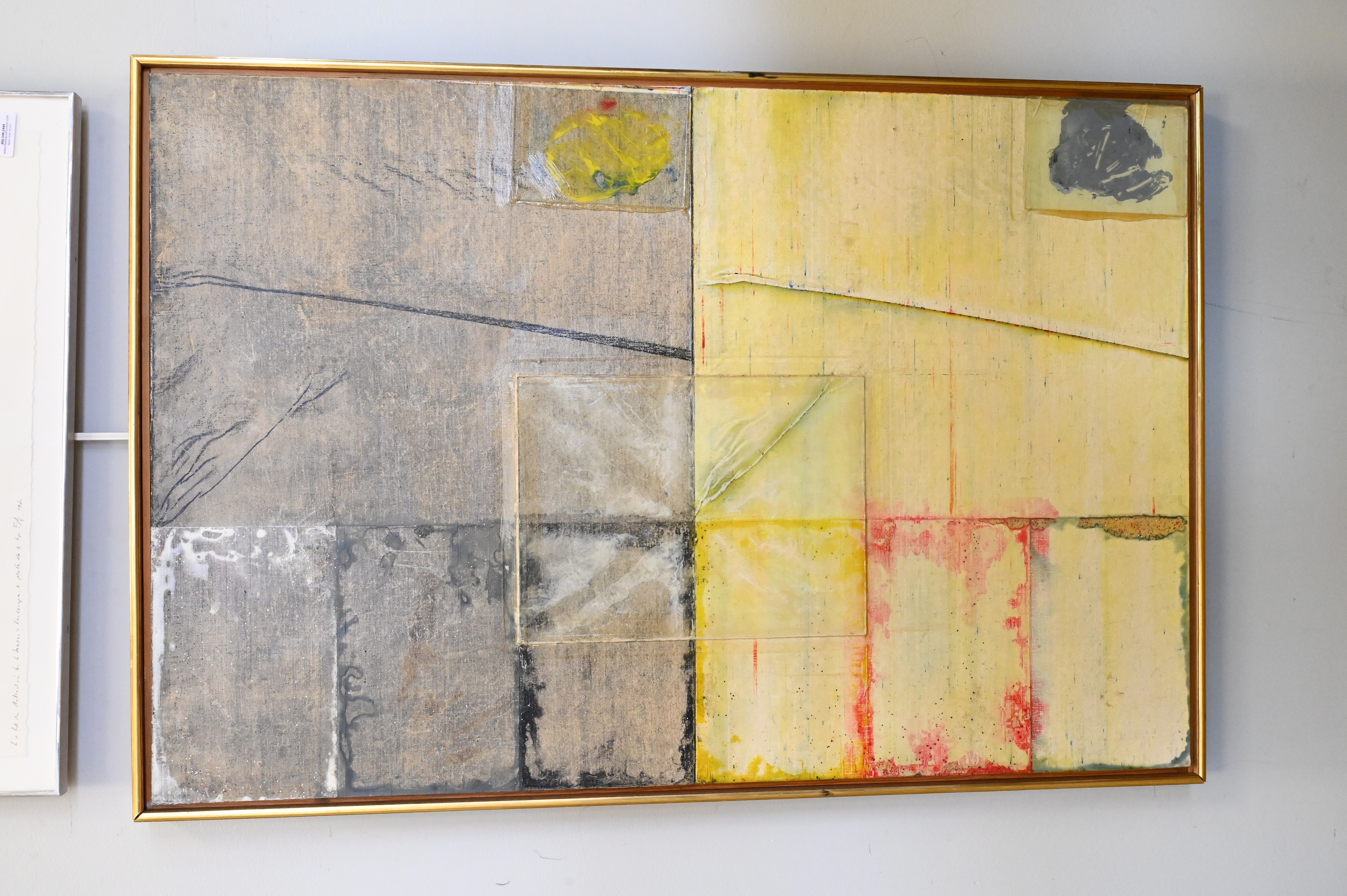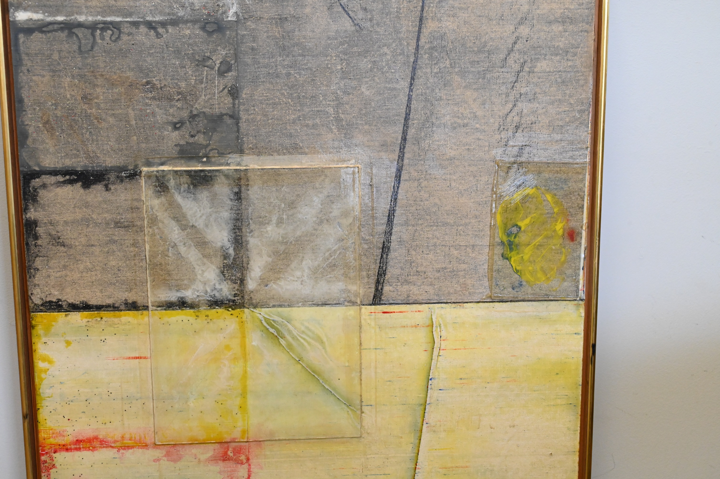 Mixed media, acrylic, crayon, glass on board