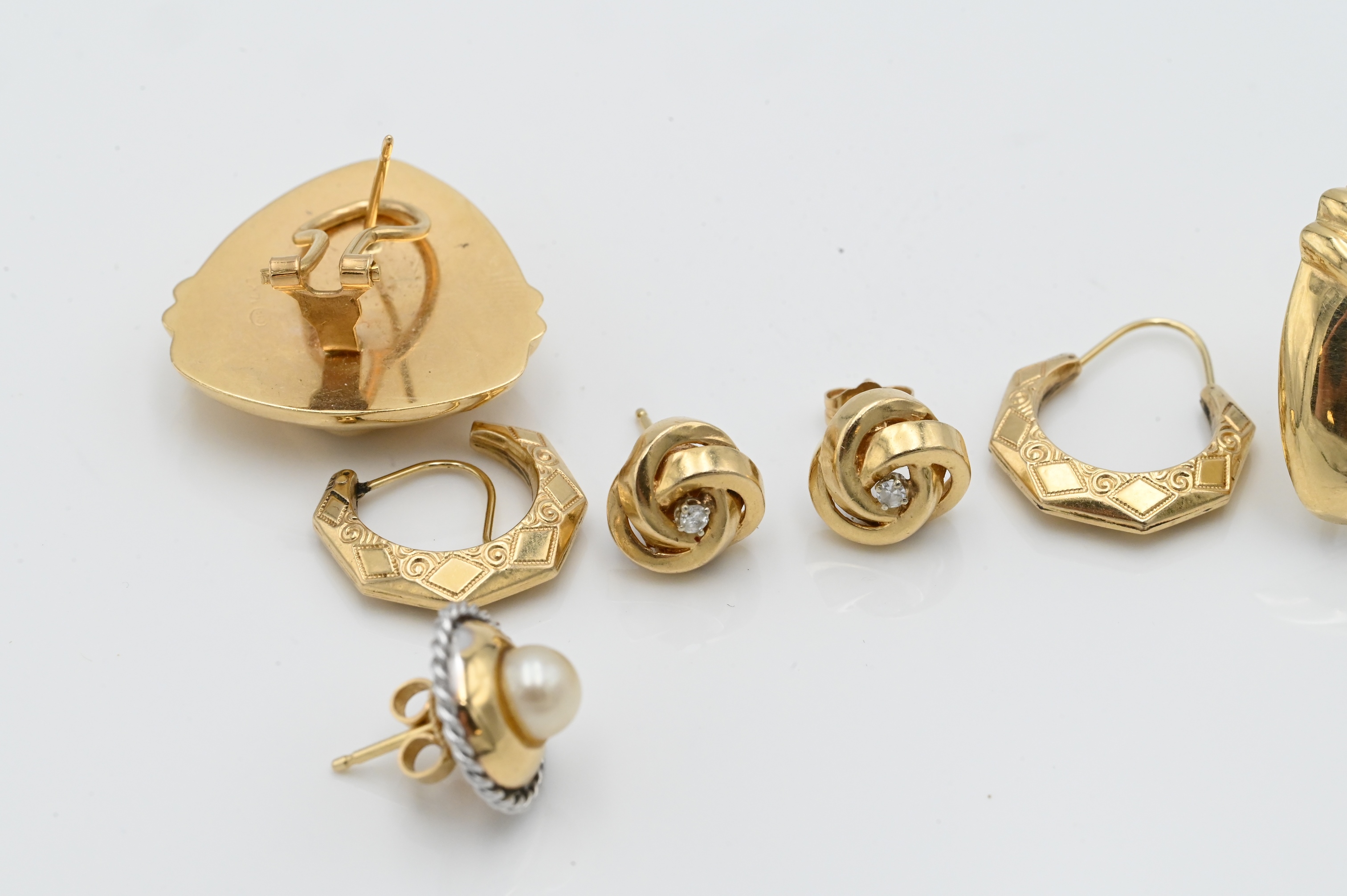 Lot 40: Four Pairs of 14K Yellow Gold Pierced Earrings